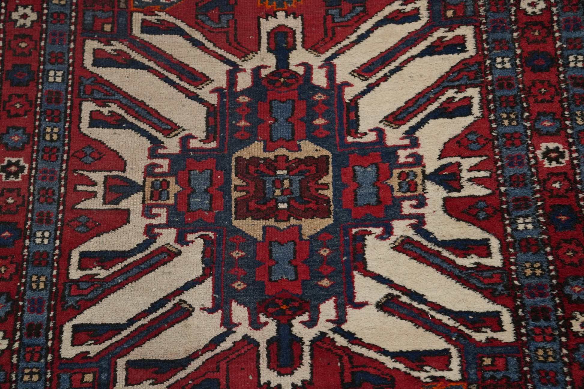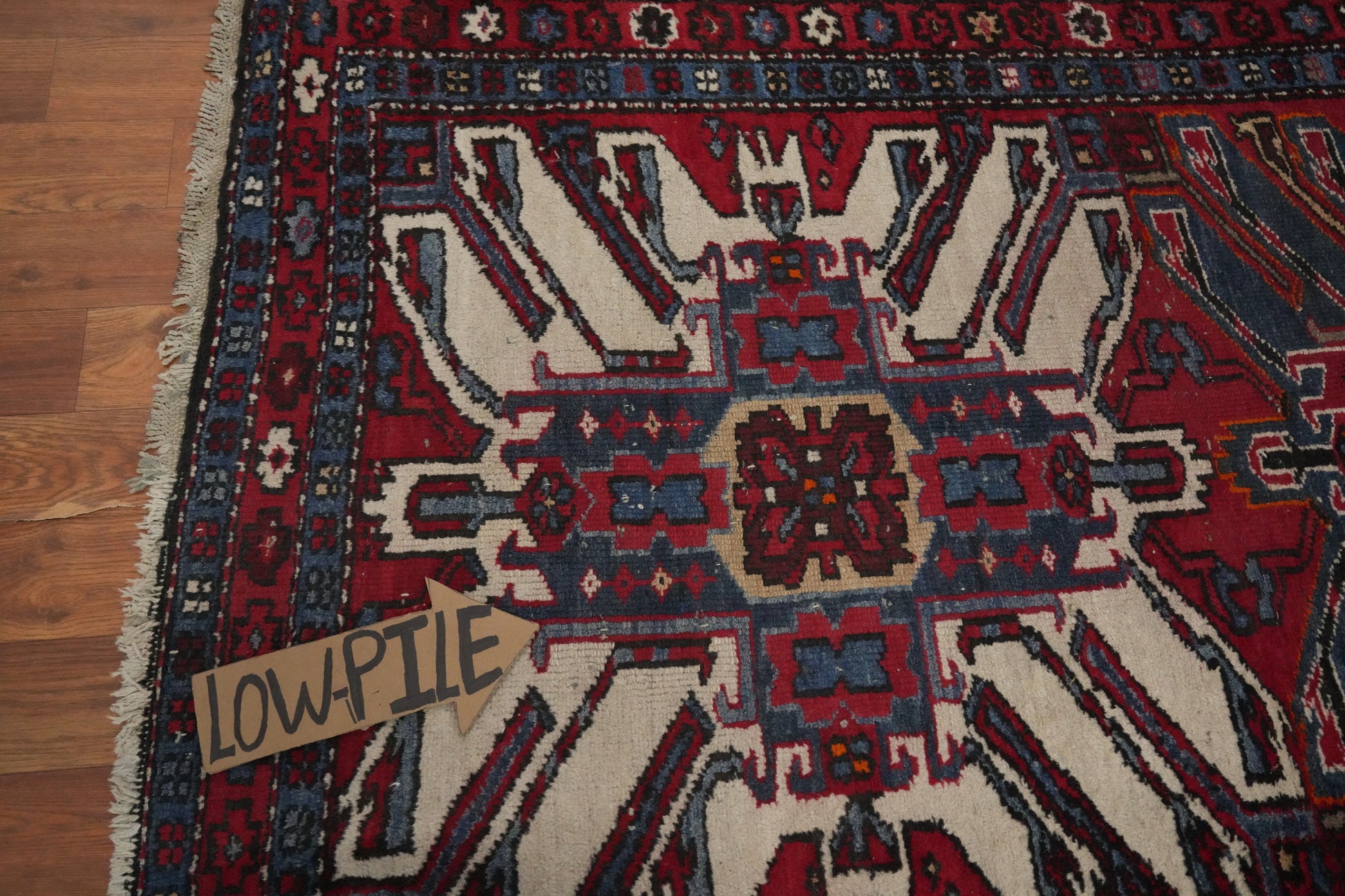 A Beautiful Genuine Persia ( Persia ) Heriz (Bakhshayesh) rug is Hand Knotted by skillful weavers in Persia ( Persia ) with 100% Wool Material. This rug is in Very Good ( Low Pile ) condition. dimensions are 10' 8'' X 3' 3'' in foot and 325 X 99 in centimeter. the primary color is Red.