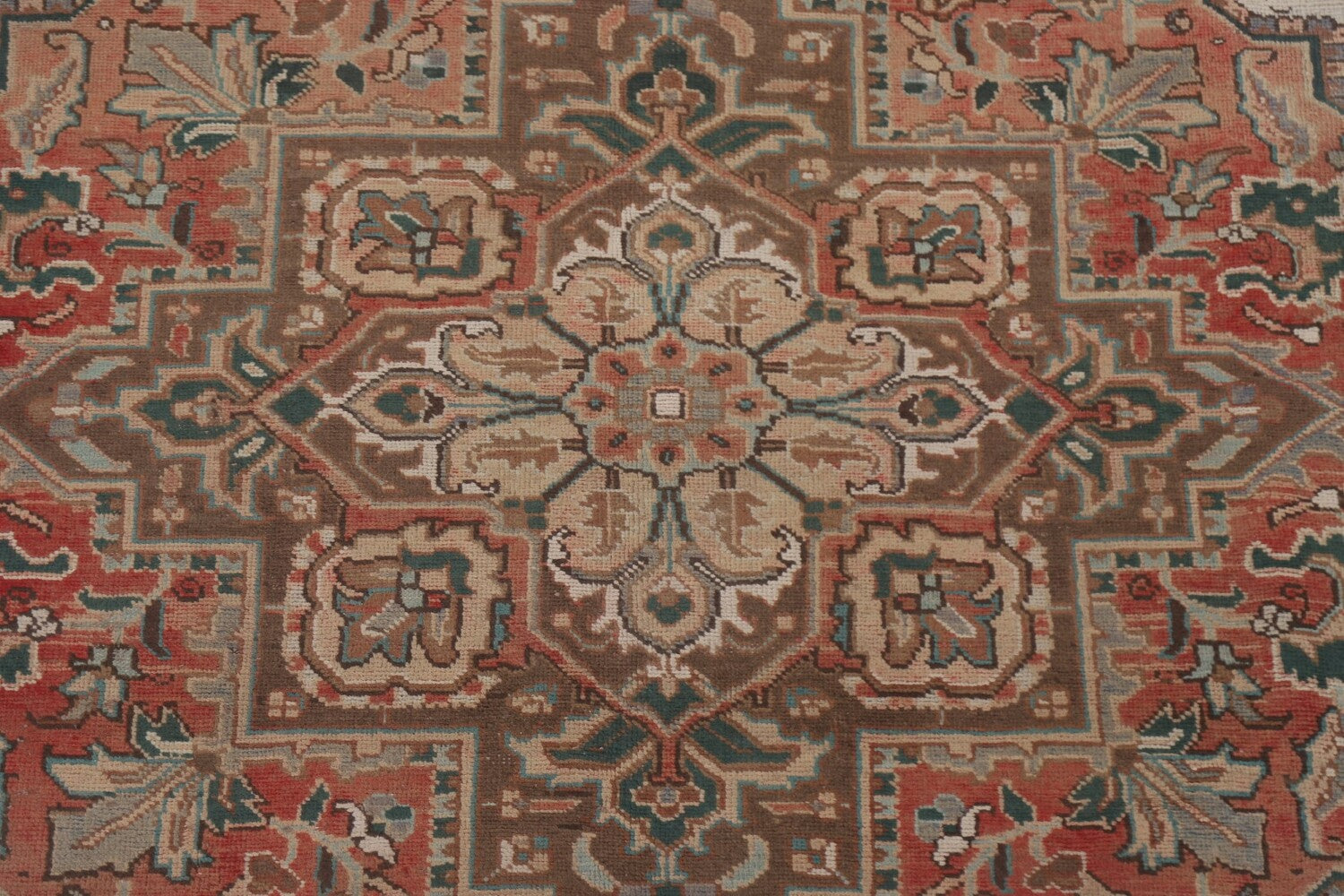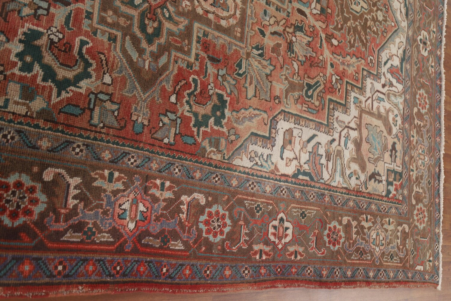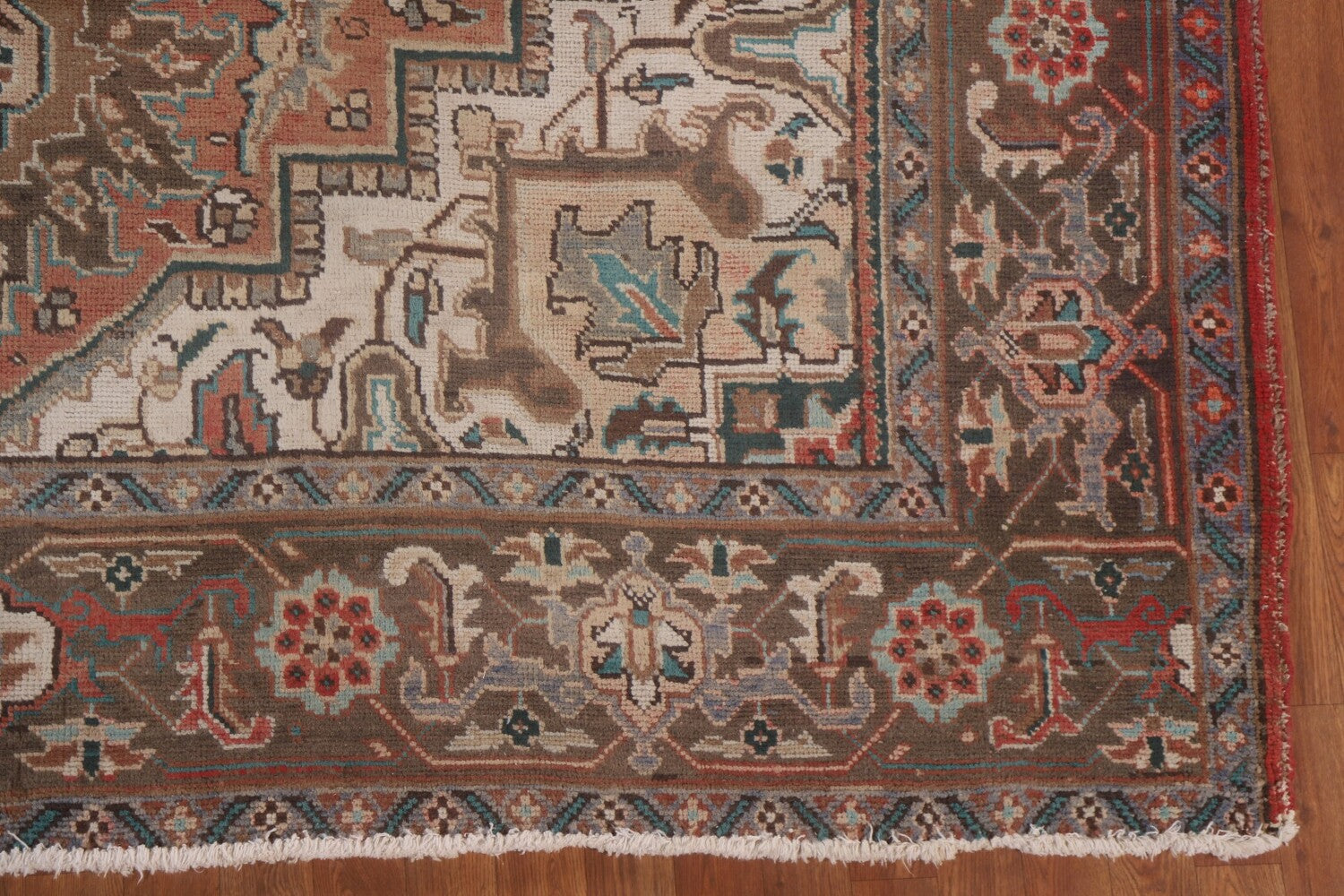 A Beautiful Genuine Persia ( Persia ) Heriz rug is Hand Knotted by skillful weavers in Persia ( Persia ) with 100% Wool Material. This rug is in Very Good ( Abrash- Low Pile ) condition. dimensions are 11' 5'' X 8' 5'' in foot and 348 X 257 in centimeter. the primary color is Red.