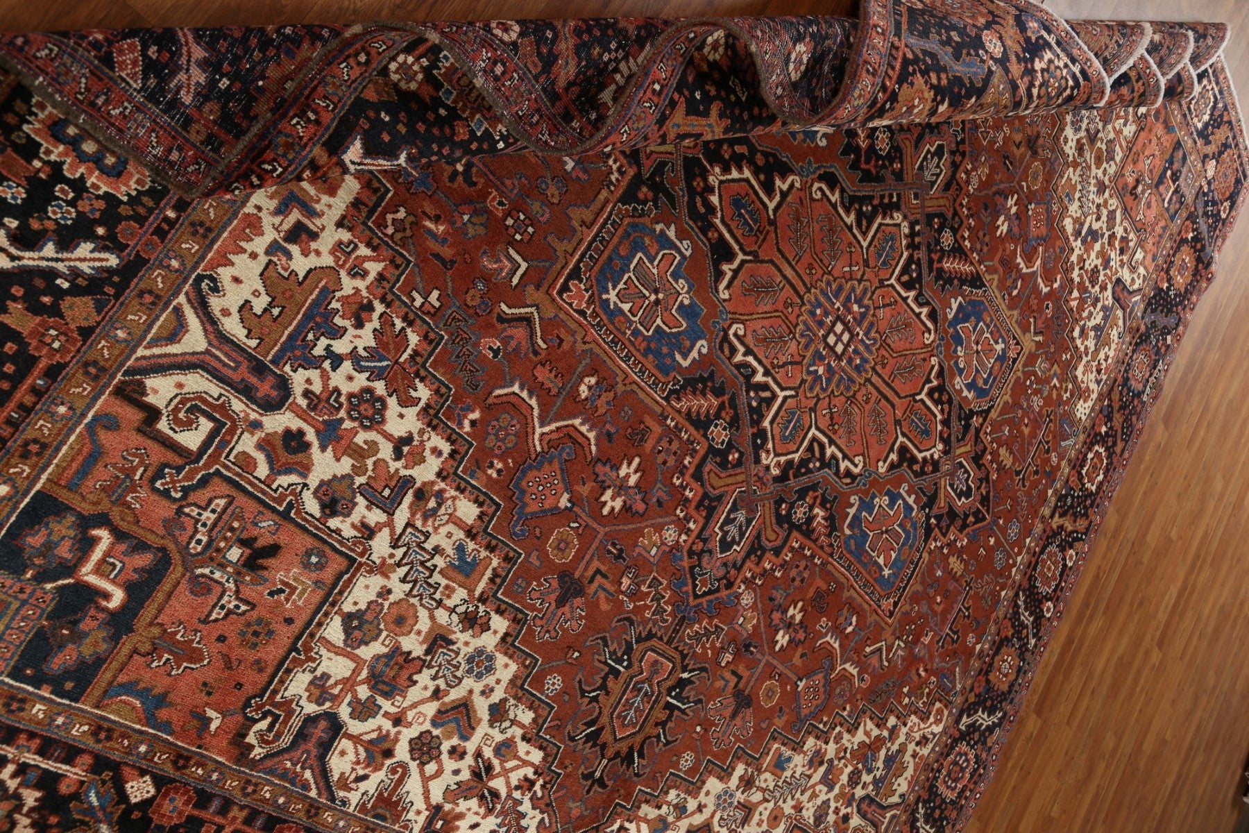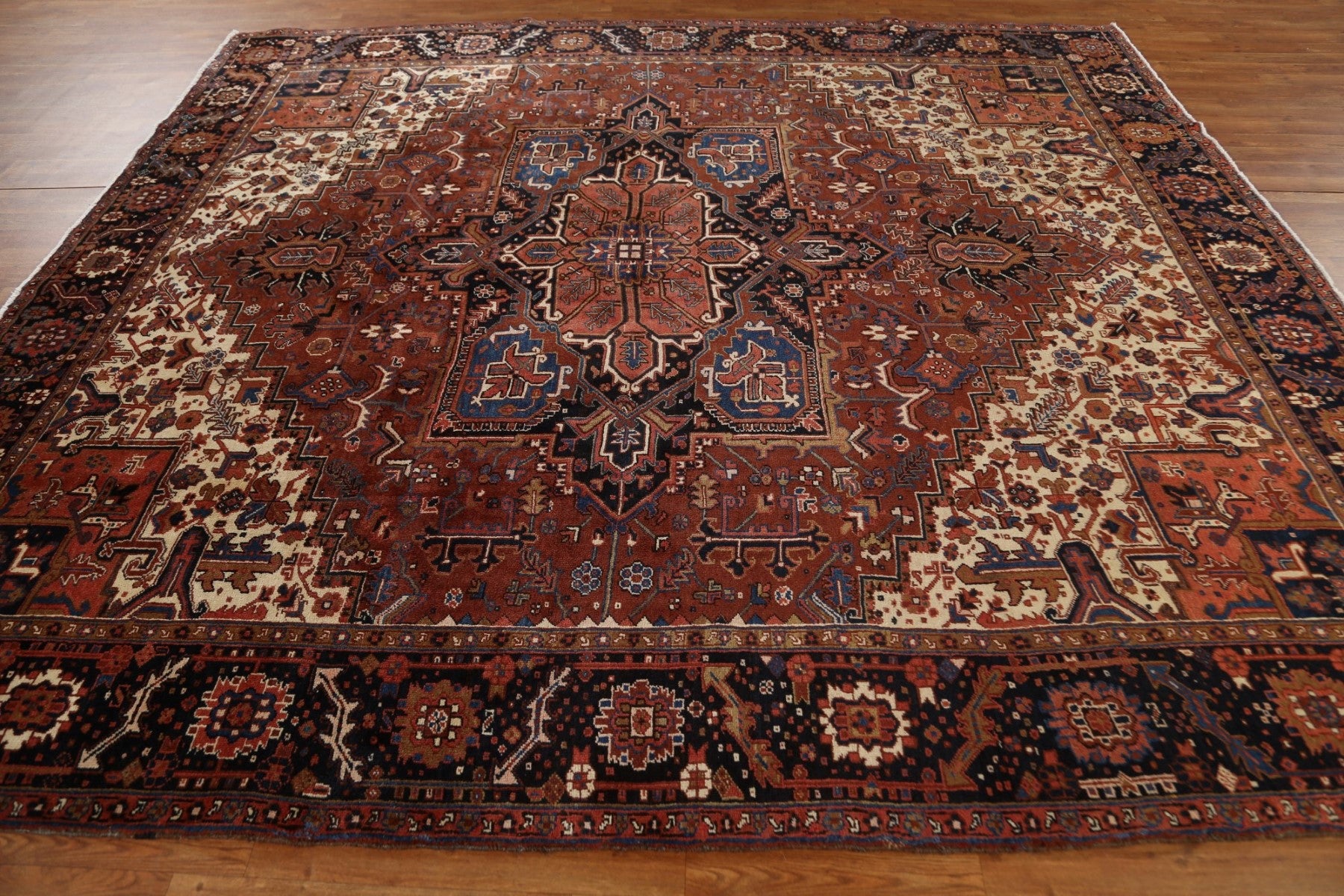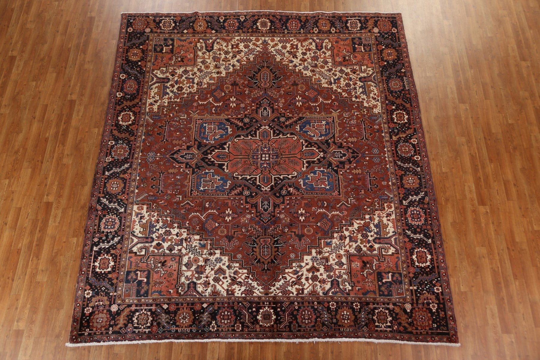 A Beautiful Genuine Persia ( Persia ) Heriz rug is Hand Knotted by skillful weavers in Persia ( Persia ) with 100% Wool Material. This rug is in Excellent condition. dimensions are 10' 4'' X 9' 4'' in foot and 315 X 284 in centimeter. the primary color is Red.