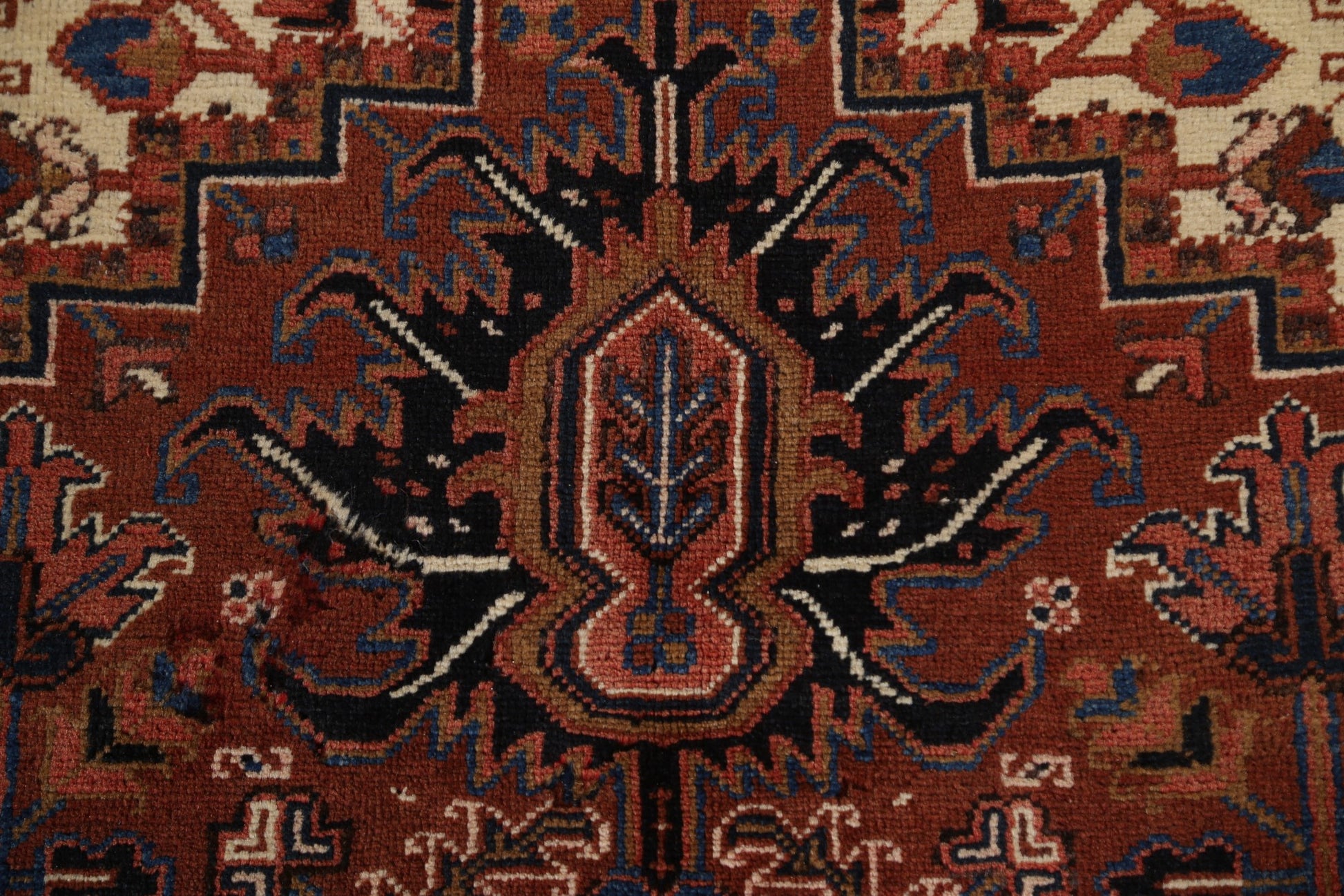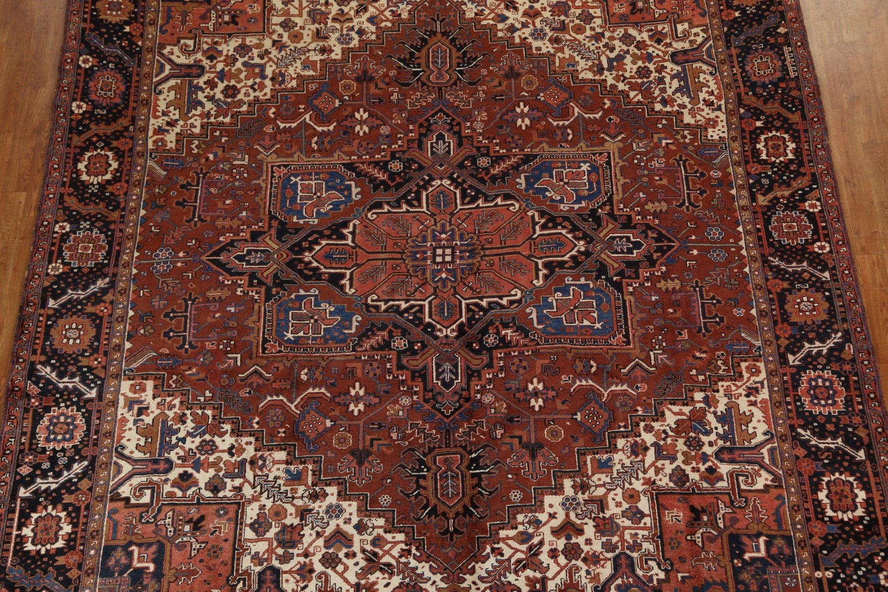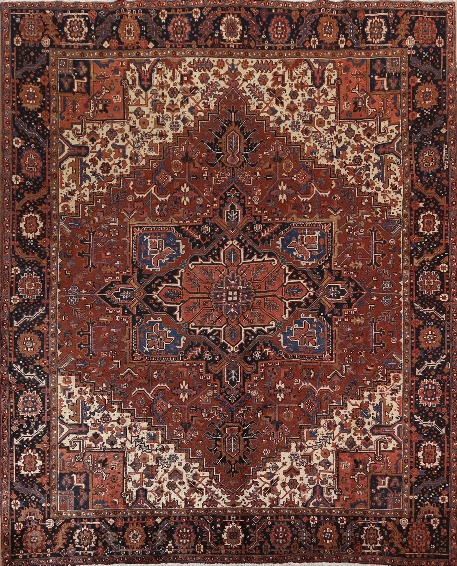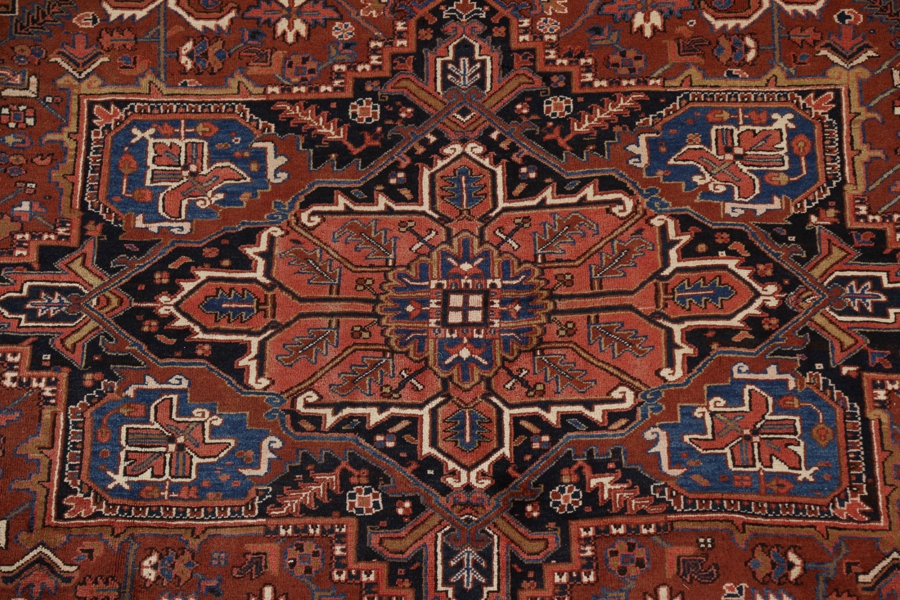 A Beautiful Genuine Persia ( Persia ) Heriz rug is Hand Knotted by skillful weavers in Persia ( Persia ) with 100% Wool Material. This rug is in Excellent condition. dimensions are 10' 4'' X 9' 4'' in foot and 315 X 284 in centimeter. the primary color is Red.