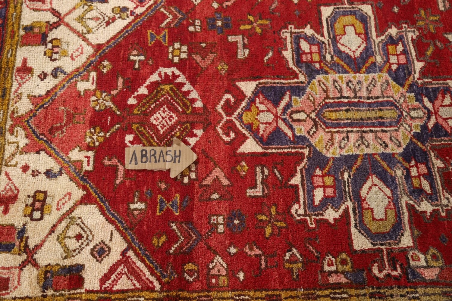 A Beautiful Genuine Persia ( Persia ) Heriz rug is Hand Knotted by skillful weavers in Persia ( Persia ) with 100% Wool Material. This rug is in Very Good (Abrash) condition. dimensions are 10' 8'' X 3' 6'' in foot and 325 X 107 in centimeter. the primary color is Red.