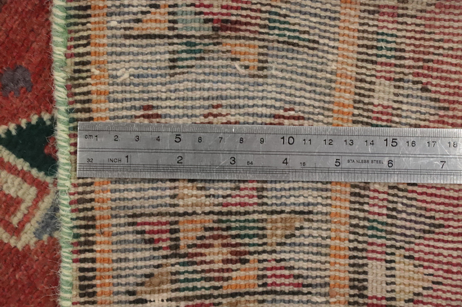 A Beautiful Genuine Persia ( Persia ) Heriz rug is Hand Knotted by skillful weavers in Persia ( Persia ) with 100% Wool Material. This rug is in Very Good (Evenly Low Pile) condition. dimensions are 12' 0'' X 3' 7'' in foot and 366 X 109 in centimeter. the primary color is Oranges & Rust.