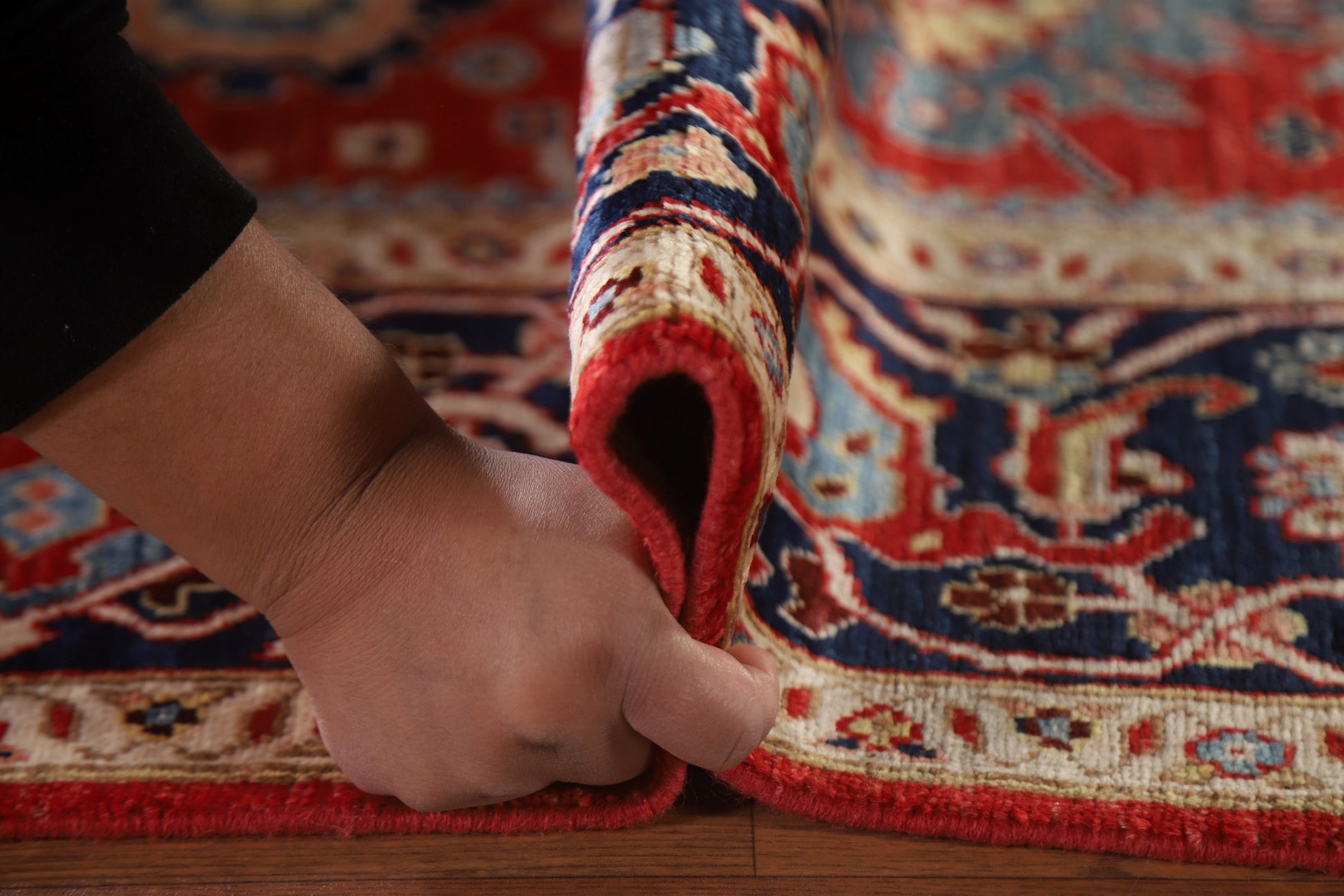 A Beautiful Genuine Pakistan Heriz (serapi) rug is Hand Knotted by skillful weavers in Pakistan with 100% Wool Material. This rug is in New, First Quality condition. dimensions are 9' 11'' X 8' 4'' in foot and 302 X 254 in centimeter. the primary color is Red.