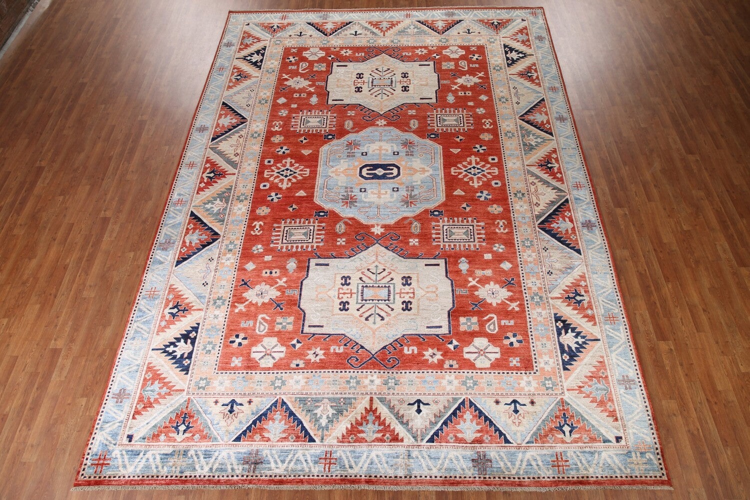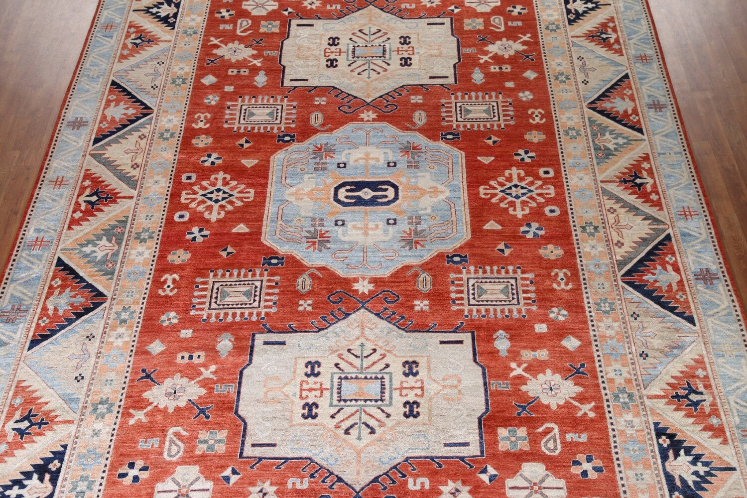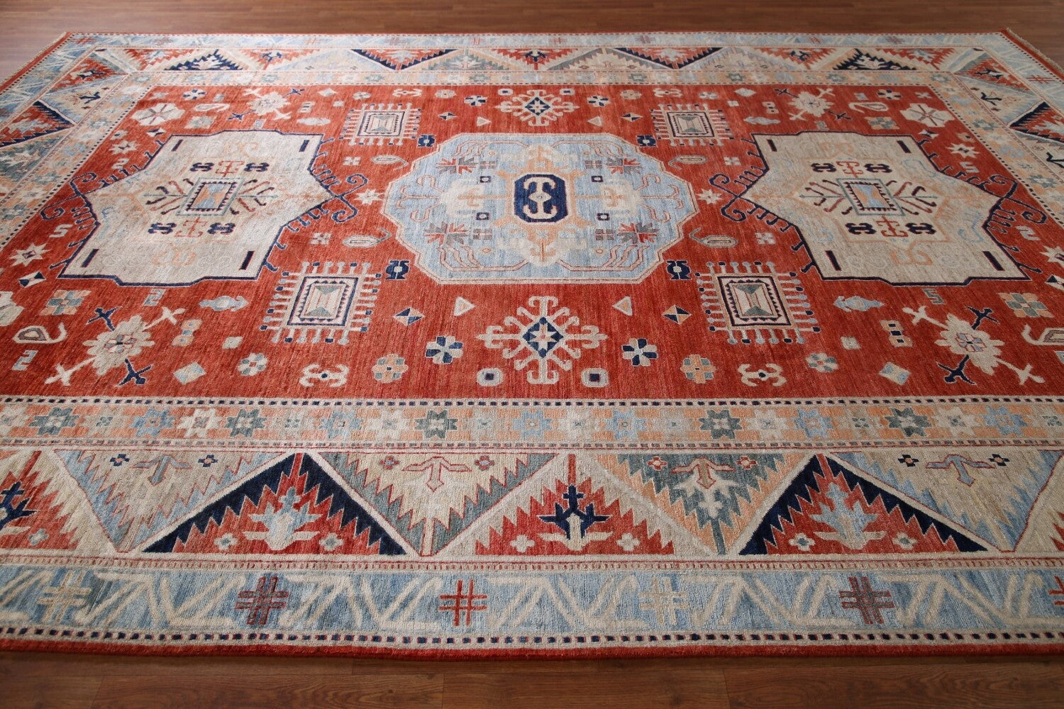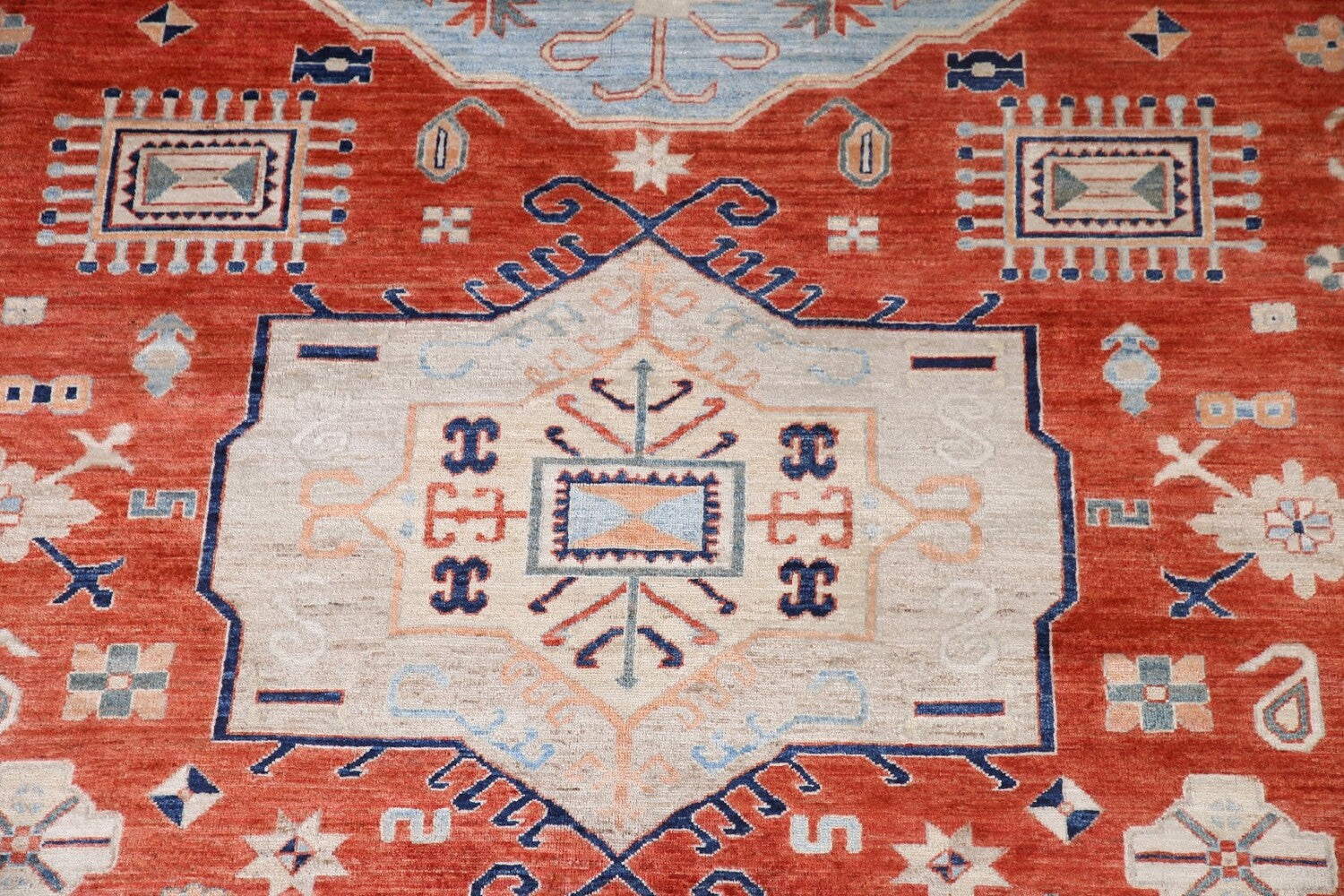 A Beautiful Genuine Pakistan Heriz (serapi) rug is Hand Knotted by skillful weavers in Pakistan with 100% Wool Material. This rug is in New, First Quality condition. dimensions are 14' 0'' X 9' 11'' in foot and 427 X 302 in centimeter. the primary color is Red.