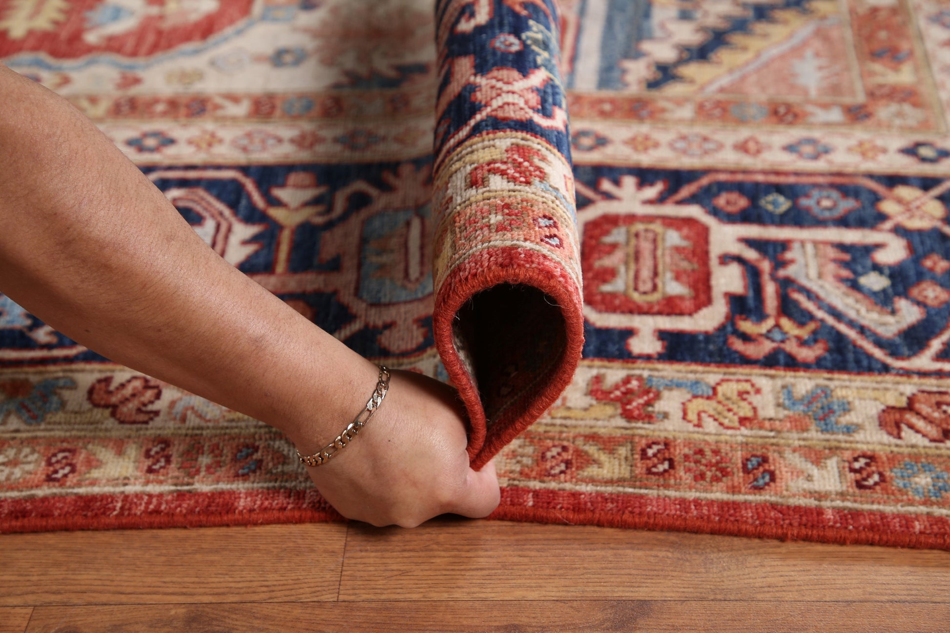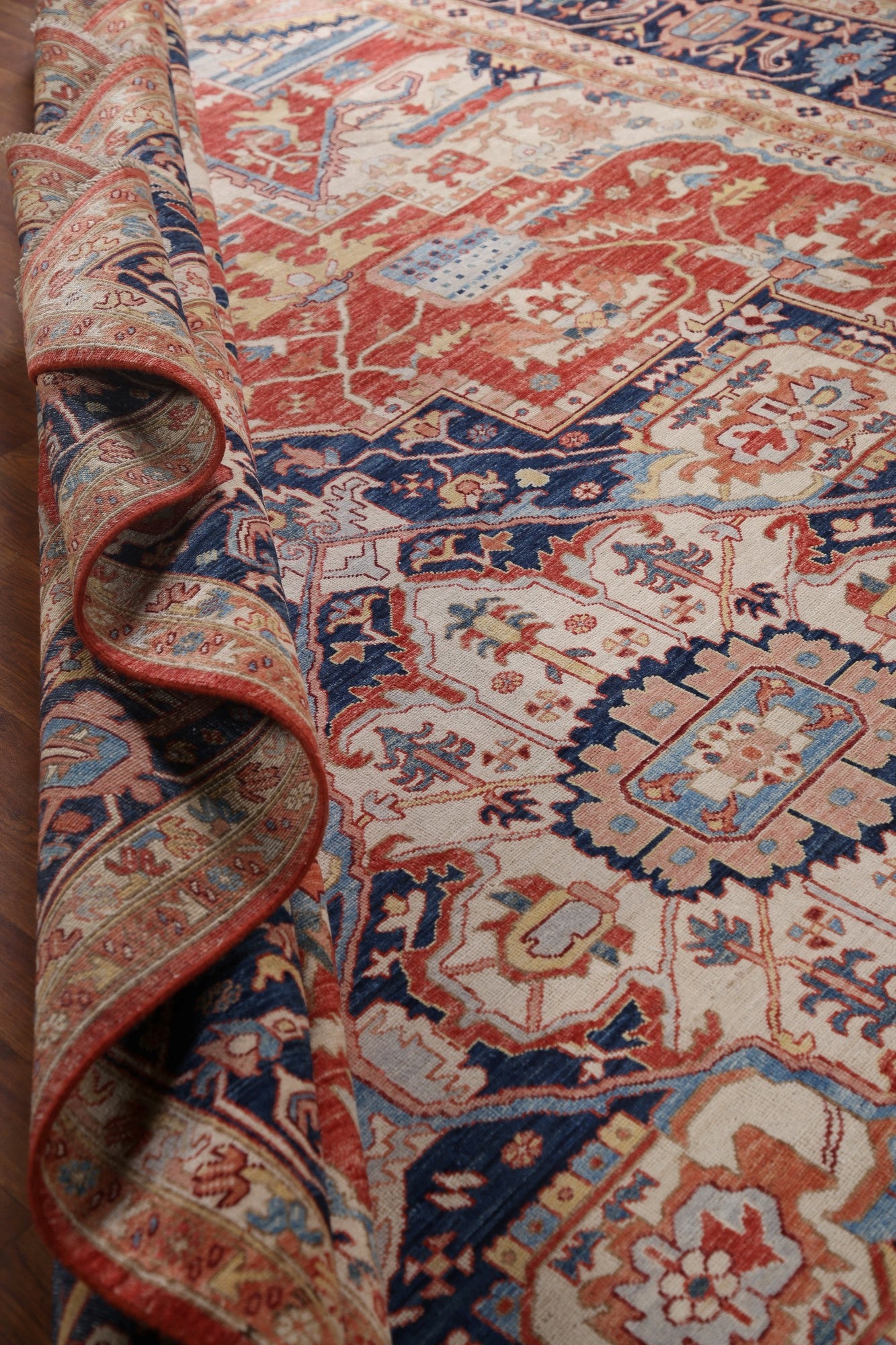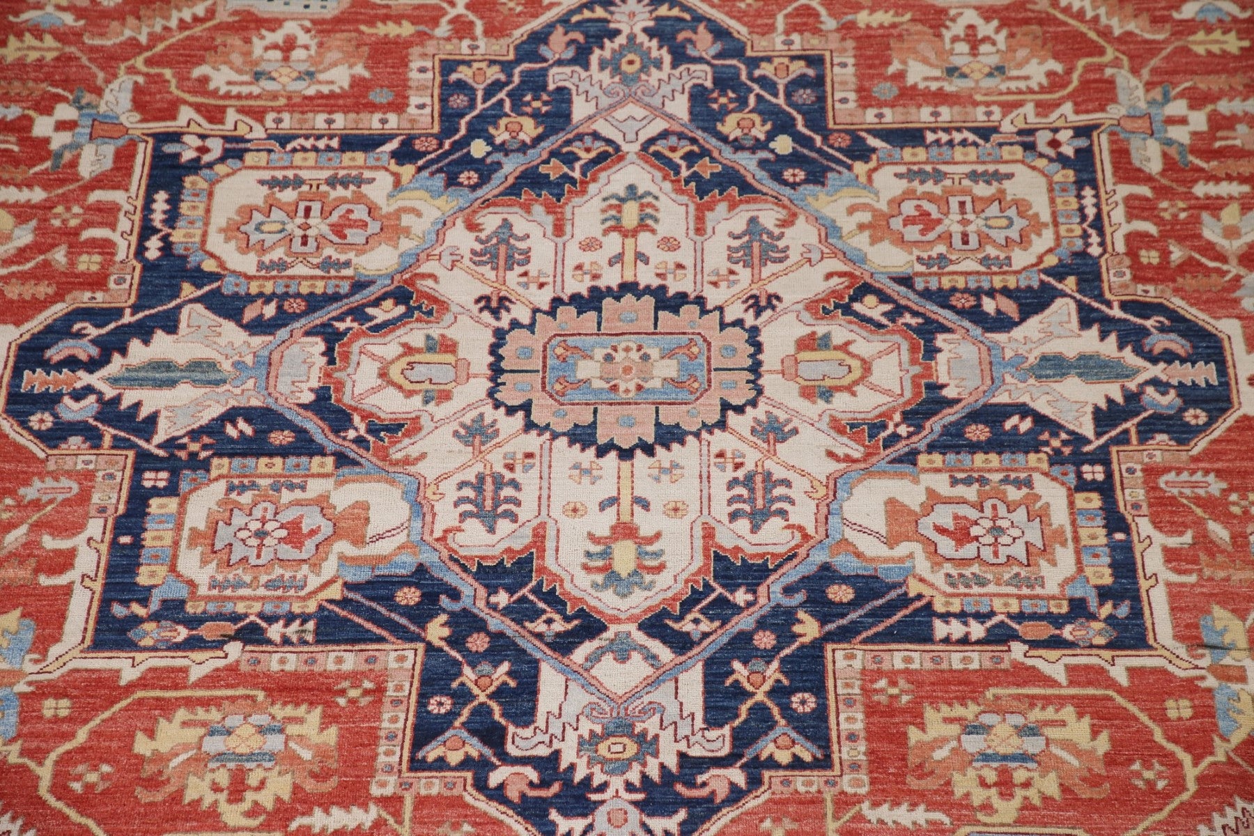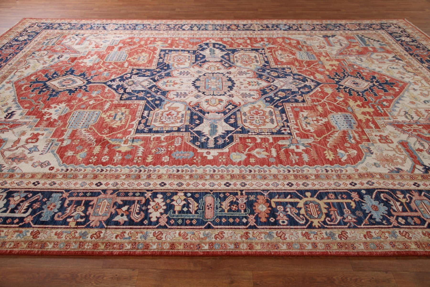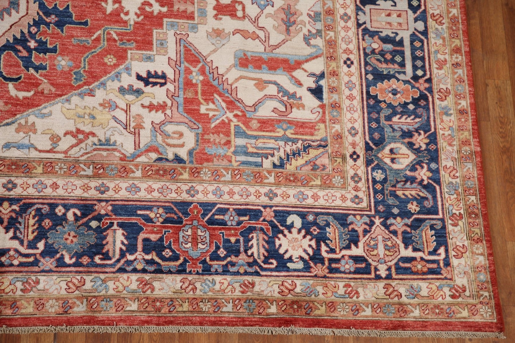 A Beautiful Genuine Pakistan Heriz (serapi) rug is Hand Knotted by skillful weavers in Pakistan with 100% Wool Material. This rug is in New, First Quality condition. dimensions are 13' 10'' X 9' 10'' in foot and 422 X 300 in centimeter. the primary color is Red.