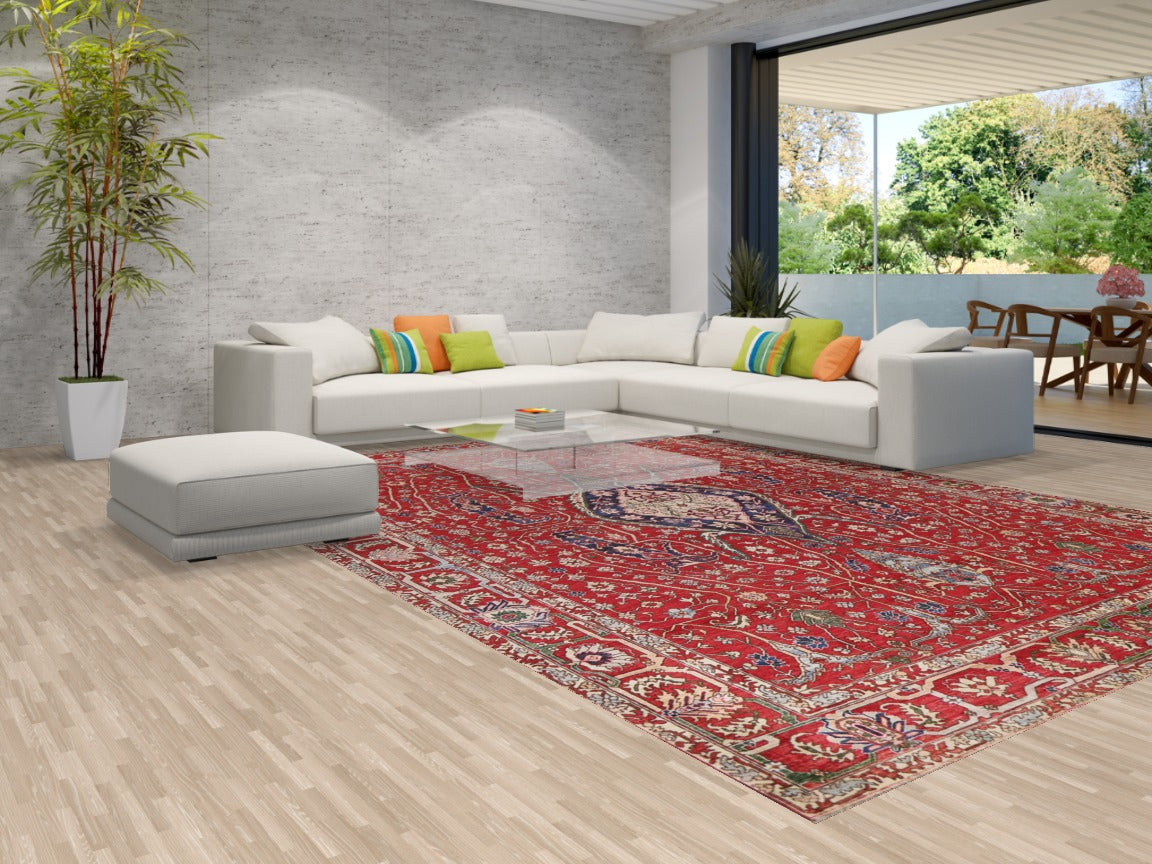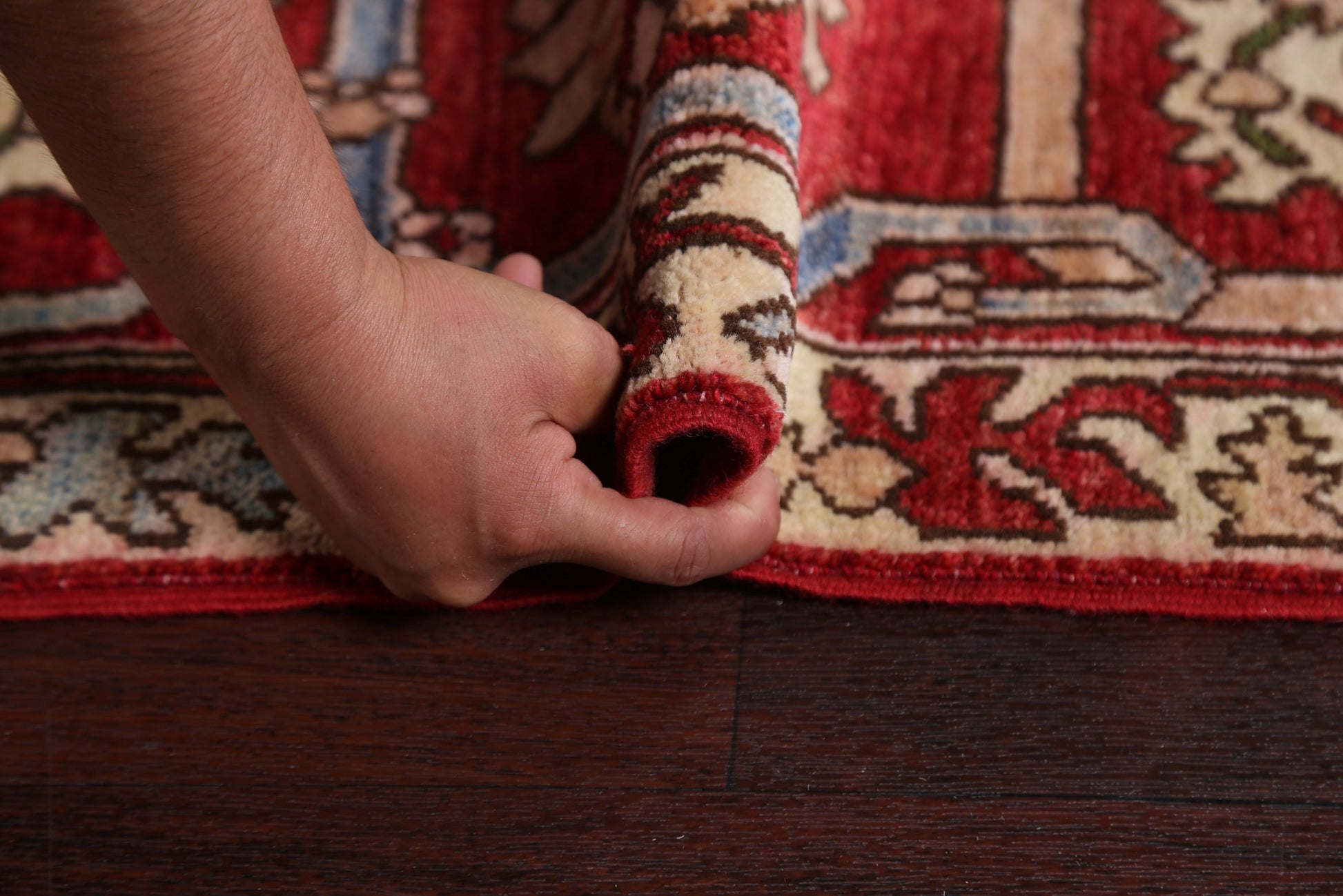 A Beautiful Genuine Pakistan Heriz (serapi) rug is Hand Knotted by skillful weavers in Pakistan with 100% Wool Material. This rug is in New, First Quality condition. dimensions are 13' 11'' X 10' 2'' in foot and 424 X 310 in centimeter. the primary color is Red.