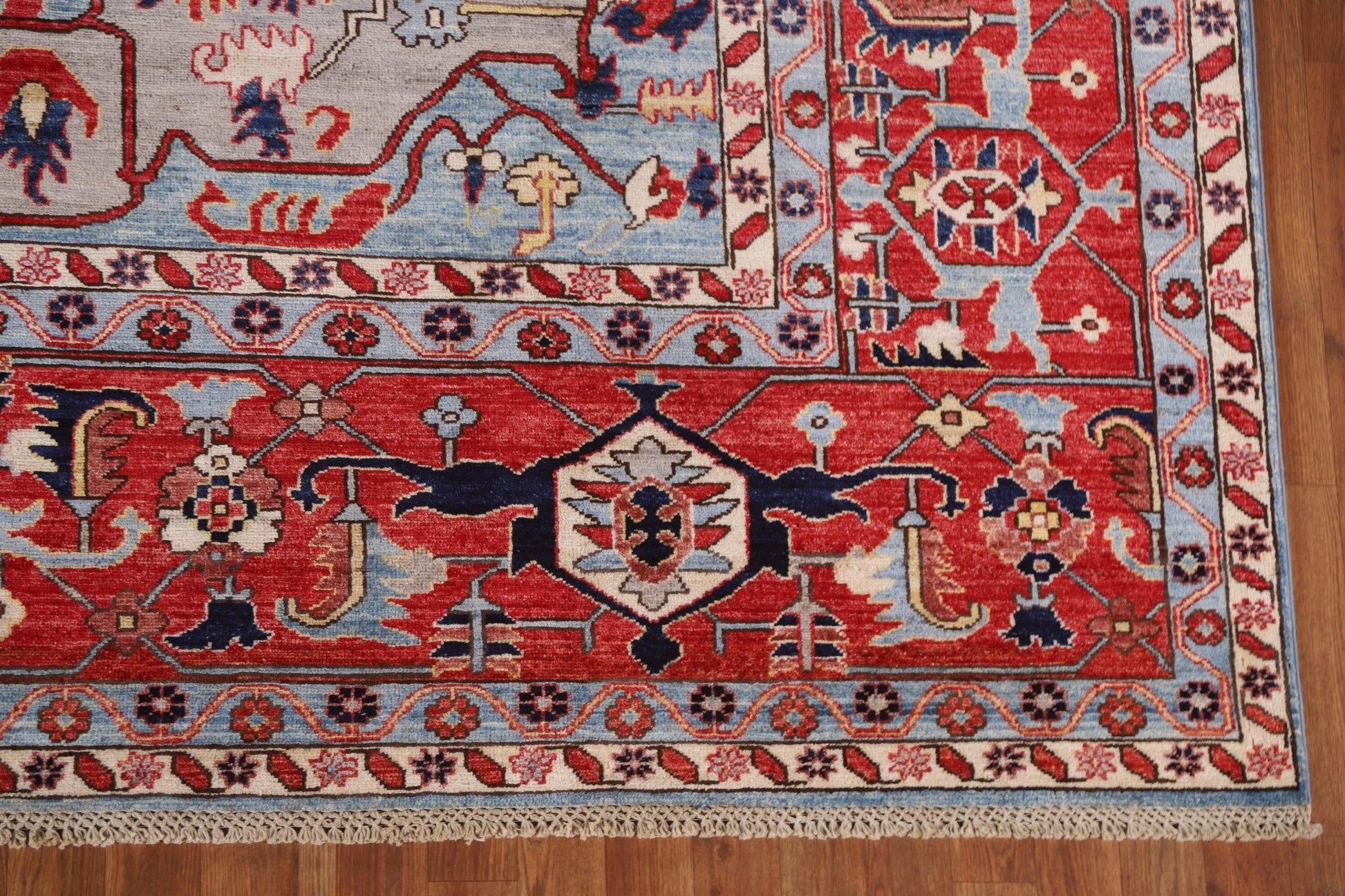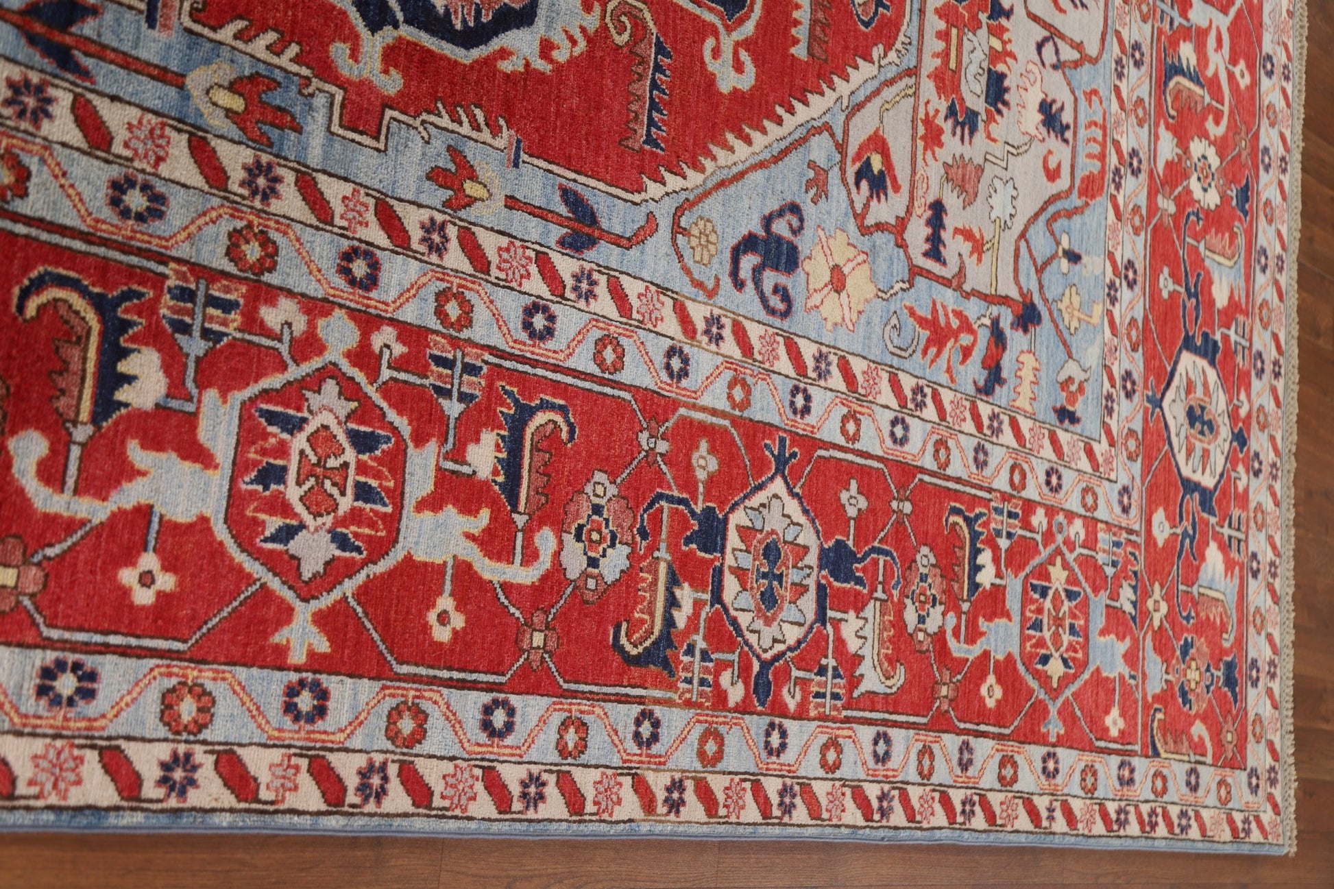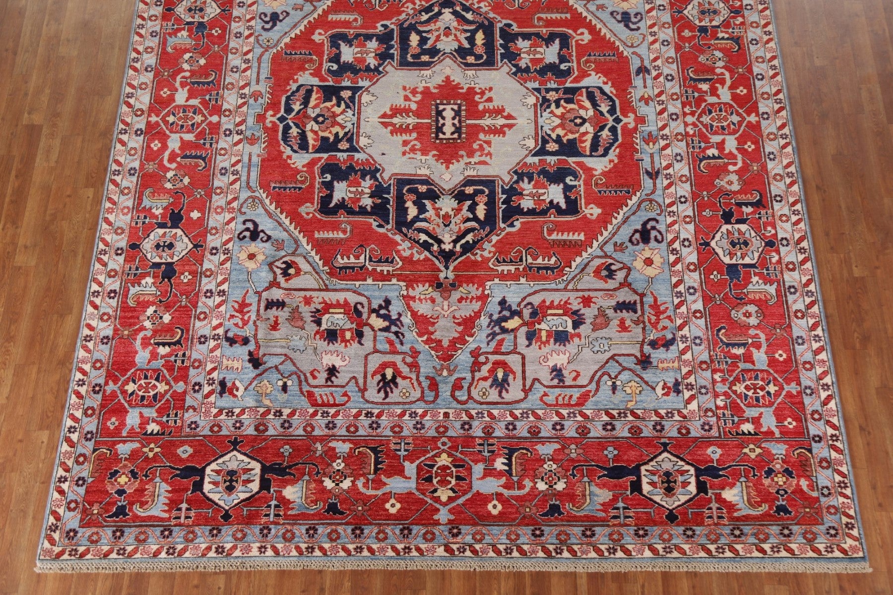 A Beautiful Genuine Pakistan Heriz (serapi) rug is Hand Knotted by skillful weavers in Pakistan with 100% Wool Material. This rug is in New, First Quality condition. dimensions are 11' 9'' X 9' 1'' in foot and 358 X 277 in centimeter. the primary color is Red.