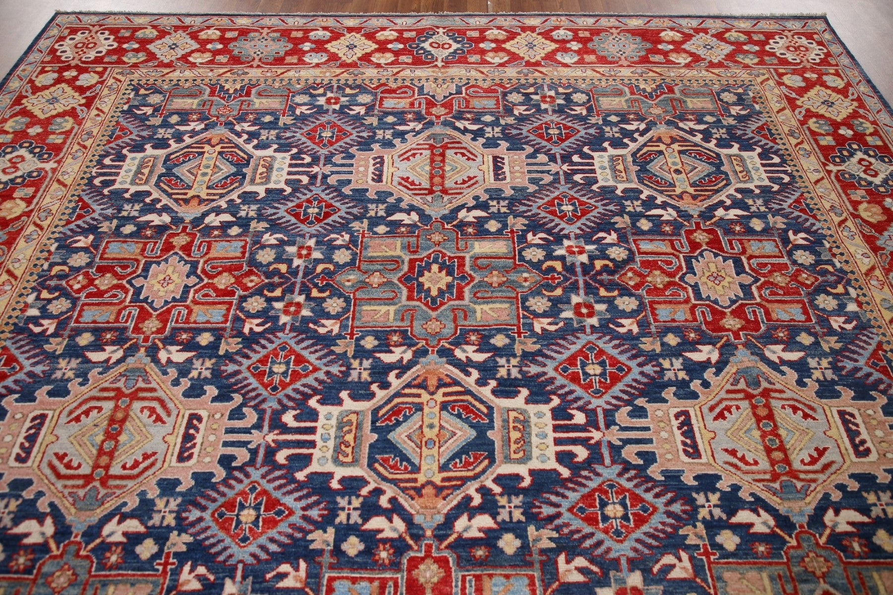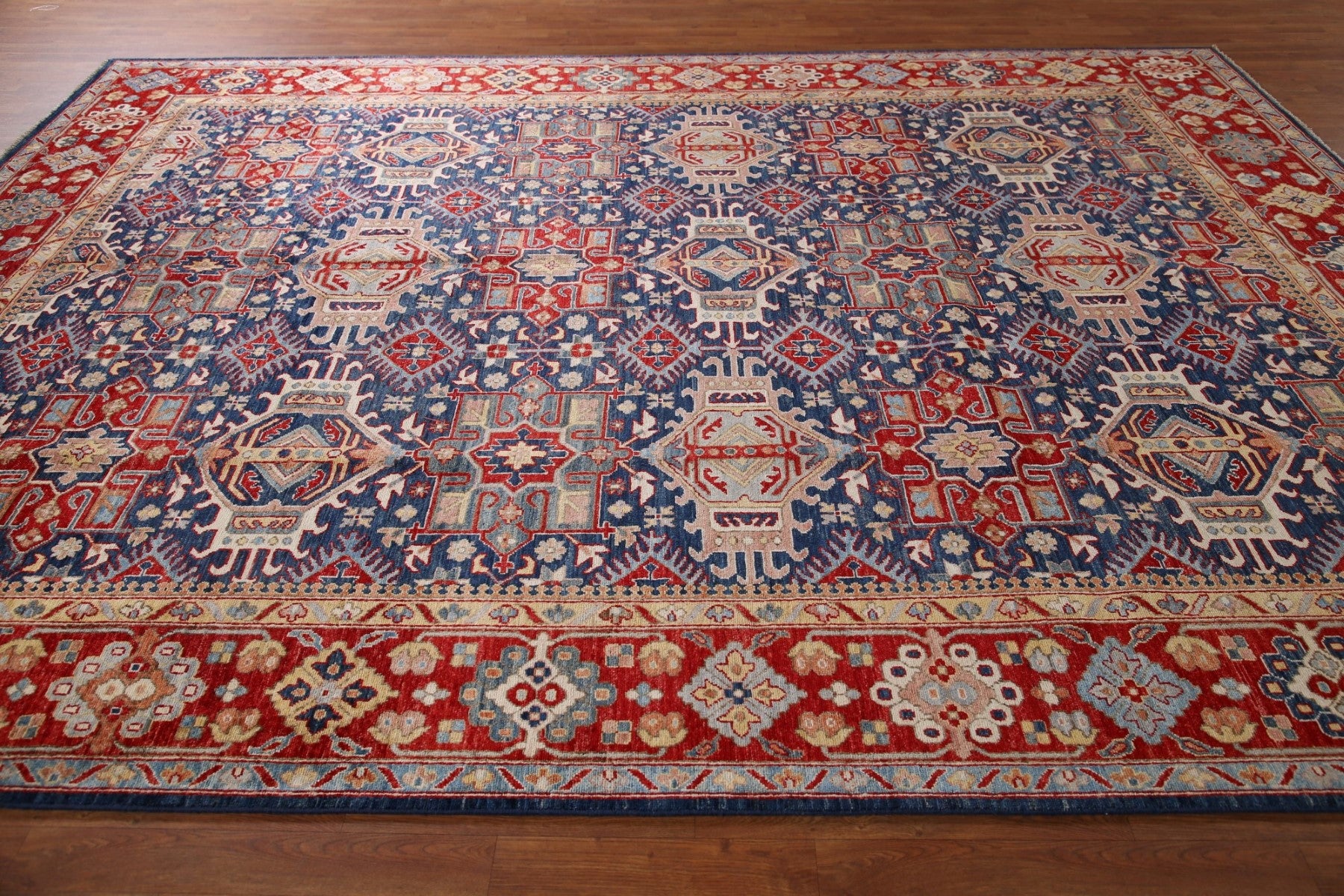 A Beautiful Genuine Pakistan Heriz (serapi) rug is Hand Knotted by skillful weavers in Pakistan with 100% Wool Material. This rug is in New, First Quality condition. dimensions are 11' 10'' X 8' 10'' in foot and 361 X 269 in centimeter. the primary color is Navy Blue & Blues.