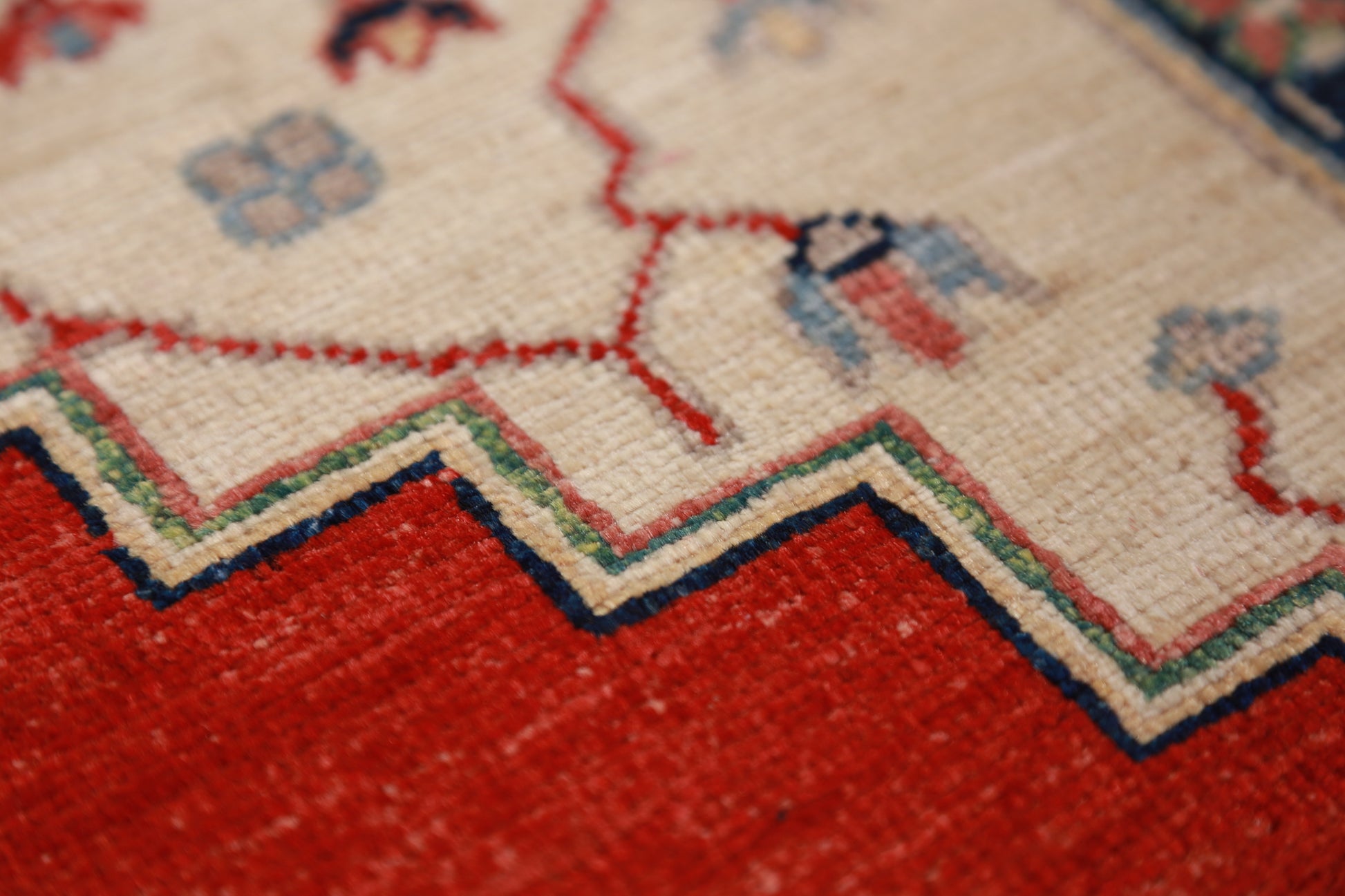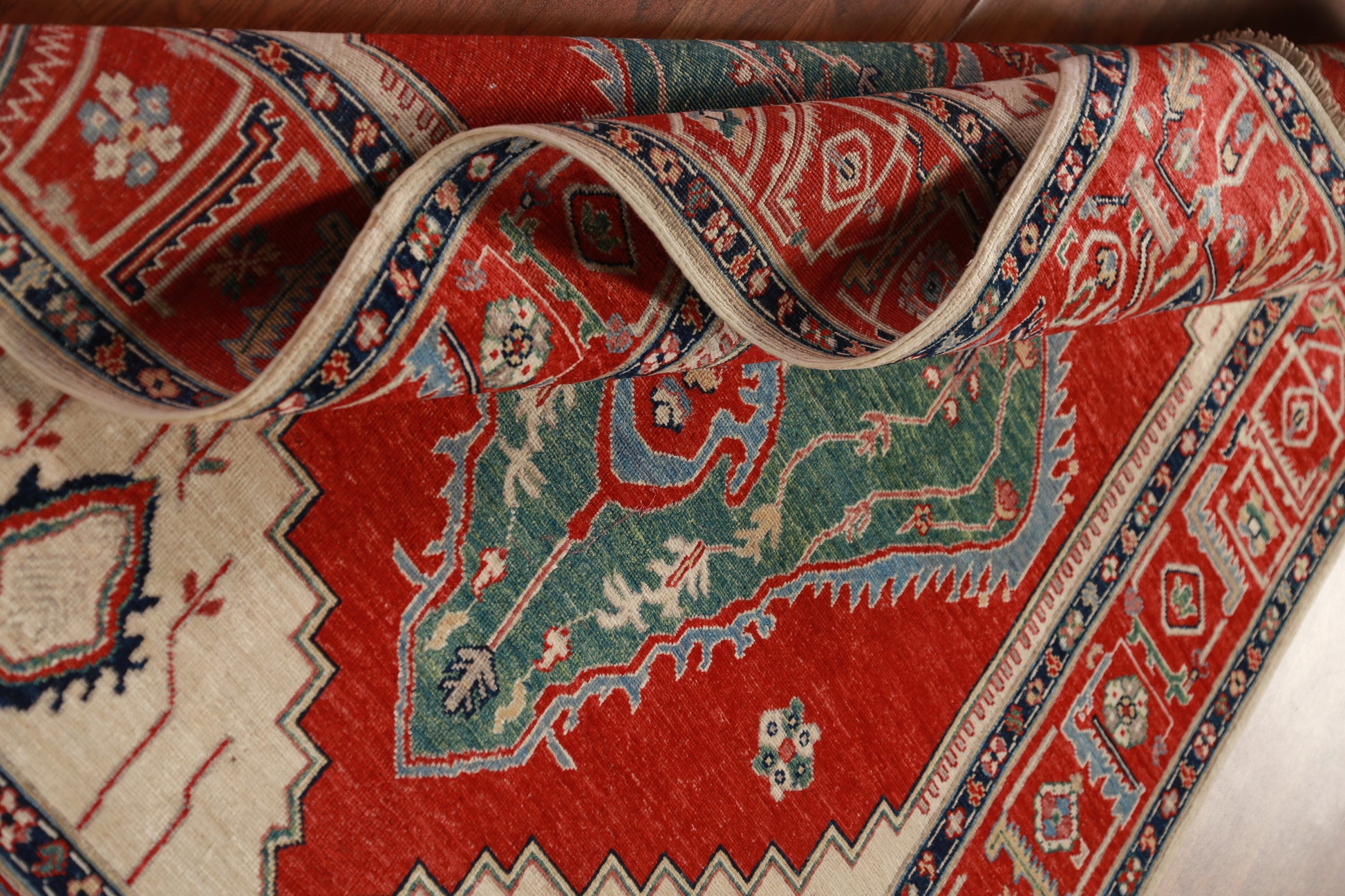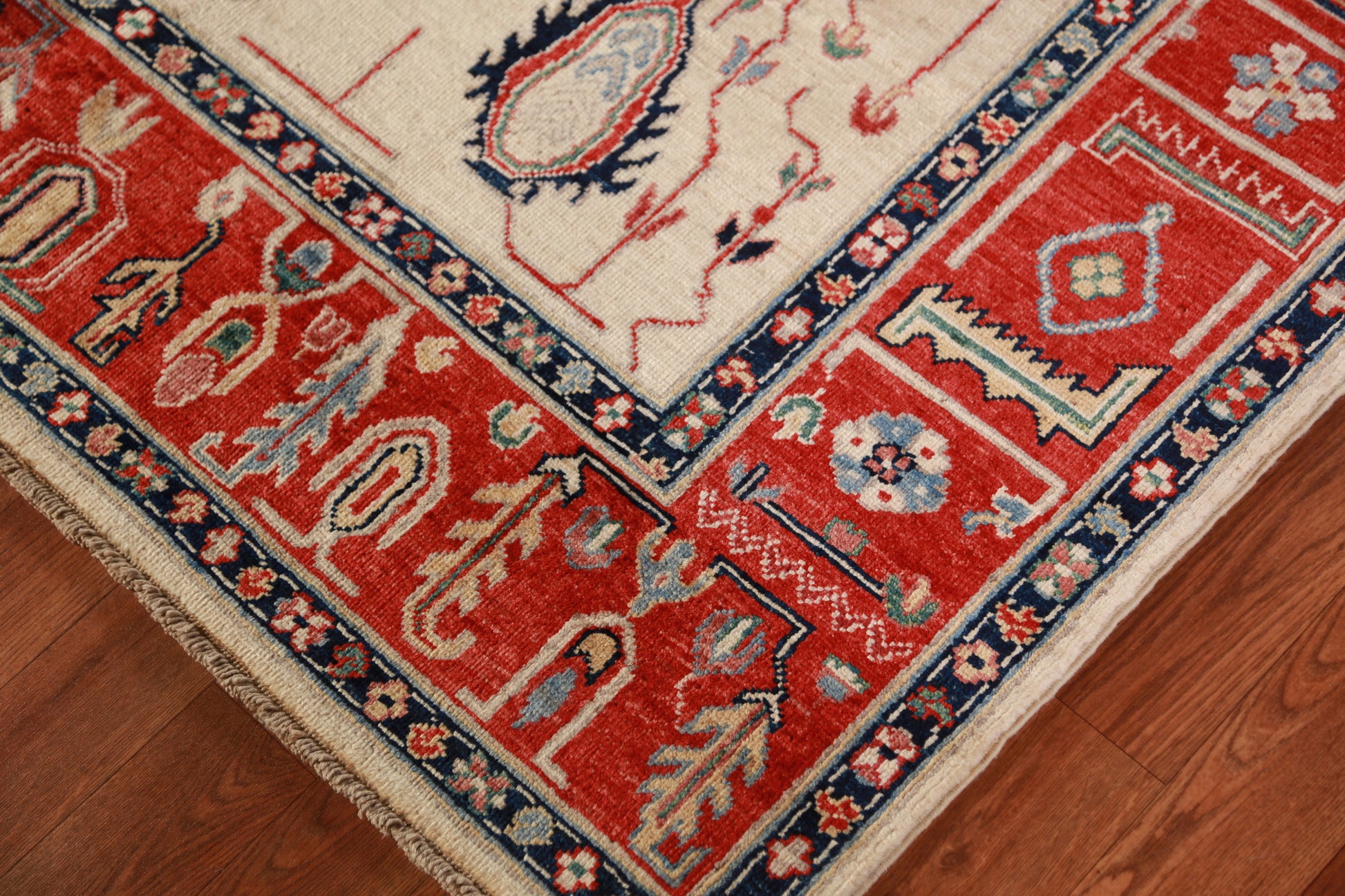 A Beautiful Genuine Pakistan Heriz (serapi) rug is Hand Knotted by skillful weavers in Pakistan with 100% Wool Material. This rug is in New, First Quality condition. dimensions are 6' 10'' X 4' 10'' in foot and 208 X 147 in centimeter. the primary color is Red.