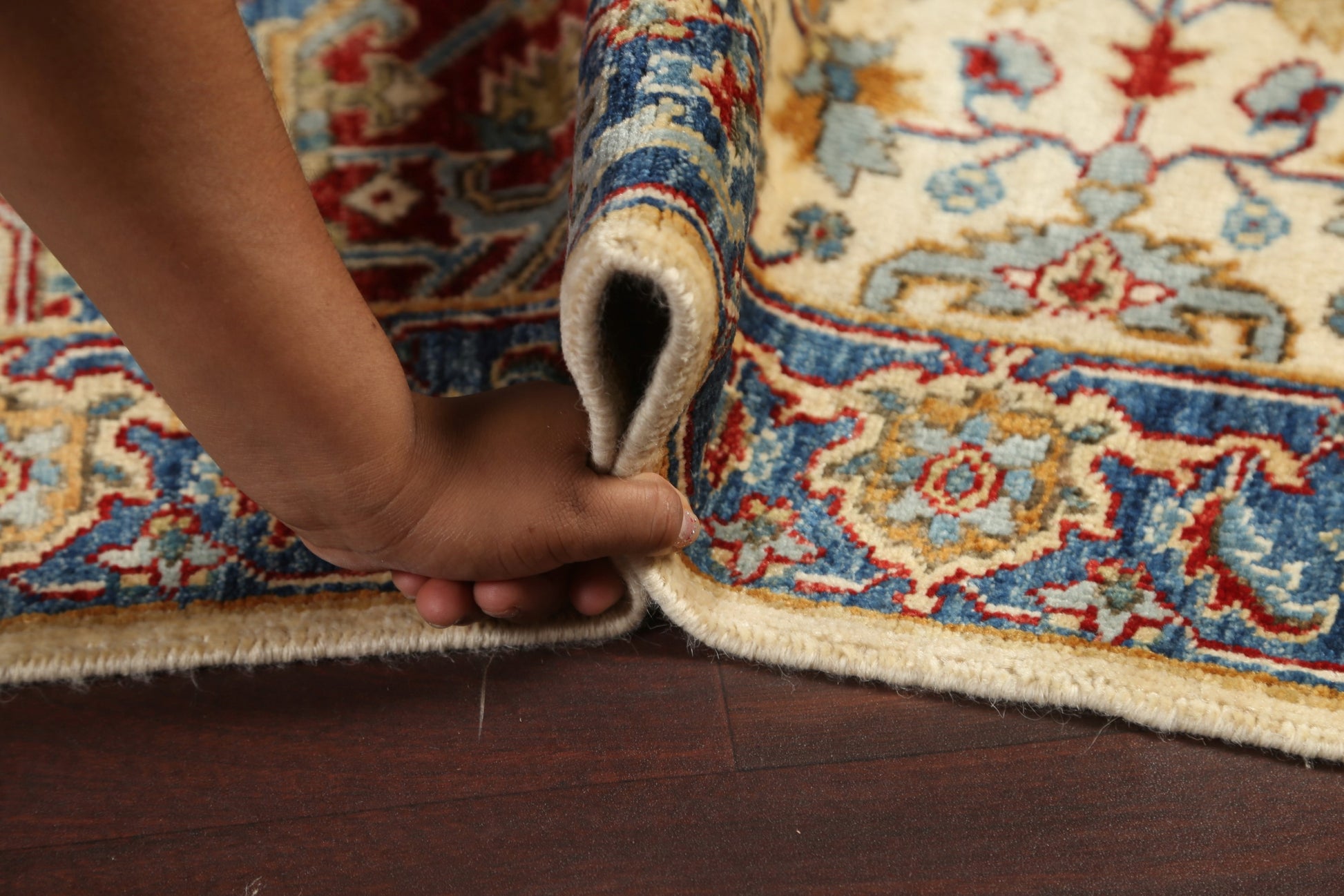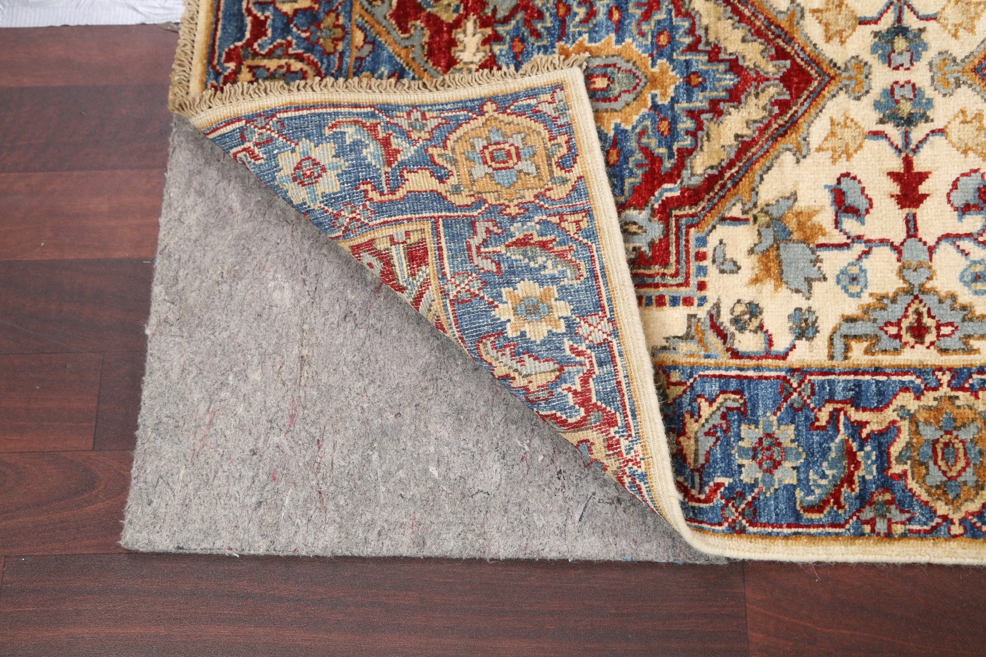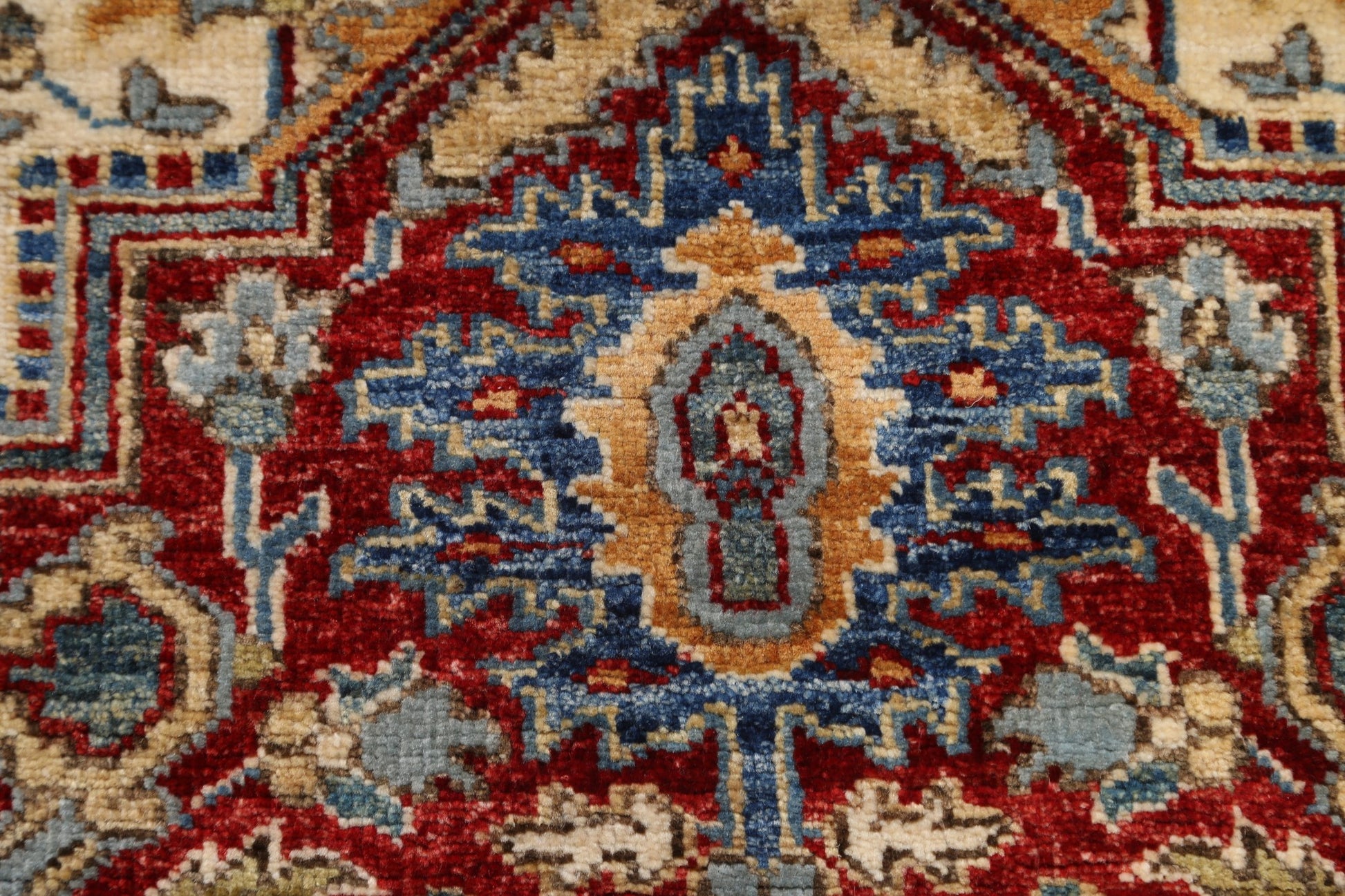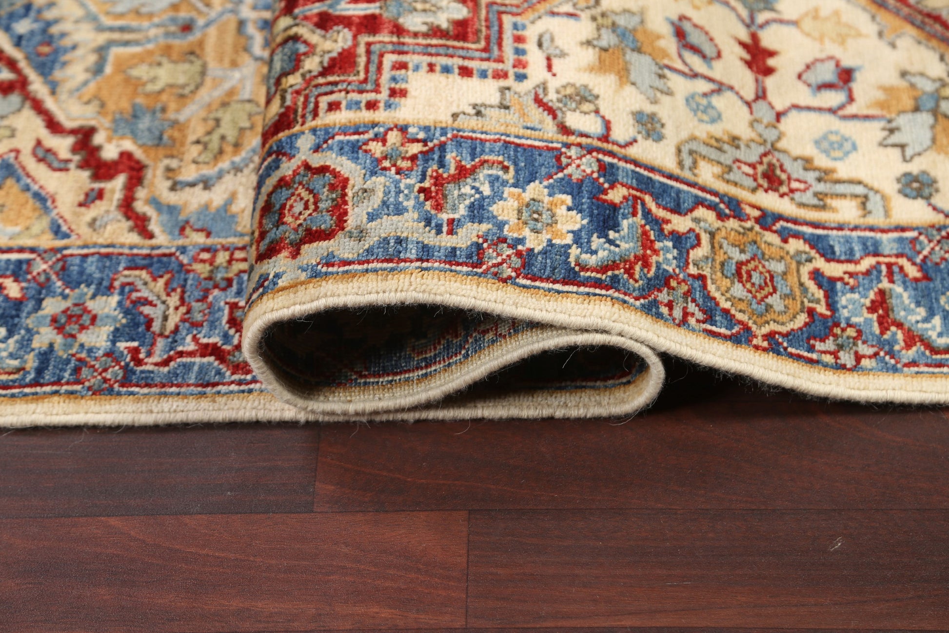 A Beautiful Genuine Pakistan Heriz (serapi) rug is Hand Knotted by skillful weavers in Pakistan with 100% Wool Material. This rug is in New, First Quality condition. dimensions are 9' 7'' X 2' 7'' in foot and 292 X 79 in centimeter. the primary color is Beige & Ivories.