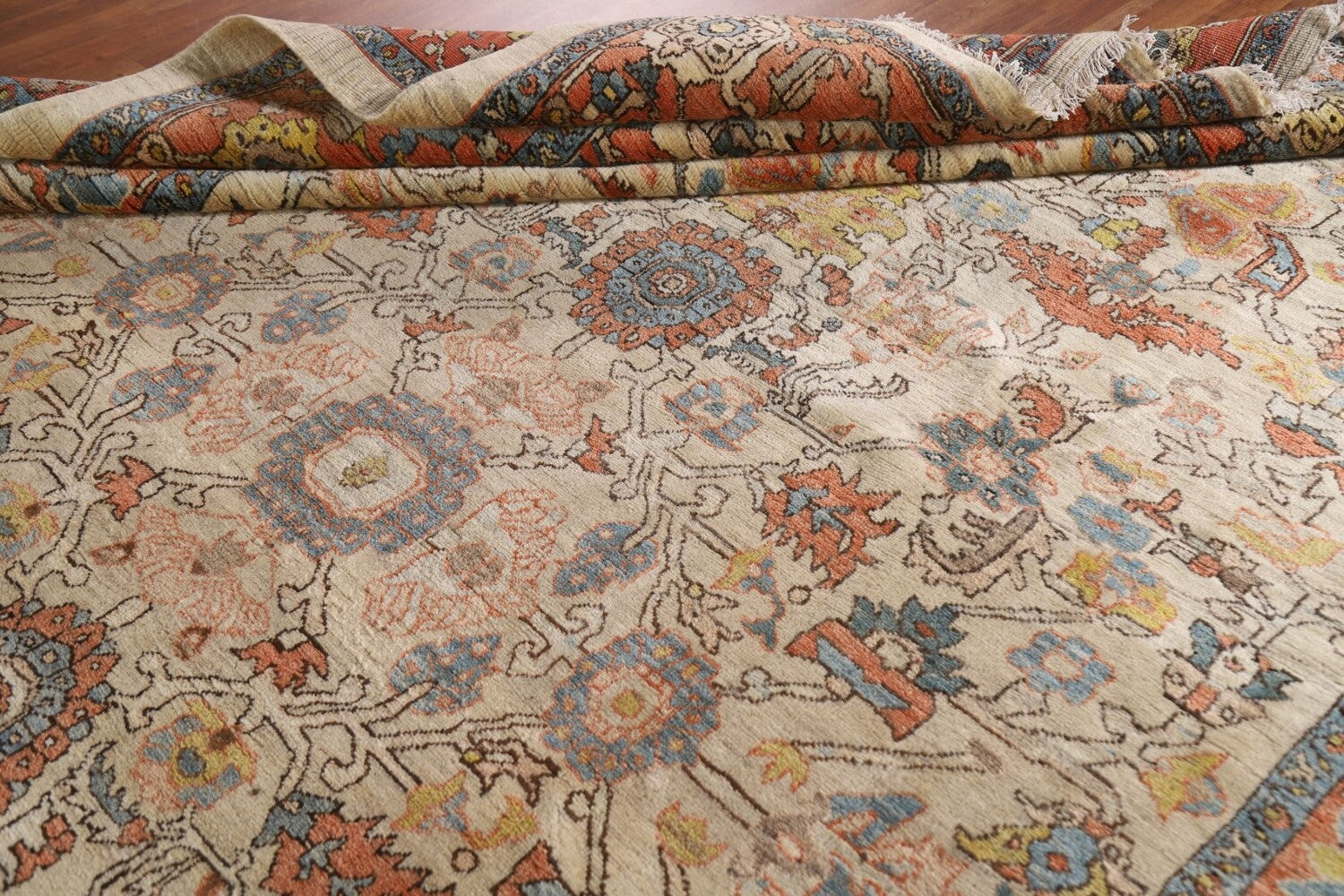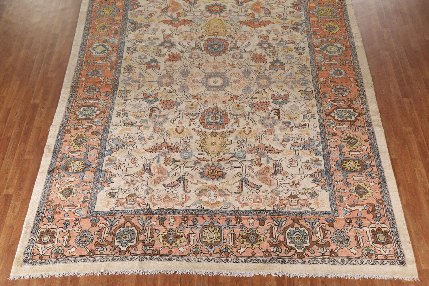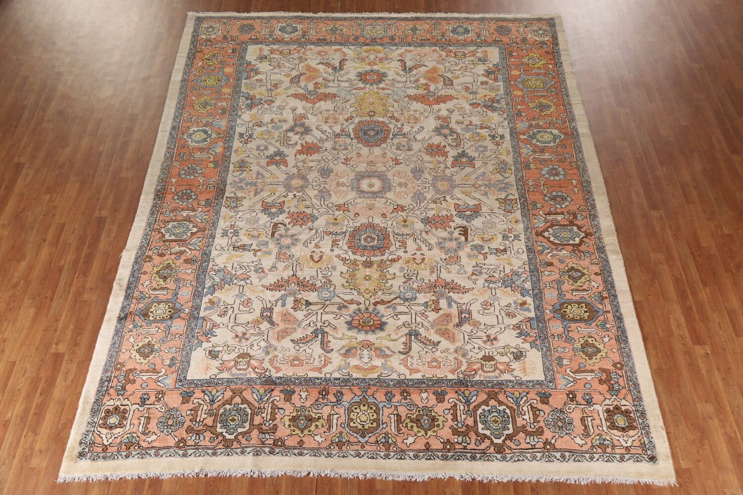A Beautiful Genuine Persia ( Persia ) Heriz (serapi) rug is Hand Knotted by skillful weavers in Persia ( Persia ) with 100% Wool Material. This rug is in Excellent condition. dimensions are 12' 10'' X 9' 11'' in foot and 391 X 302 in centimeter. the primary color is Beige & Ivories.