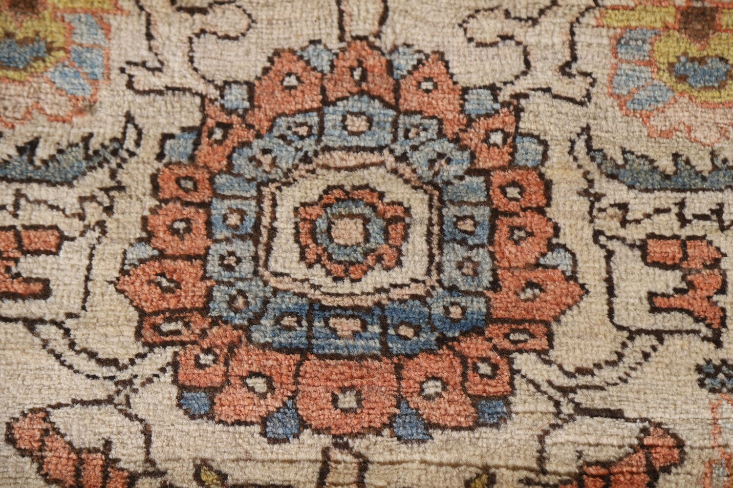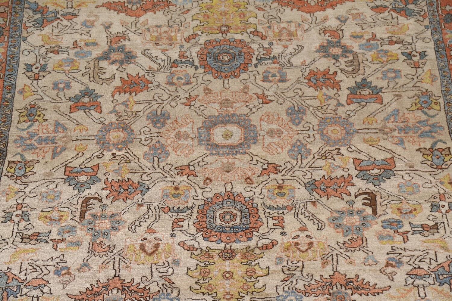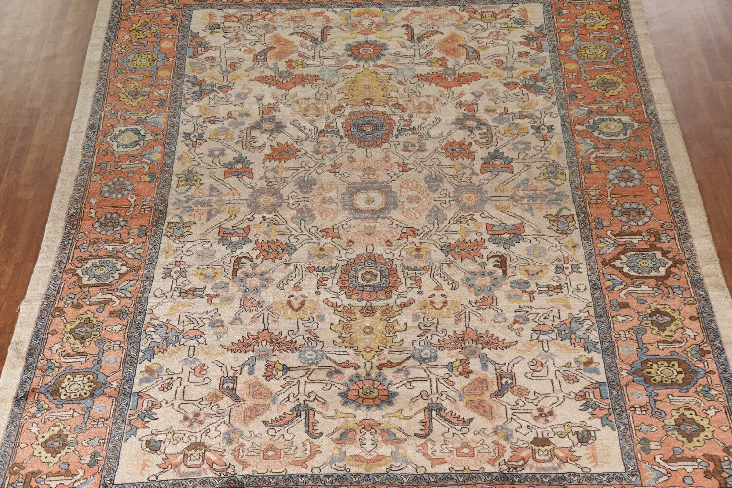 A Beautiful Genuine Persia ( Persia ) Heriz (serapi) rug is Hand Knotted by skillful weavers in Persia ( Persia ) with 100% Wool Material. This rug is in Excellent condition. dimensions are 12' 10'' X 9' 11'' in foot and 391 X 302 in centimeter. the primary color is Beige & Ivories.