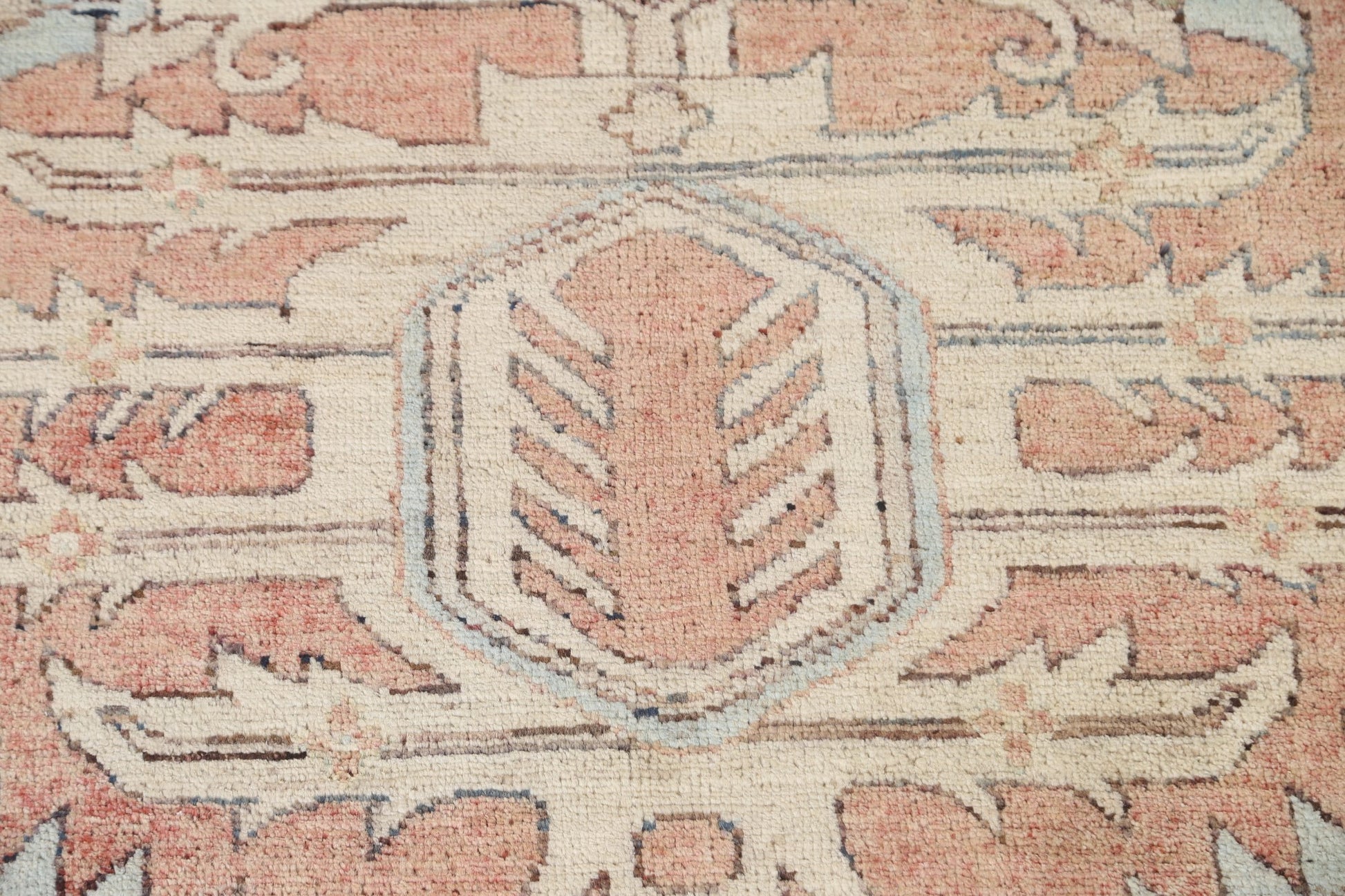 A Beautiful Genuine Persia ( Persia ) Heriz (serapi) rug is Hand Knotted by skillful weavers in Persia ( Persia ) with 100% Wool Material. This rug is in Very Good condition. dimensions are 12' 2'' X 9' 0'' in foot and 371 X 274 in centimeter. the primary color is Coral.