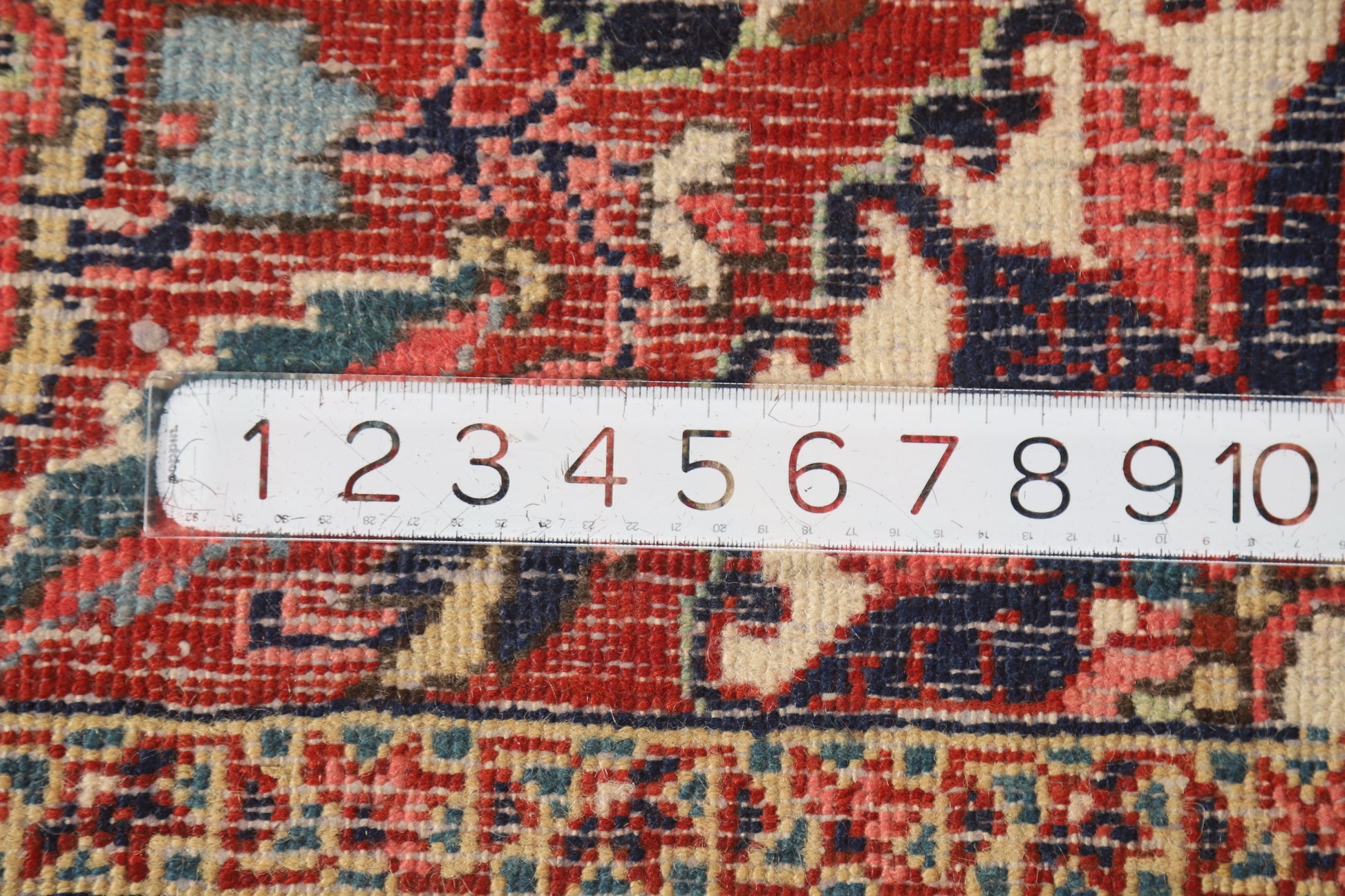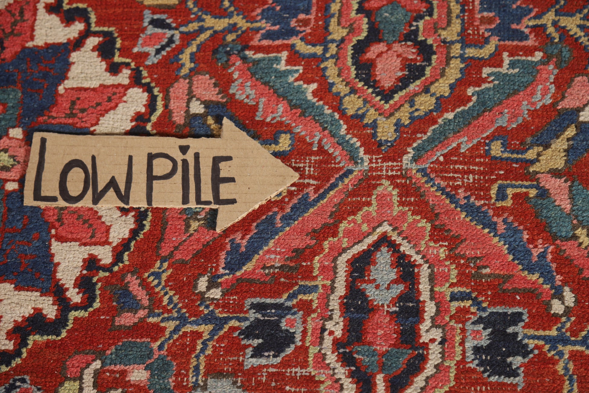 A Beautiful Genuine Persia ( Persia ) Heriz (serapi) rug is Hand Knotted by skillful weavers in Persia ( Persia ) with 100% Wool Material. This rug is in Very Good ( Low Pile ) condition. dimensions are 12' 8'' X 3' 4'' in foot and 386 X 102 in centimeter. the primary color is Red.