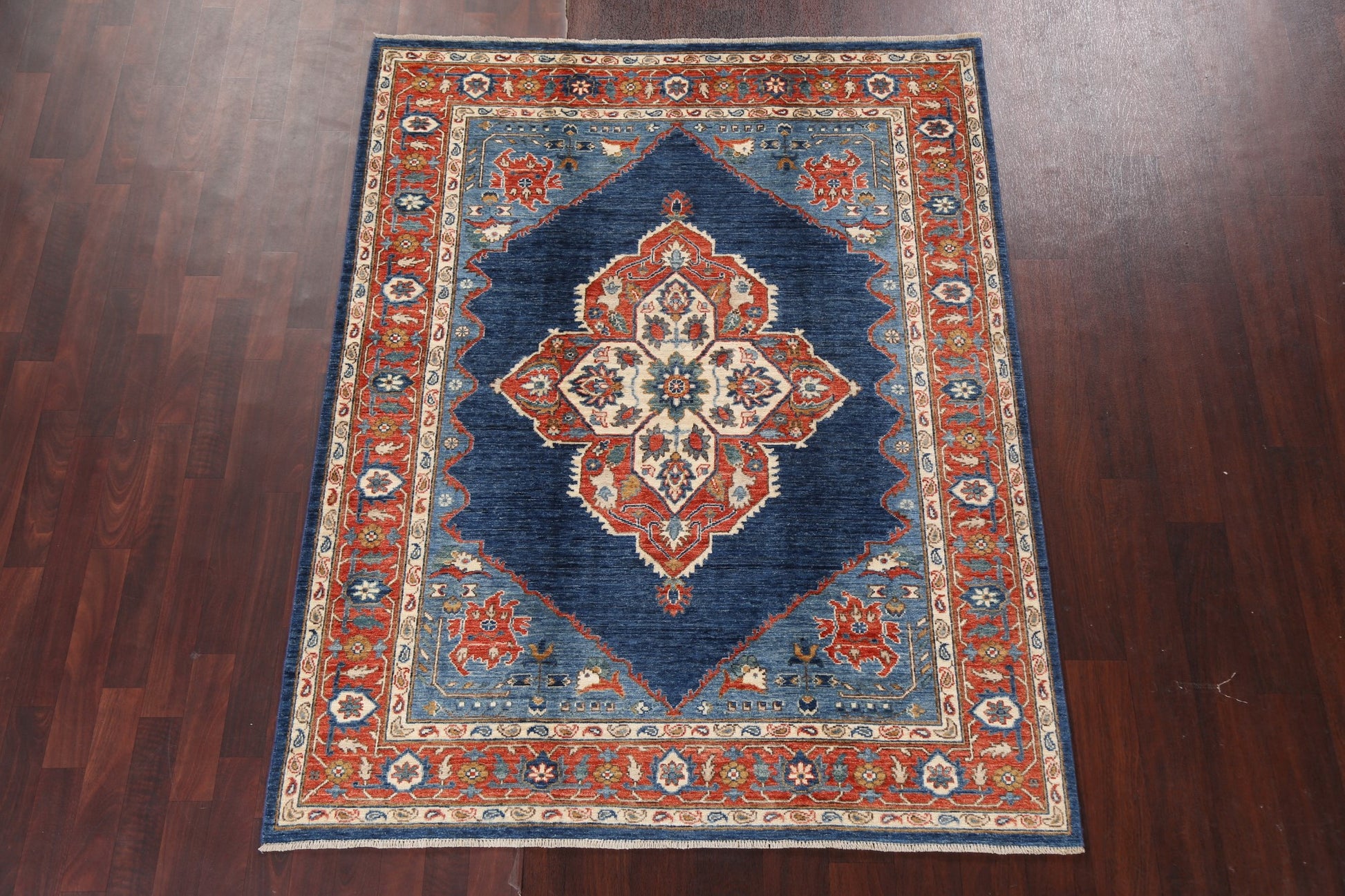 Vegetable Dye Heriz Serapi Wool Area Rug 5x7