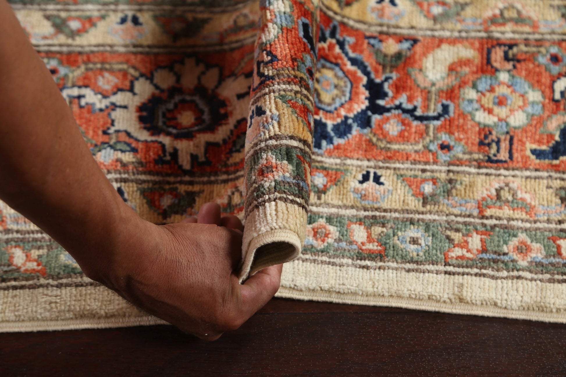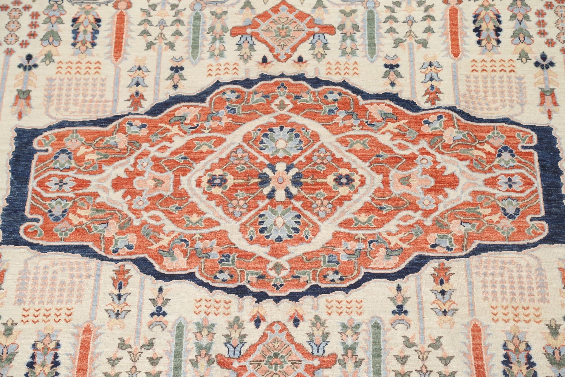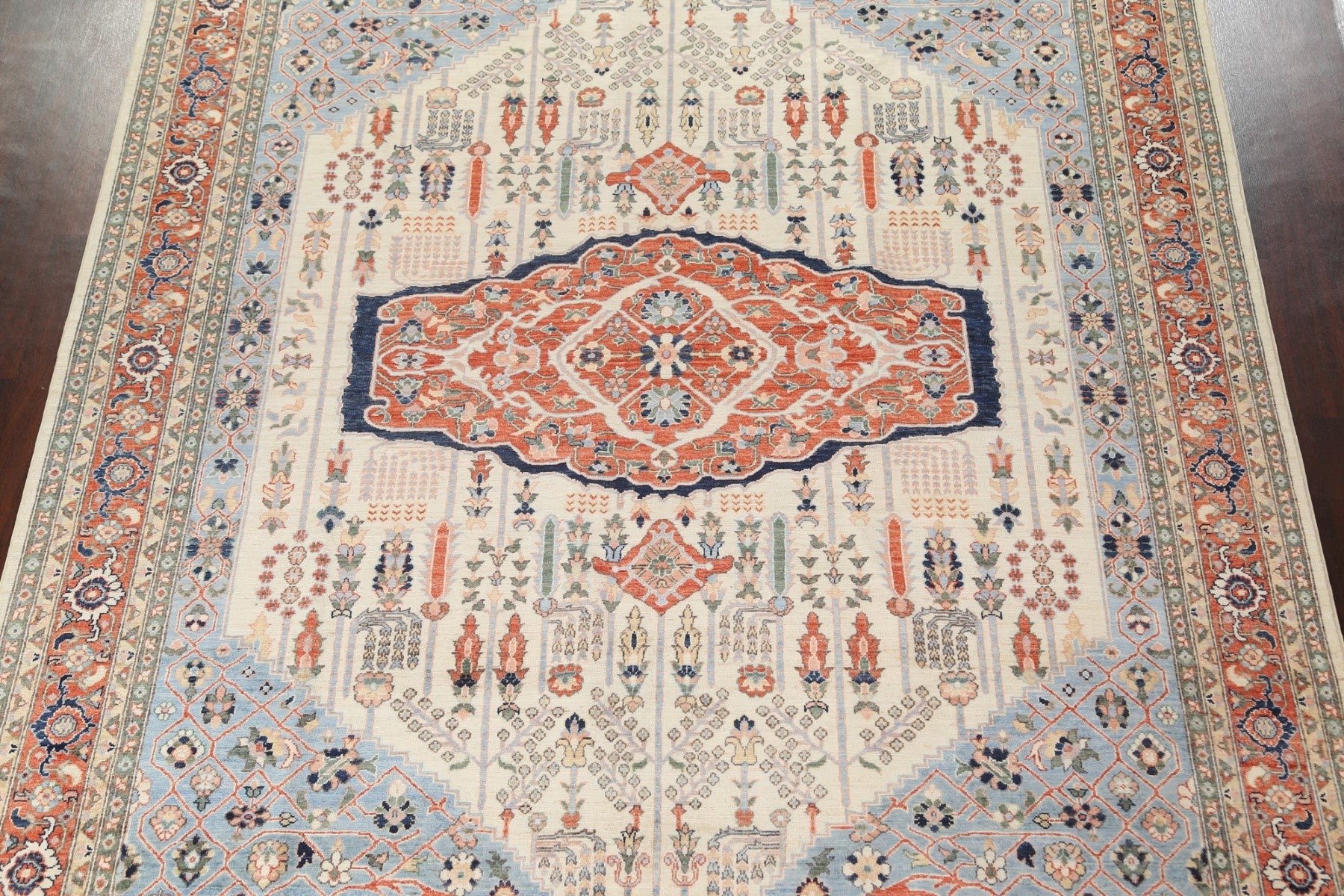 A Beautiful Genuine Pakistan Heriz (serapi) rug is Hand Knotted by skillful weavers in Pakistan with 100% Wool Material. This rug is in New, First Quality condition. dimensions are 11' 10'' X 9' 1'' in foot and 361 X 277 in centimeter. the primary color is Beige & Ivories.