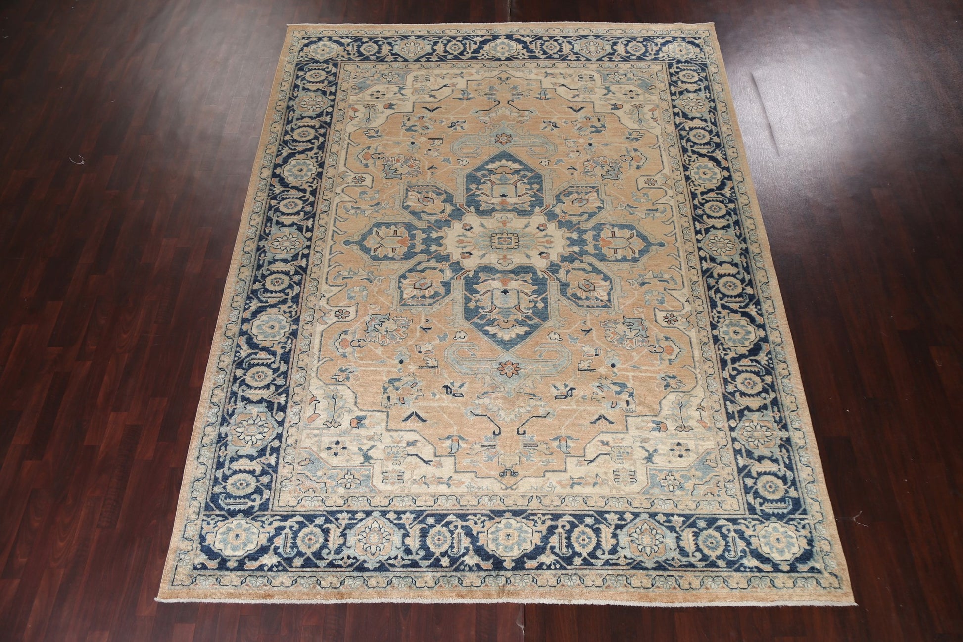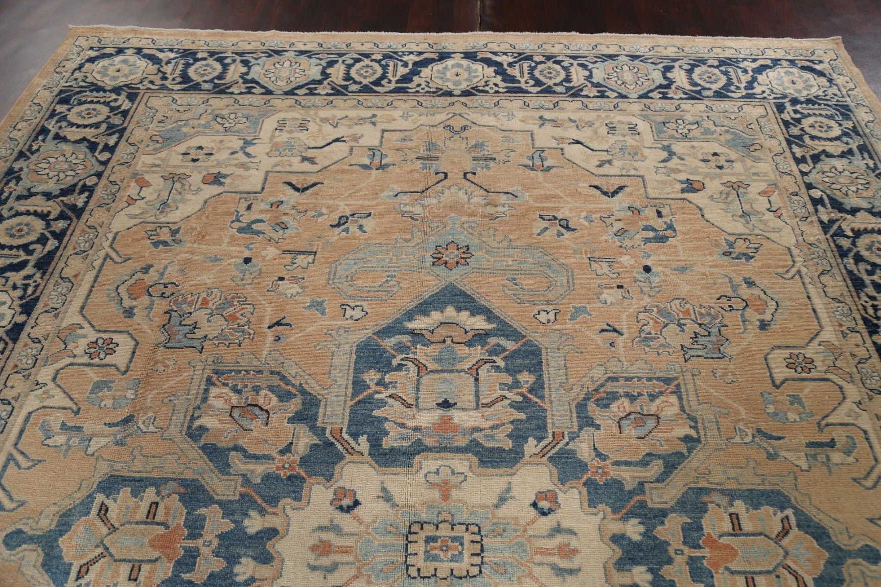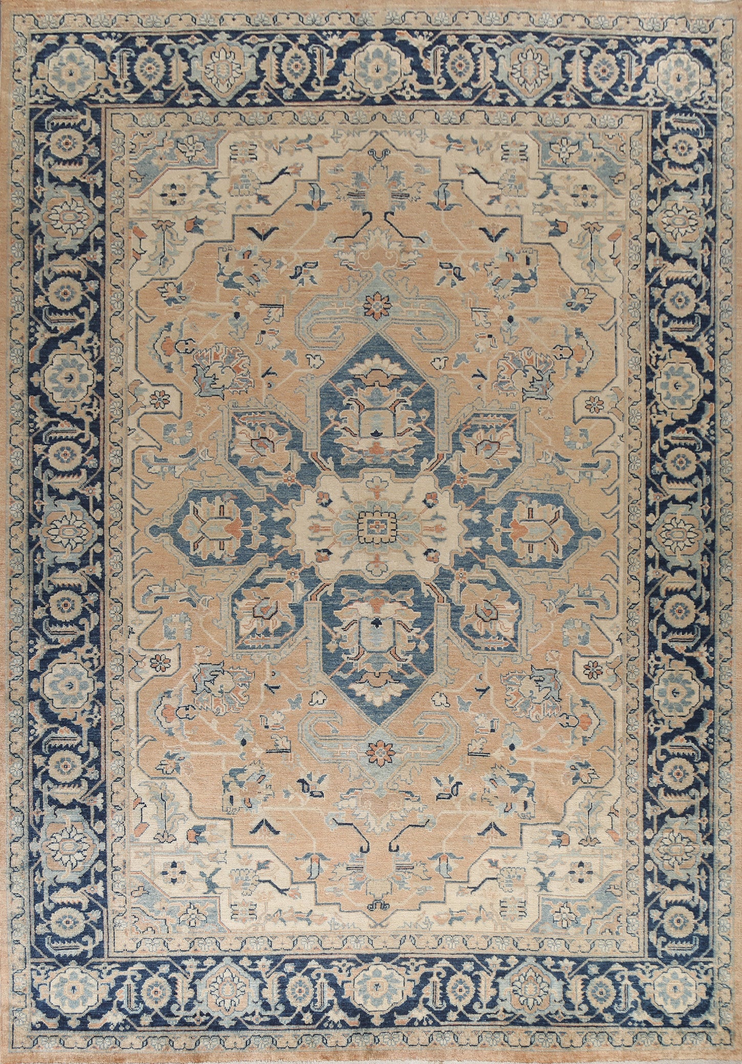 A Beautiful Genuine Turkey Heriz rug is Hand Knotted by skillful weavers in Turkey with 100% Wool Material. This rug is in New, First Quality condition. dimensions are 11' 7'' X 9' 1'' in foot and 353 X 277 in centimeter. the primary color is Peach.