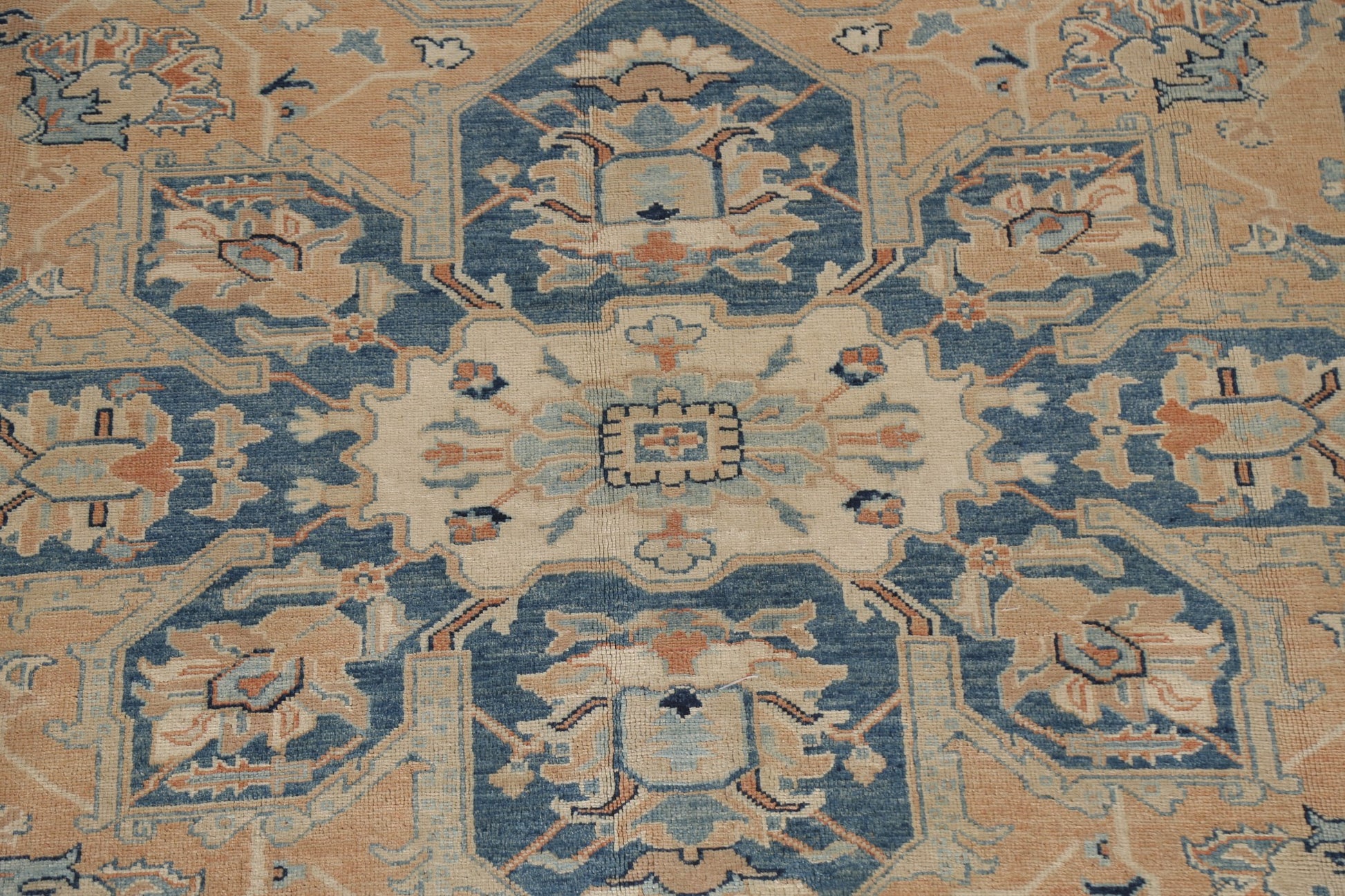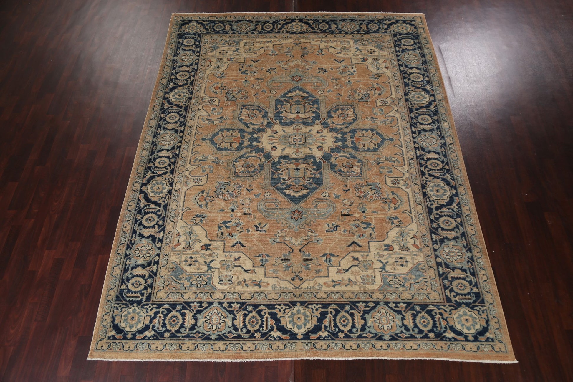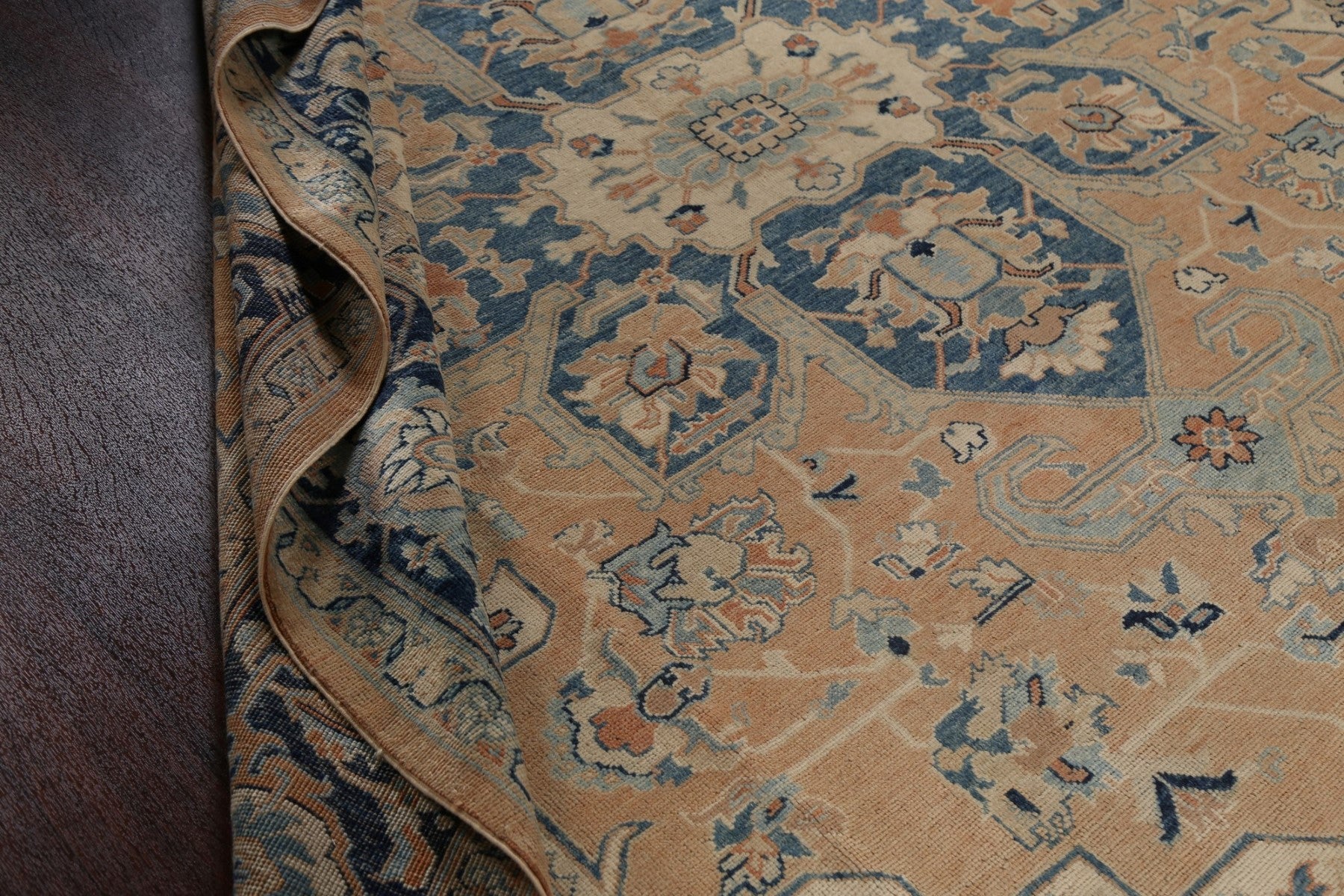 A Beautiful Genuine Turkey Heriz rug is Hand Knotted by skillful weavers in Turkey with 100% Wool Material. This rug is in New, First Quality condition. dimensions are 11' 7'' X 9' 1'' in foot and 353 X 277 in centimeter. the primary color is Peach.