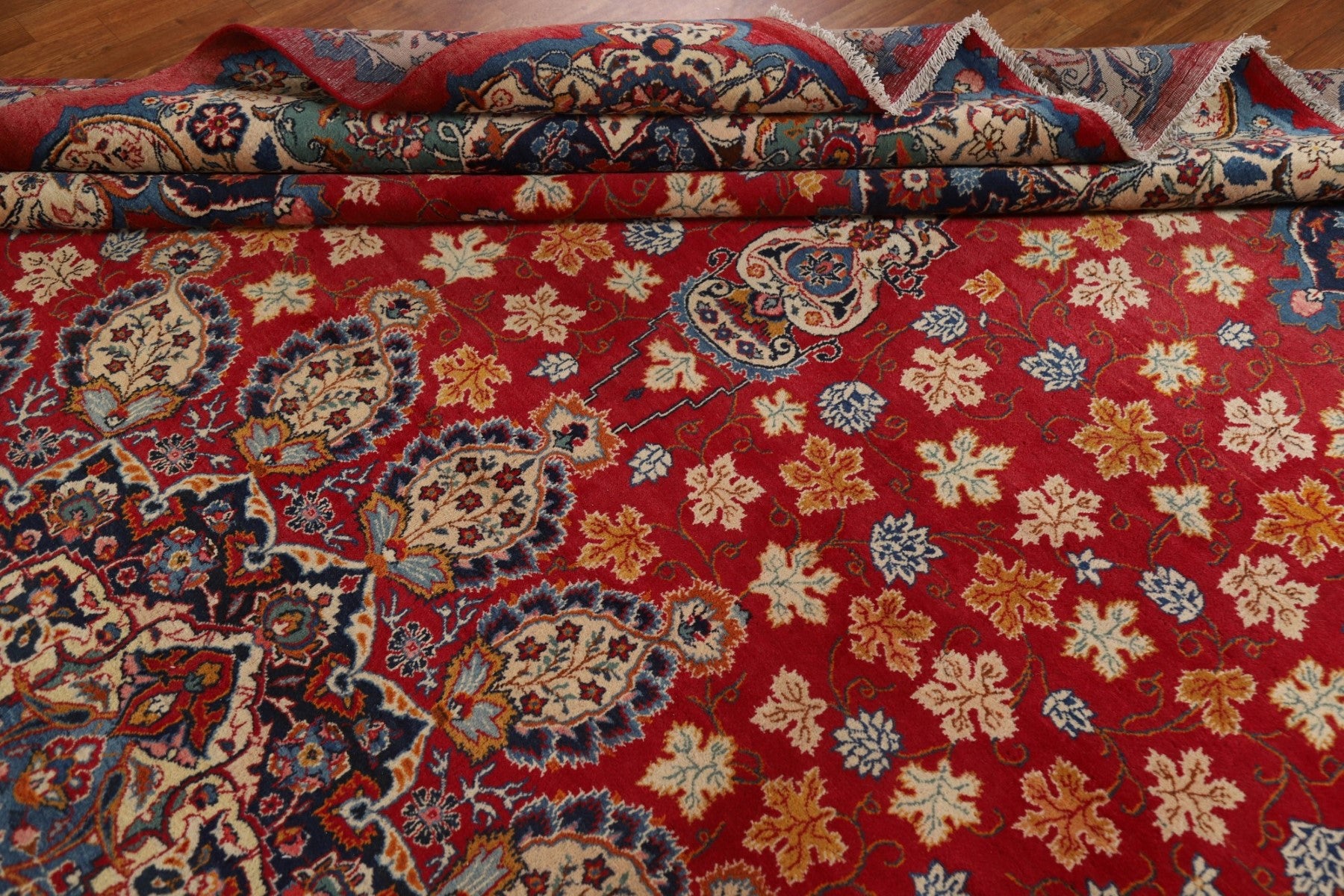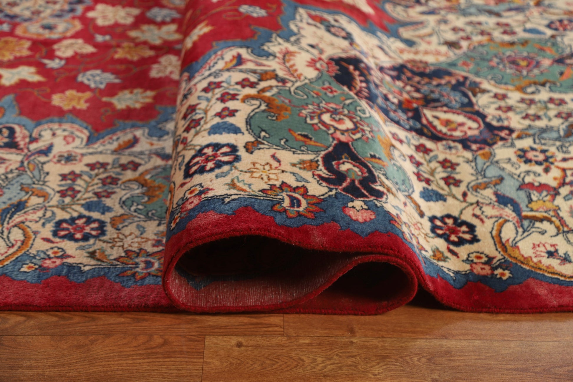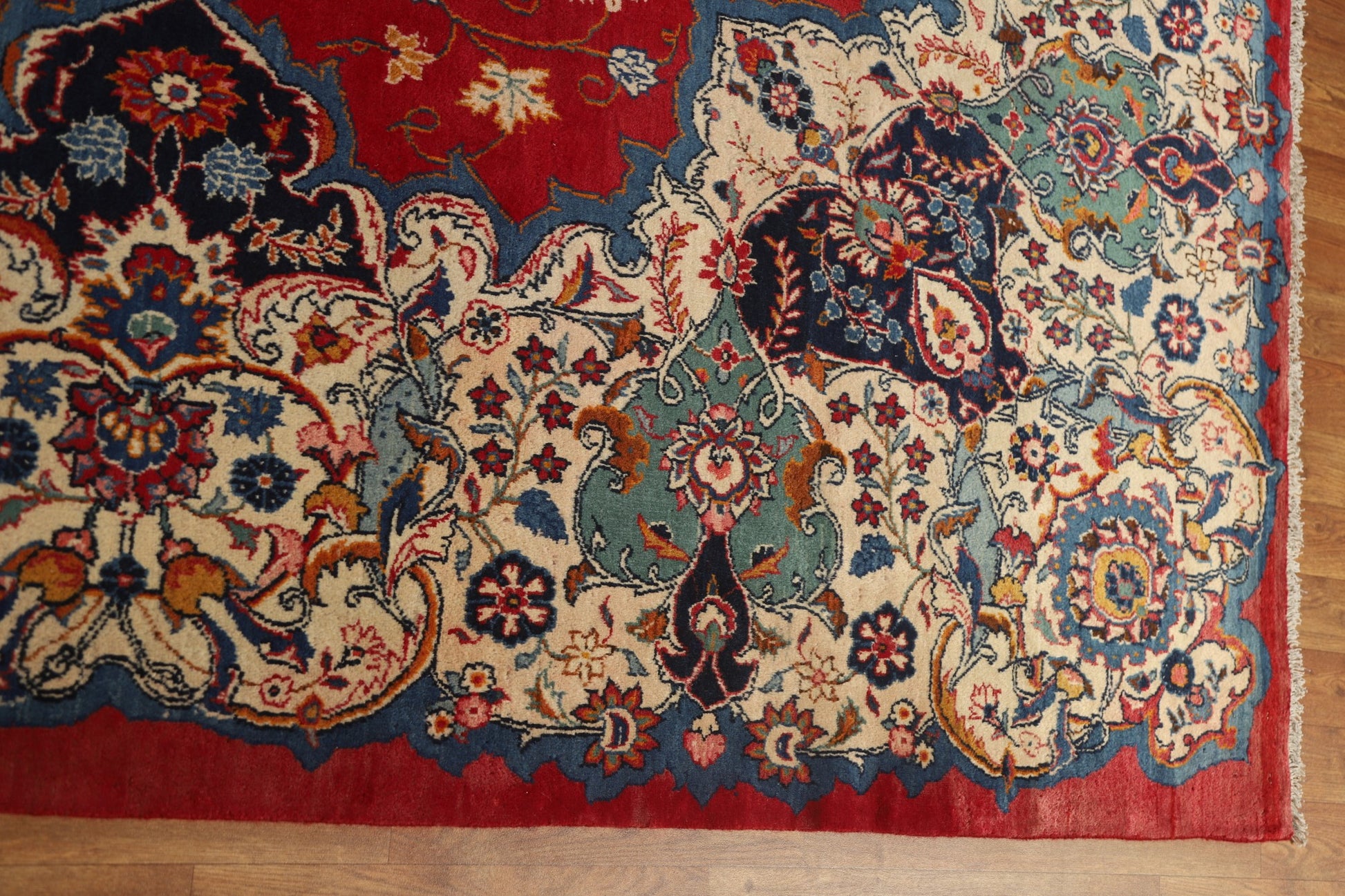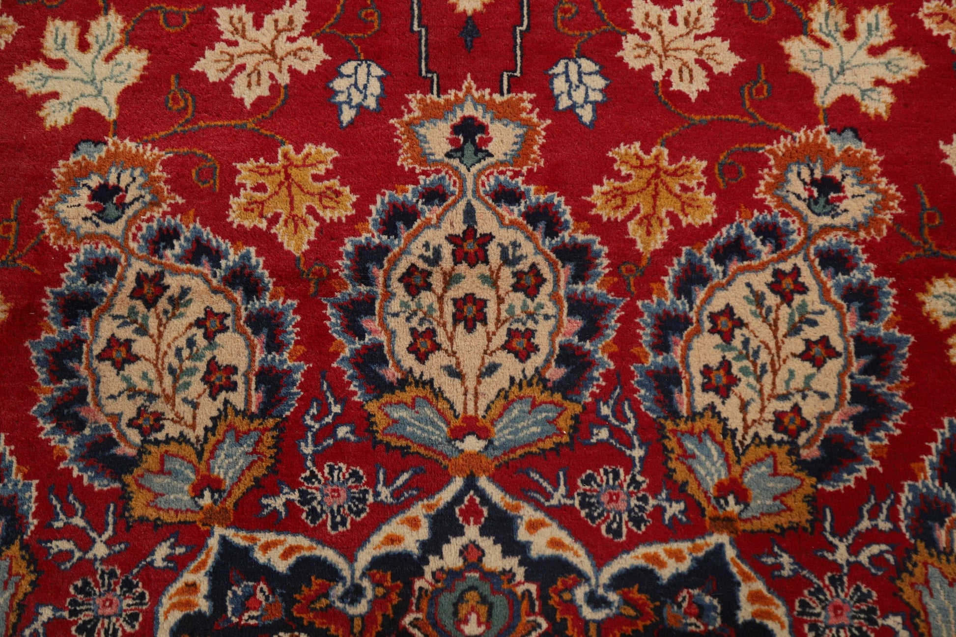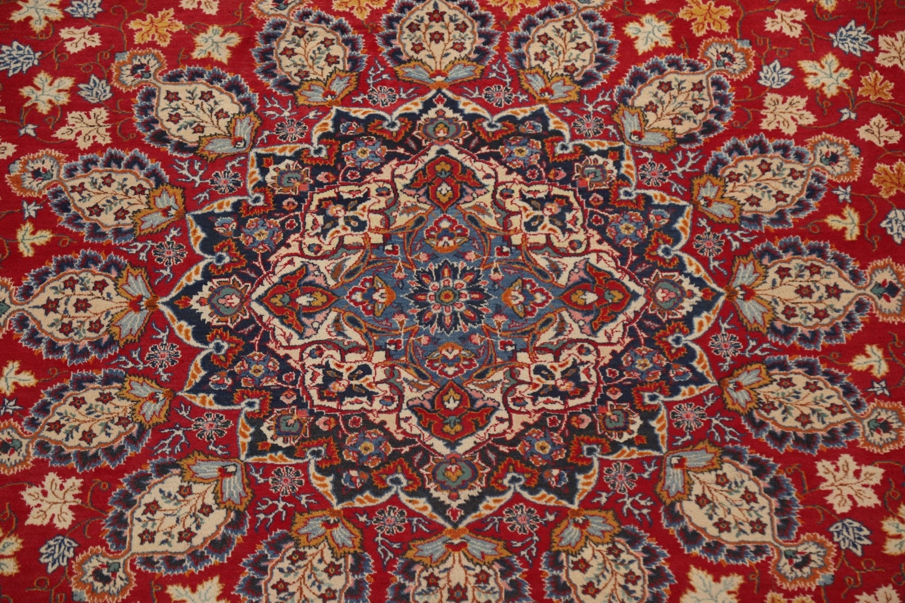 A Beautiful Genuine Persia ( Persia ) Isfahan rug is Hand Knotted by skillful weavers in Persia ( Persia ) with 100% Wool Material. This rug is in Very Good condition. dimensions are 15' 4'' X 10' 9'' in foot and 467 X 328 in centimeter. the primary color is Red.