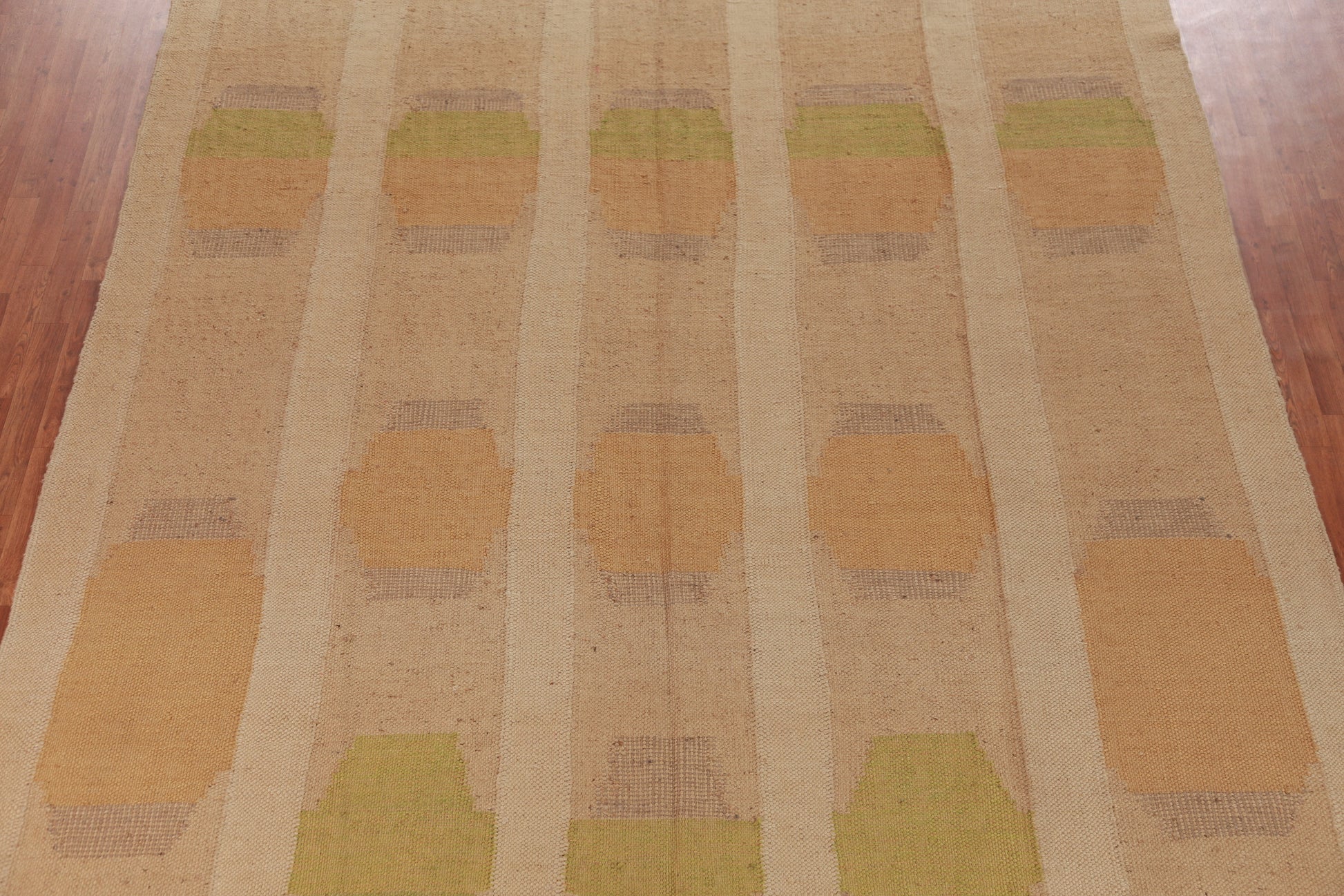 A Beautiful Genuine Turkey Kilim rug is Hand Woven by skillful weavers in Turkey with 100% Jute Material. This rug is in New, First Quality condition. dimensions are 14' 1'' X 9' 11'' in foot and 429 X 302 in centimeter. the primary color is Peach.