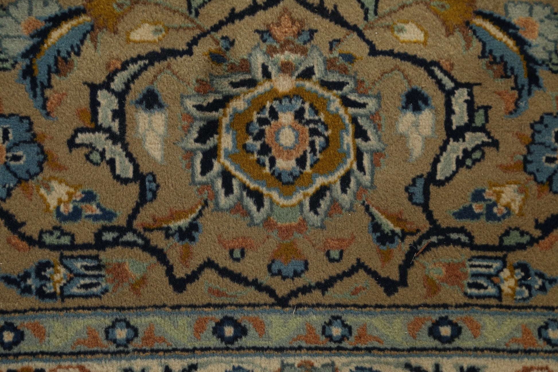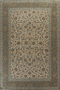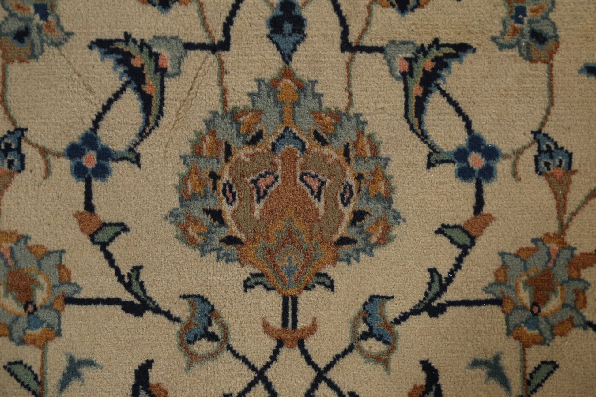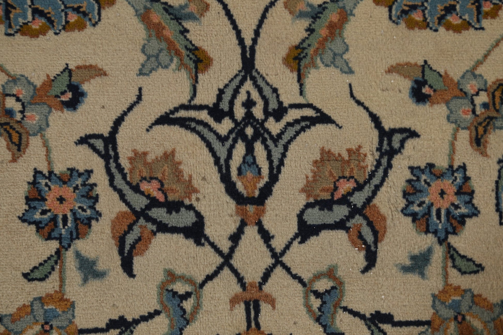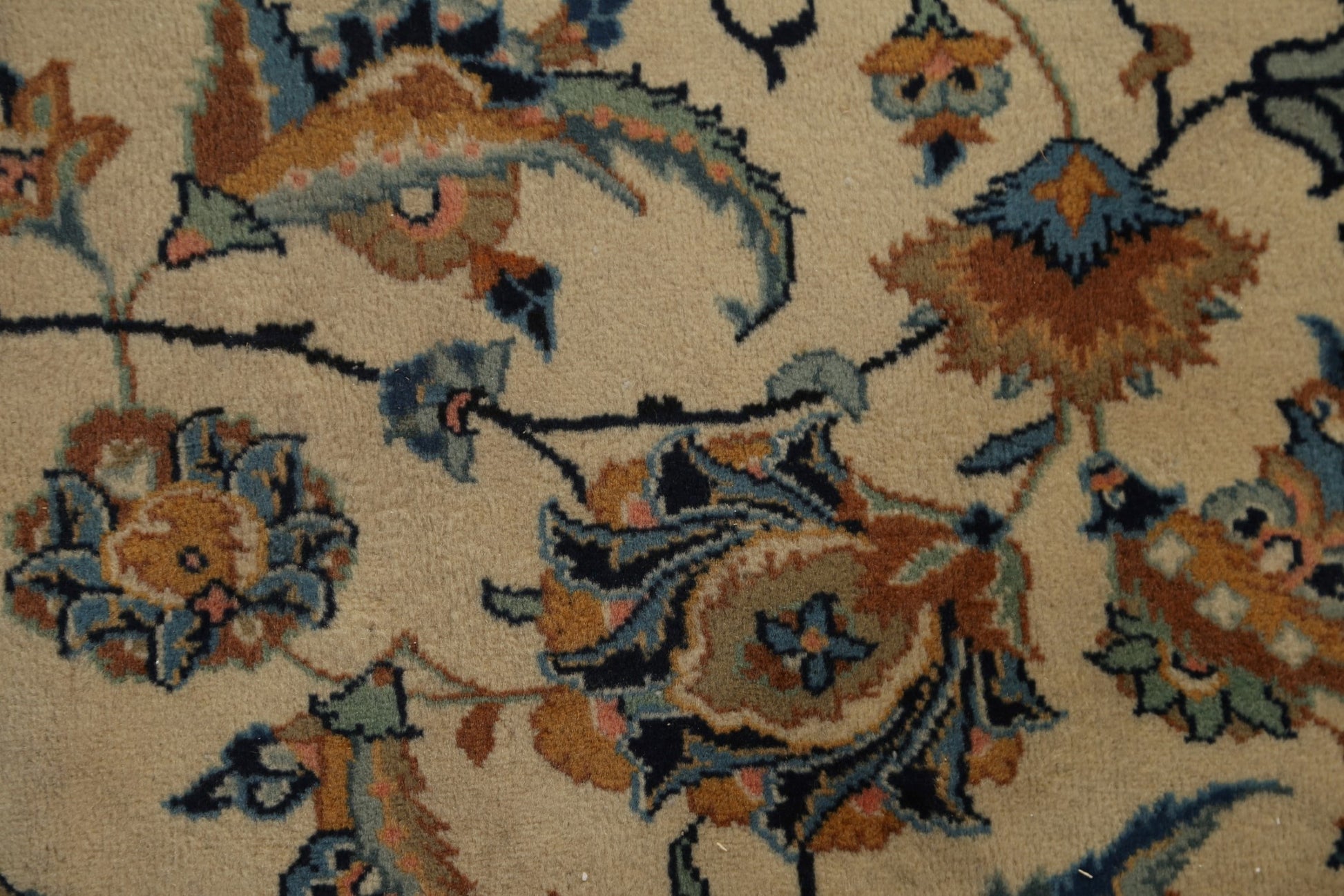 A Beautiful Genuine Persia ( Persia ) Kashan rug is Hand Knotted by skillful weavers in Persia ( Persia ) with 100% Wool Material. This rug is in Very Good condition. dimensions are 12' 2'' X 8' 11'' in foot and 371 X 272 in centimeter. the primary color is Beige & Ivories.