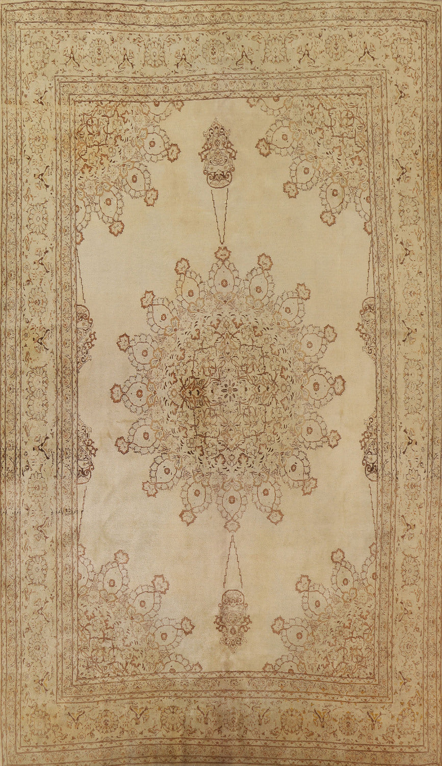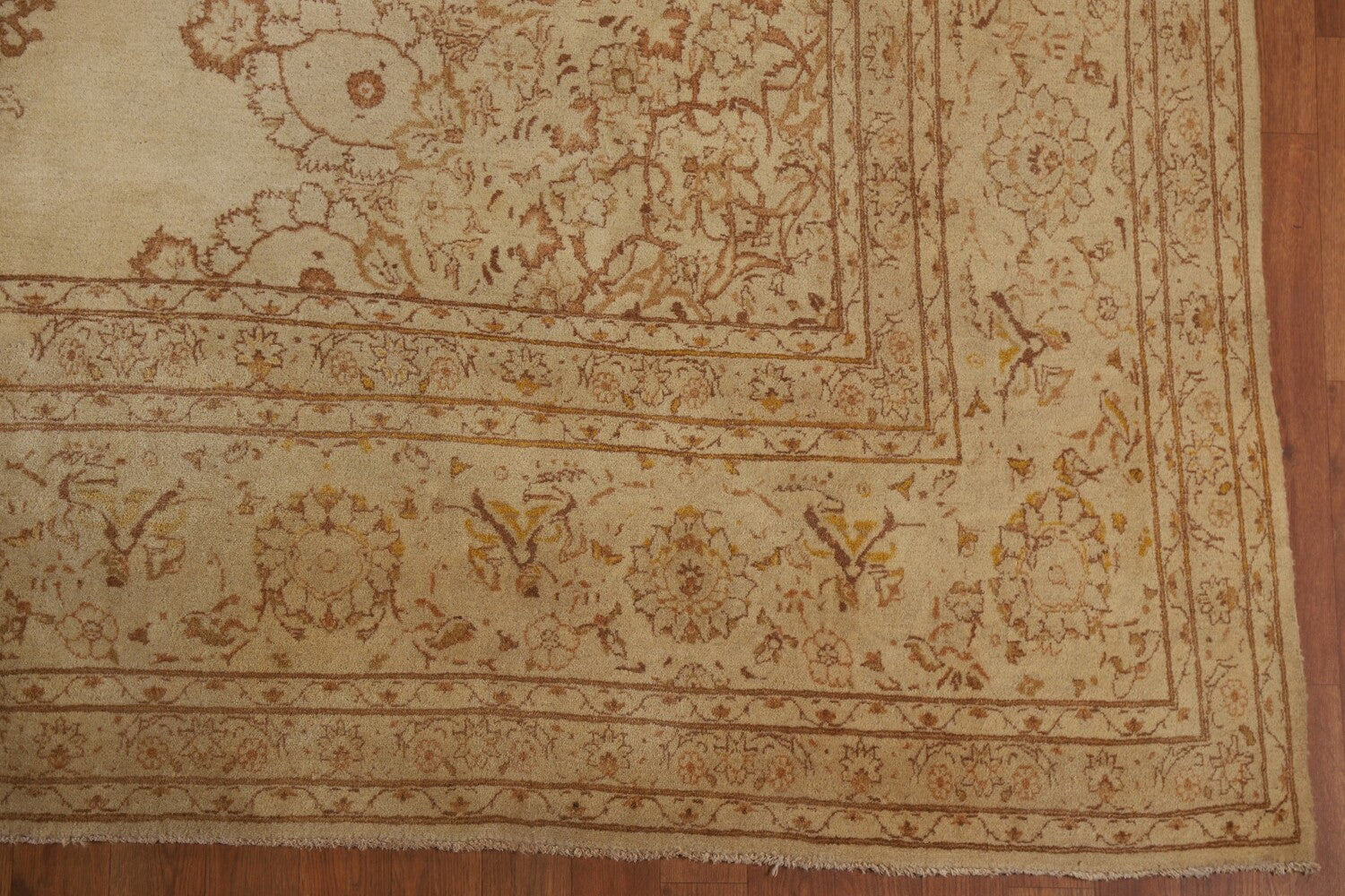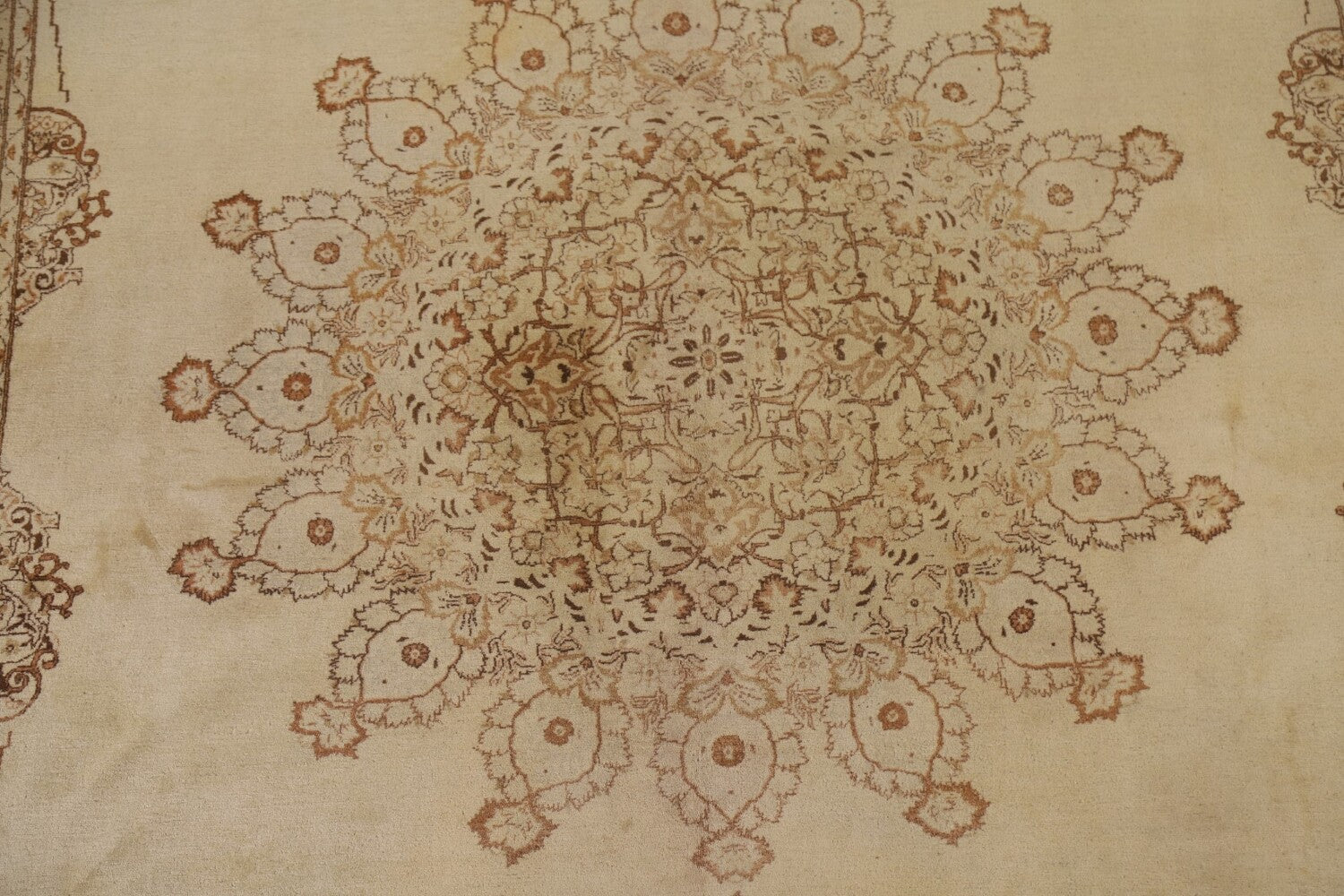 A Beautiful Genuine Persia ( Persia ) Kashan rug is Hand Knotted by skillful weavers in Persia ( Persia ) with 100% Wool Material. This rug is in Very Good condition. dimensions are 13' 4'' X 8' 11'' in foot and 406 X 272 in centimeter. the primary color is Yellow & Gold.