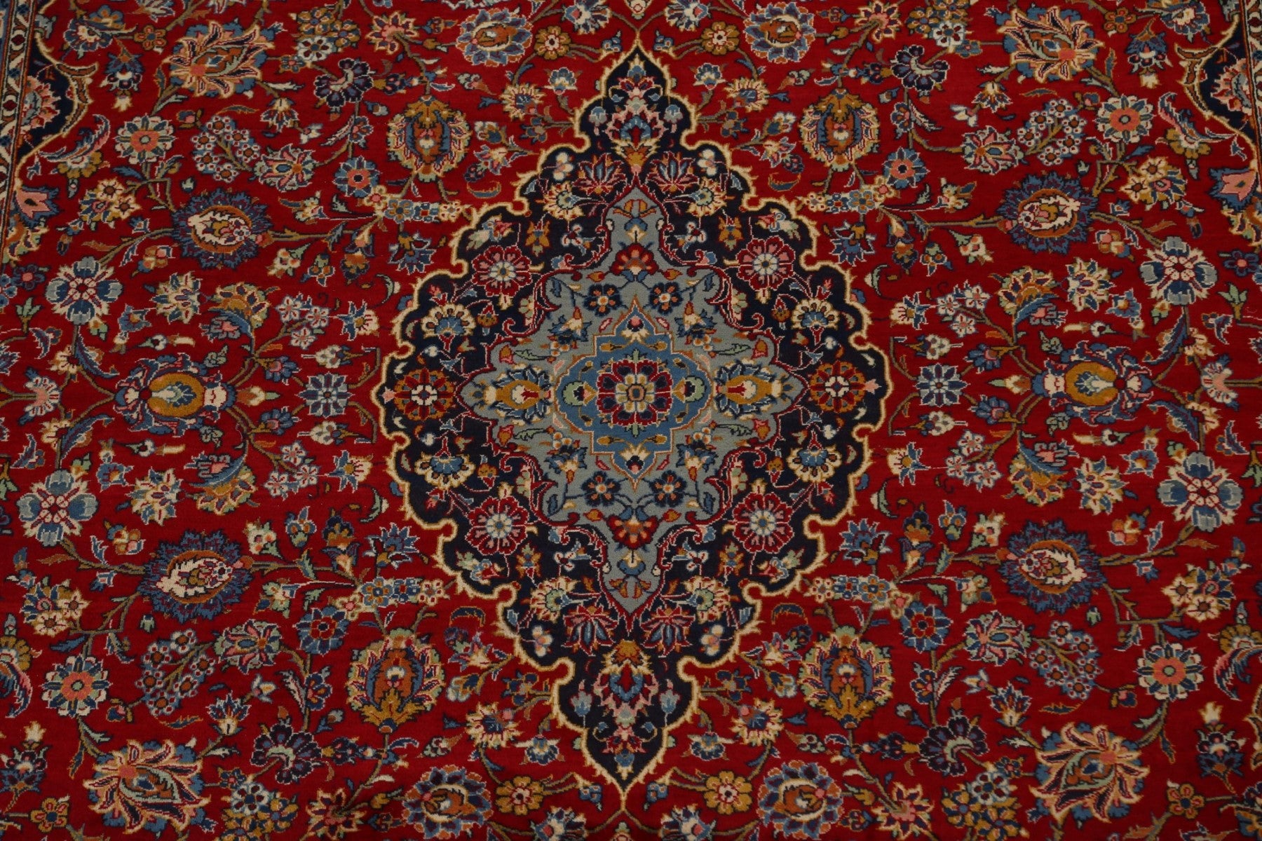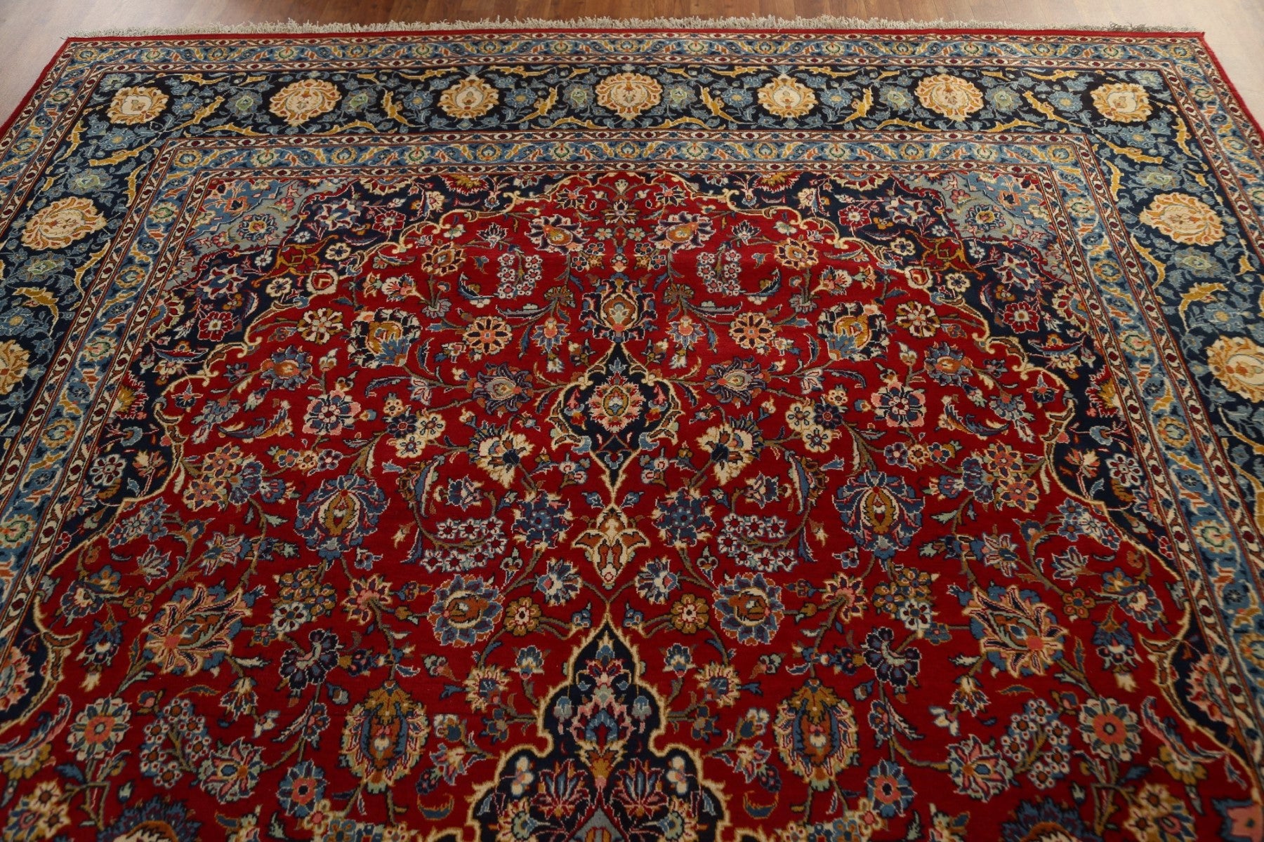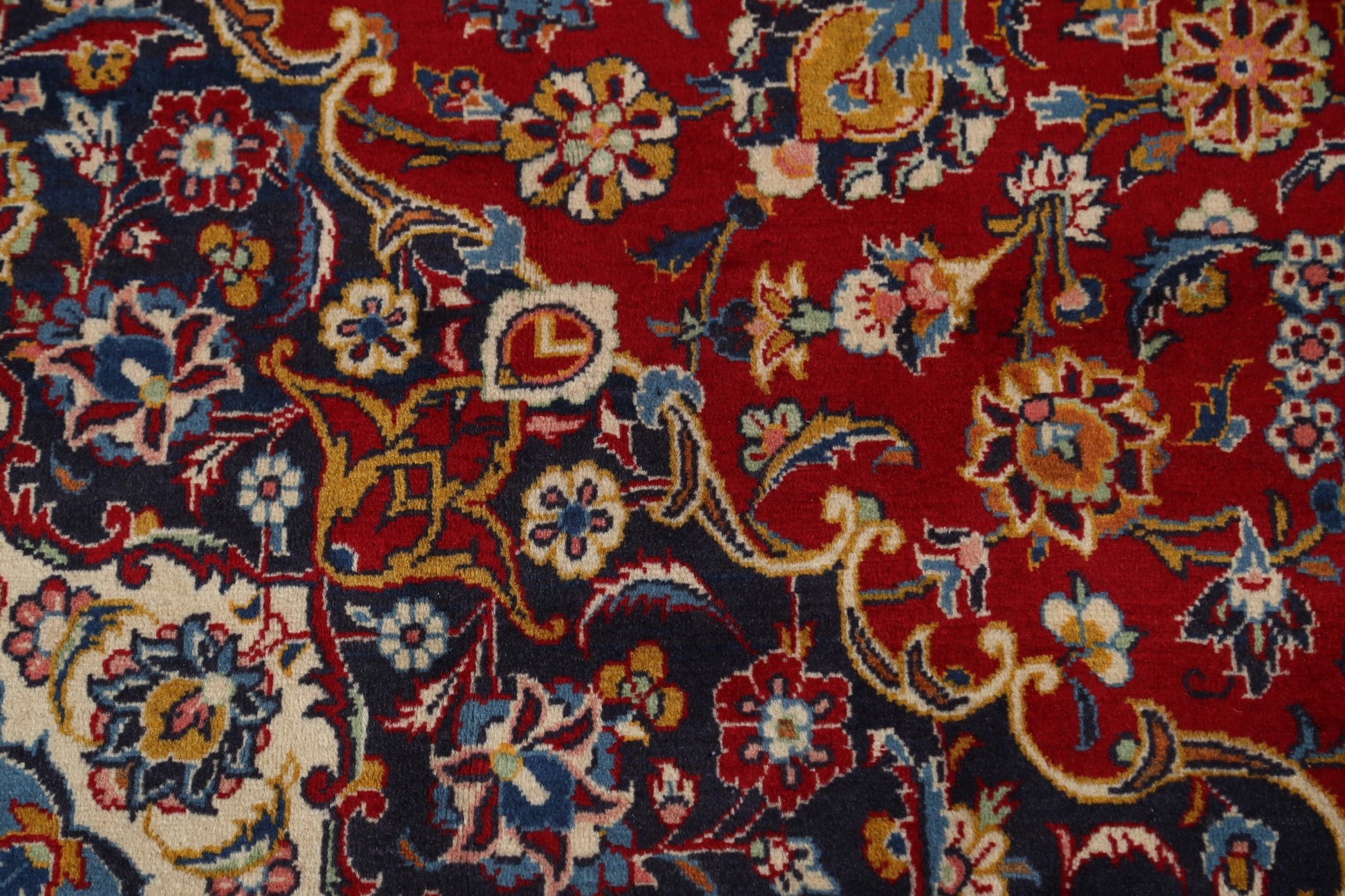 A Beautiful Genuine Persia ( Persia ) Kashan rug is Hand Knotted by skillful weavers in Persia ( Persia ) with 100% Wool Material. This rug is in Excellent condition. dimensions are 13' 10'' X 8' 9'' in foot and 422 X 267 in centimeter. the primary color is Red.
