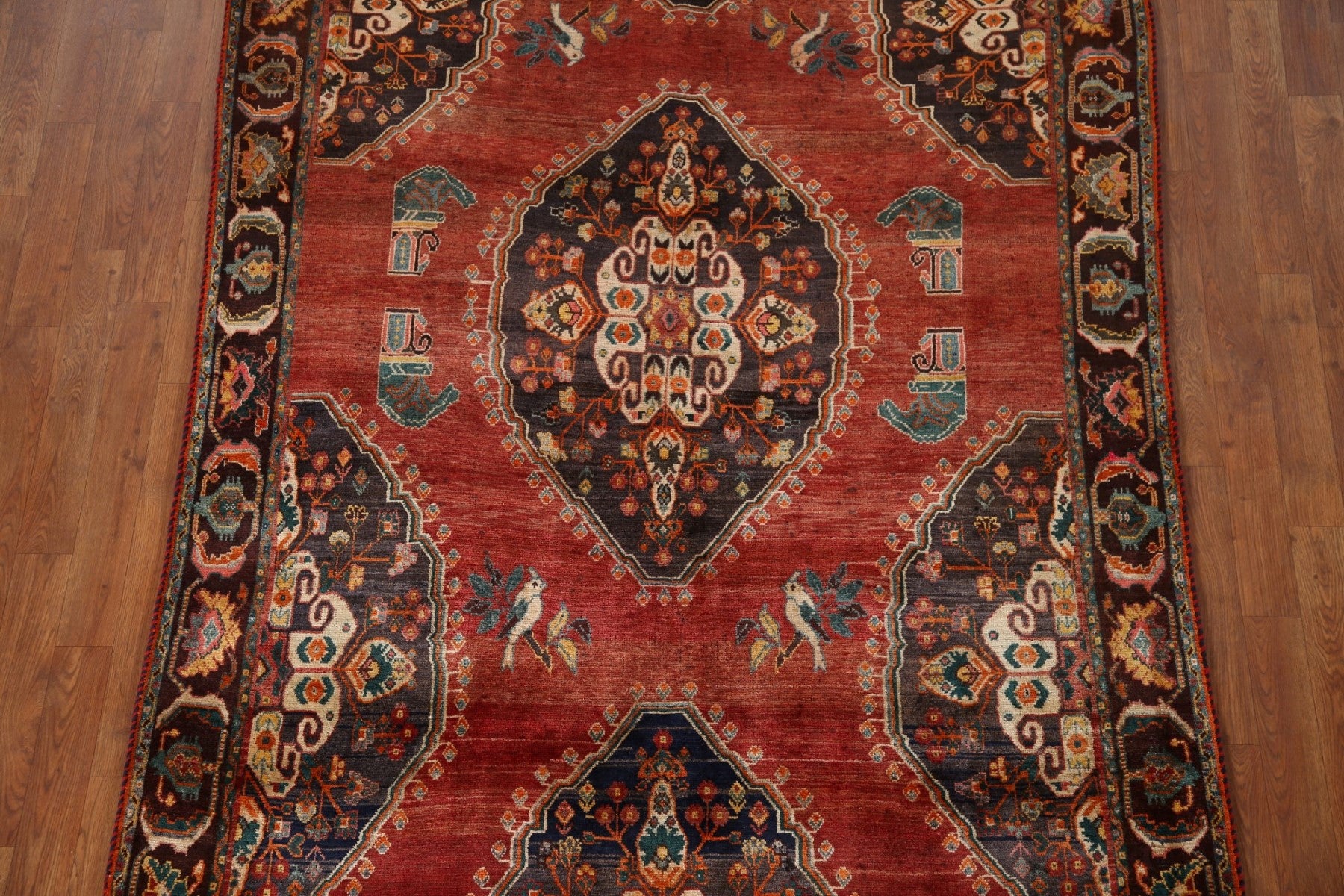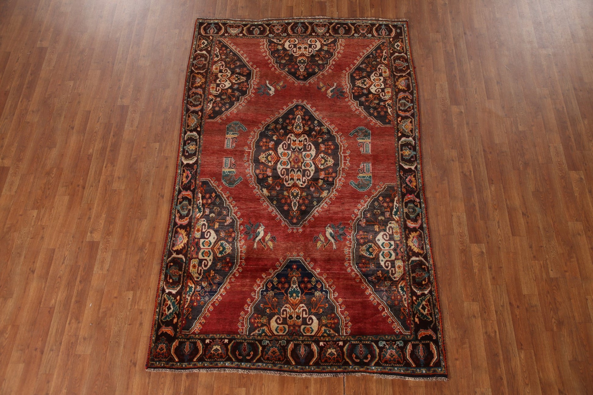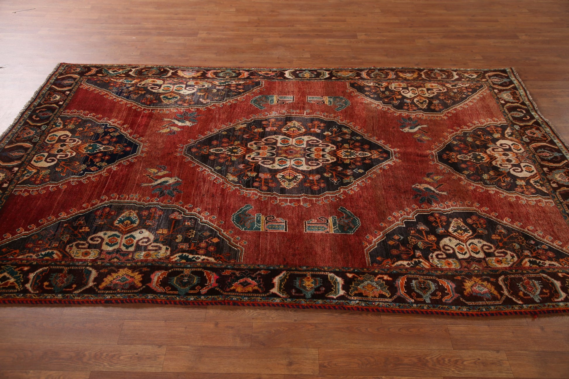 A Beautiful Genuine Persia ( Persia ) Kashkoli rug is Hand Knotted by skillful weavers in Persia ( Persia ) with 100% Wool Material. This rug is in Very Good (Low Pile-Abrash) condition. dimensions are 8' 4'' X 5' 2'' in foot and 254 X 157 in centimeter. the primary color is Red.