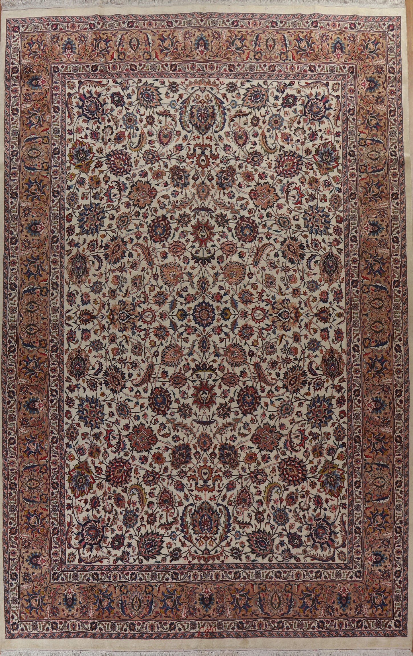 A Beautiful Genuine Persia ( Persia ) Kashmar rug is Hand Knotted by skillful weavers in Persia ( Persia ) with 100% Wool Material. This rug is in Very Good condition. dimensions are 15' 10'' X 11' 4'' in foot and 483 X 345 in centimeter. the primary color is Beige & Ivories.