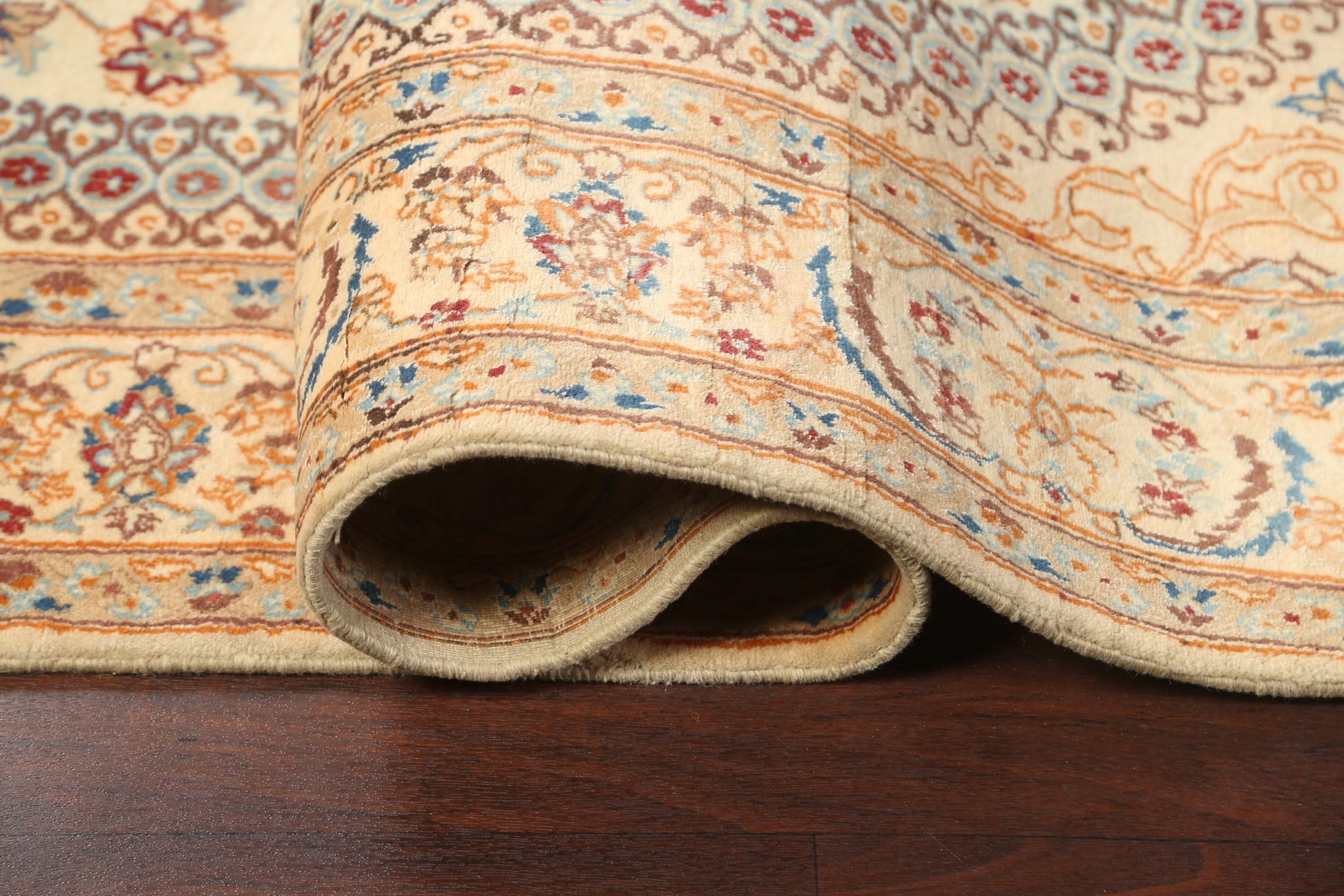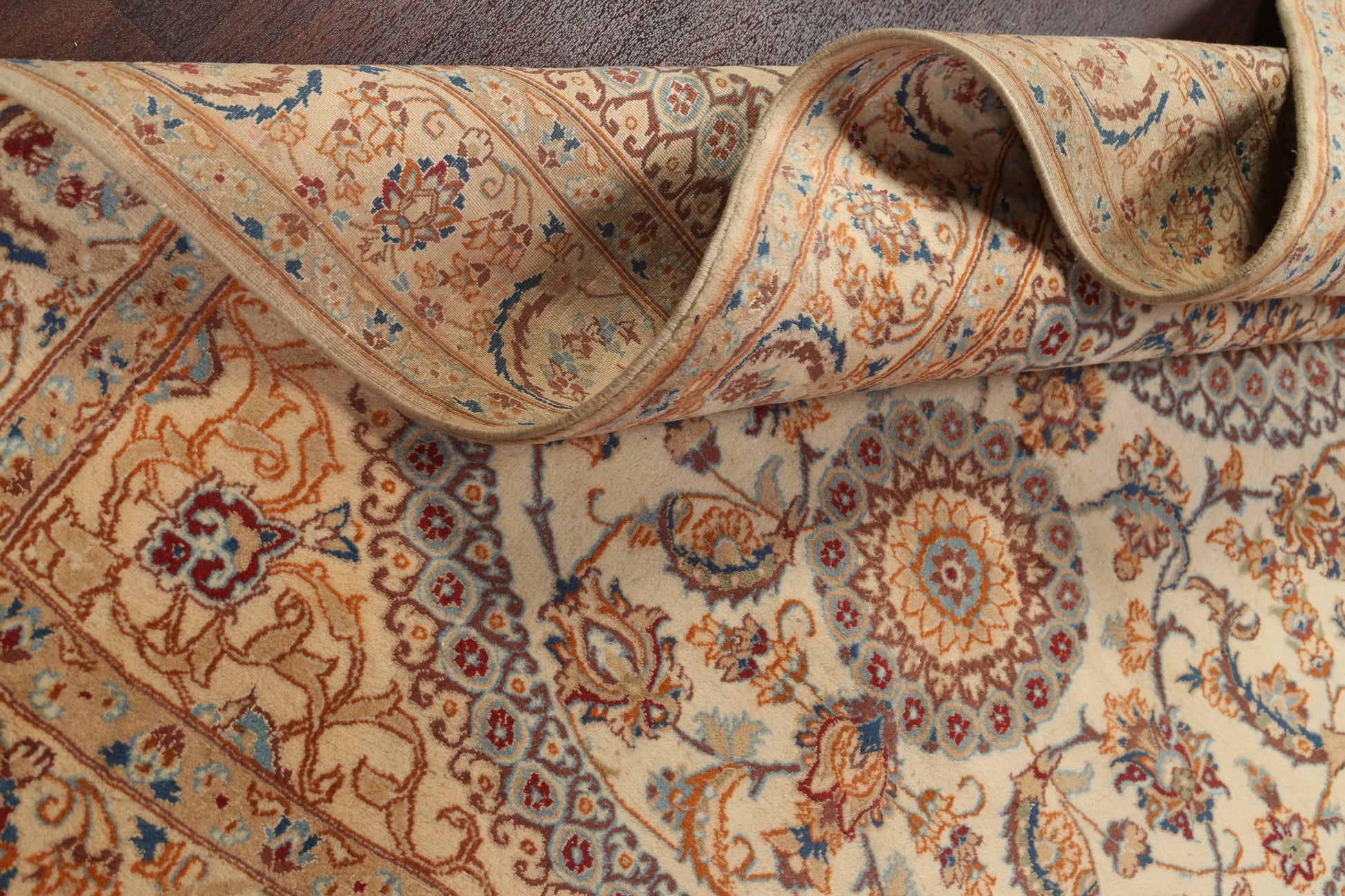 A Beautiful Genuine Persia ( Persia ) Kashmar rug is Hand Knotted by skillful weavers in Persia ( Persia ) with 100% Wool Material. This rug is in Very Good condition. dimensions are 9' 7'' X 6' 4'' in foot and 292 X 193 in centimeter. the primary color is Beige & Ivories.