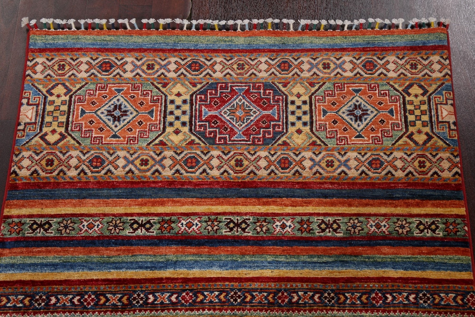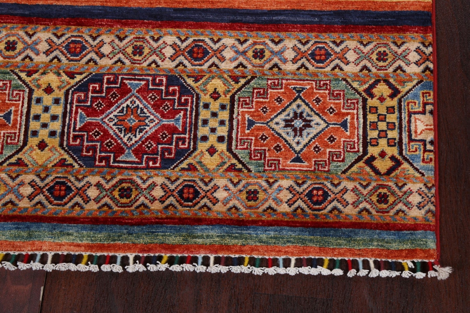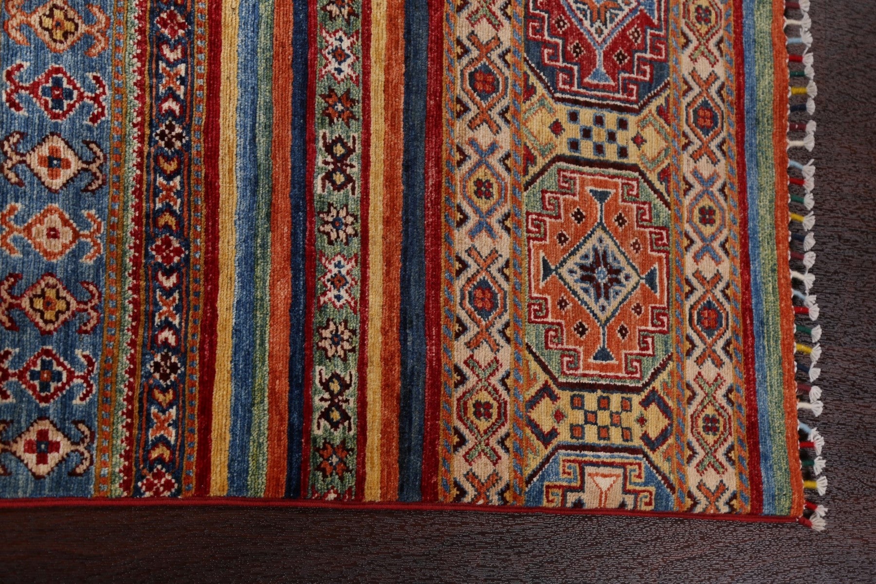 A Beautiful Genuine Pakistan Kazak rug is Hand Knotted by skillful weavers in Pakistan with 100% Wool Material. This rug is in New, First Quality condition. dimensions are 4' 10'' X 3' 4'' in foot and 147 X 102 in centimeter. the primary color is Multi-Colored.