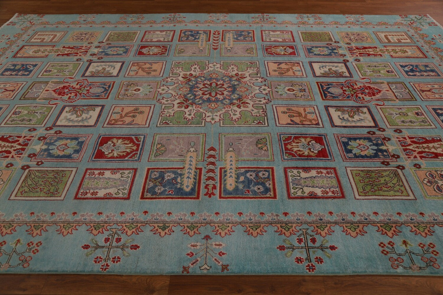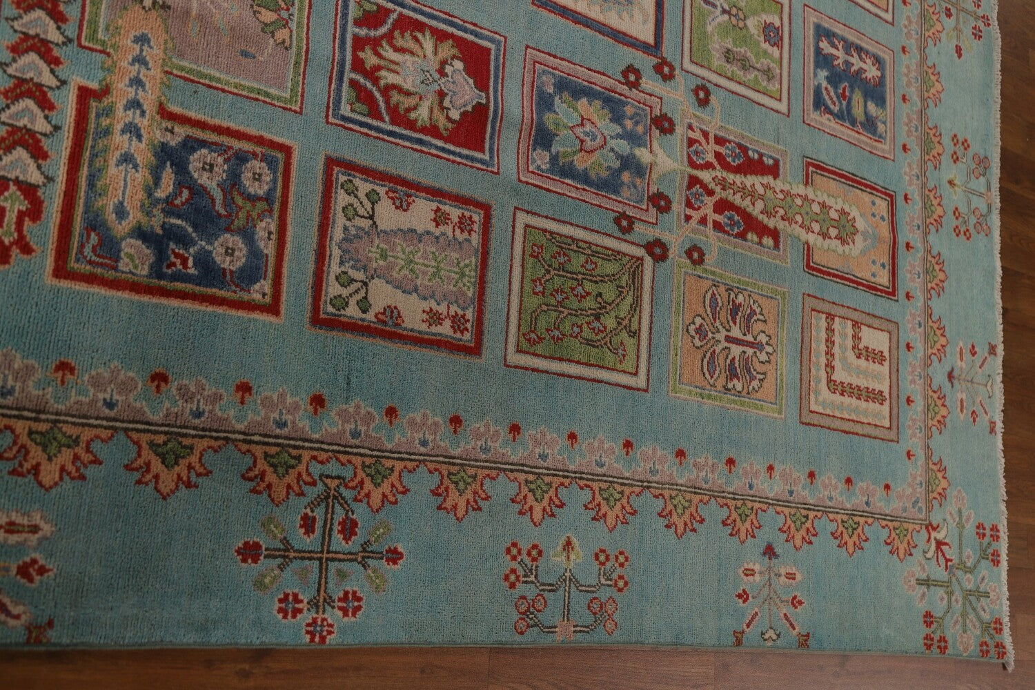 A Beautiful Genuine Pakistan Kazak rug is Hand Knotted by skillful weavers in Pakistan with 100% Wool Material. This rug is in condition. dimensions are 11' 10'' X 8' 1'' in foot and 361 X 246 in centimeter. the primary color is Navy Blue & Blues.