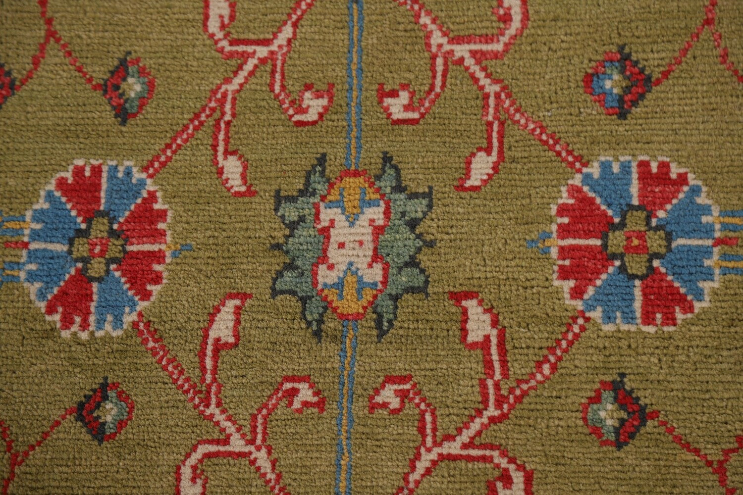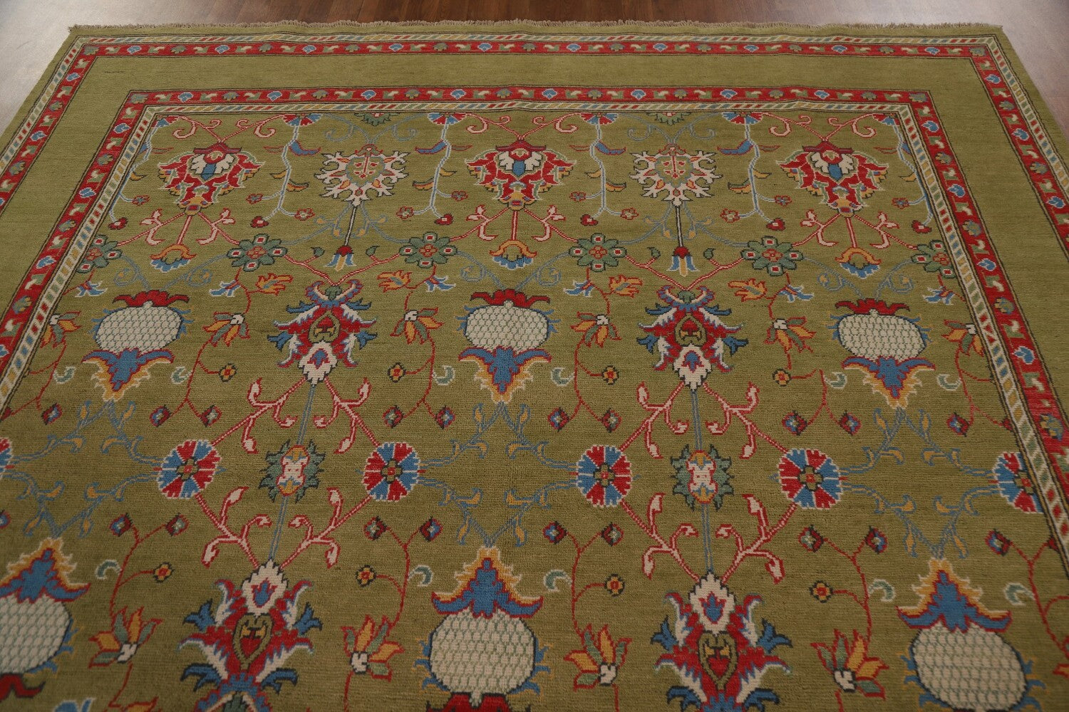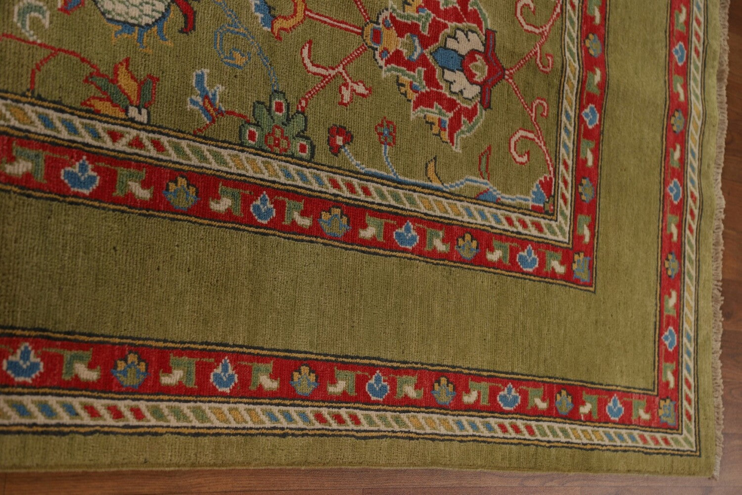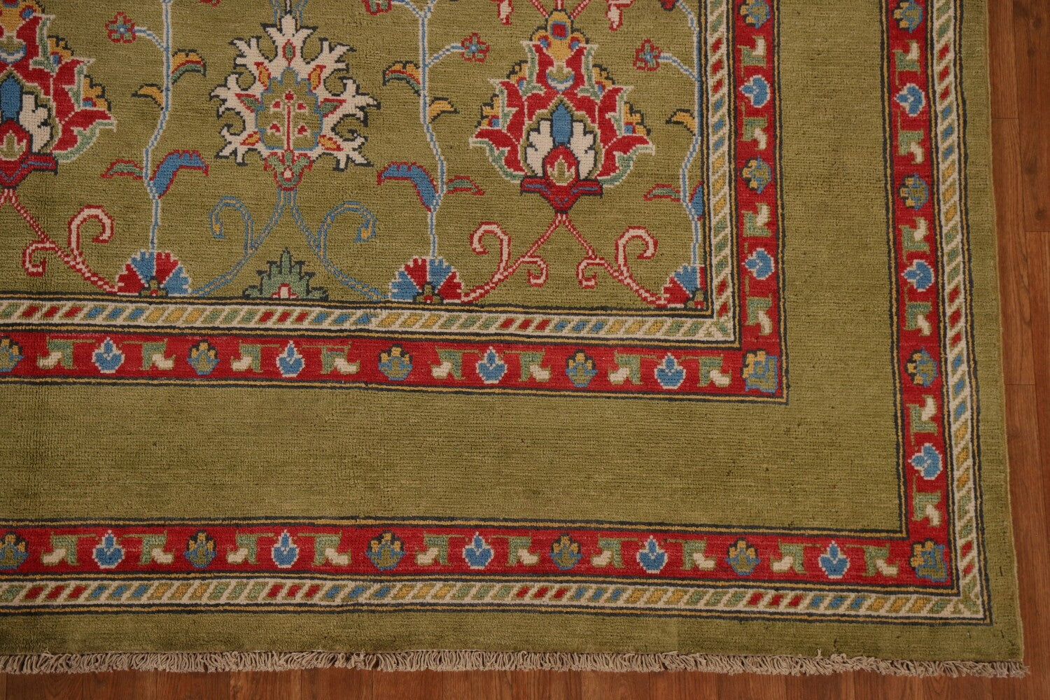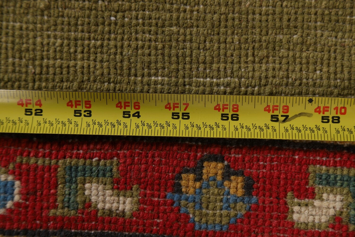 A Beautiful Genuine Pakistan Kazak rug is Hand Knotted by skillful weavers in Pakistan with 100% Wool Material. This rug is in condition. dimensions are 9' 3'' X 8' 1'' in foot and 282 X 246 in centimeter. the primary color is Green.