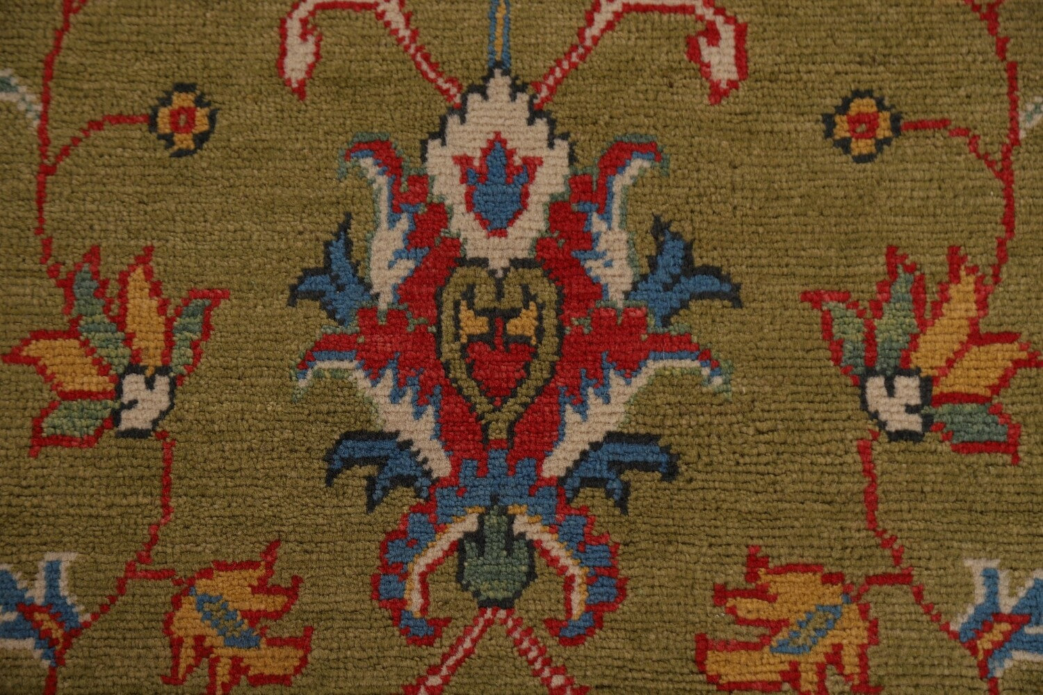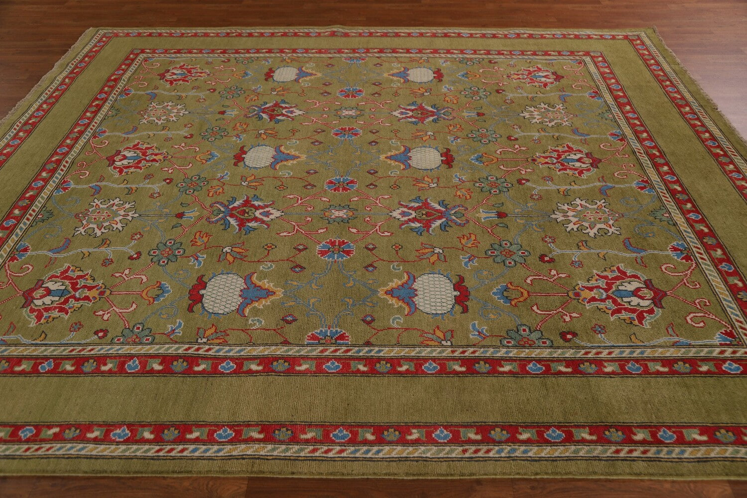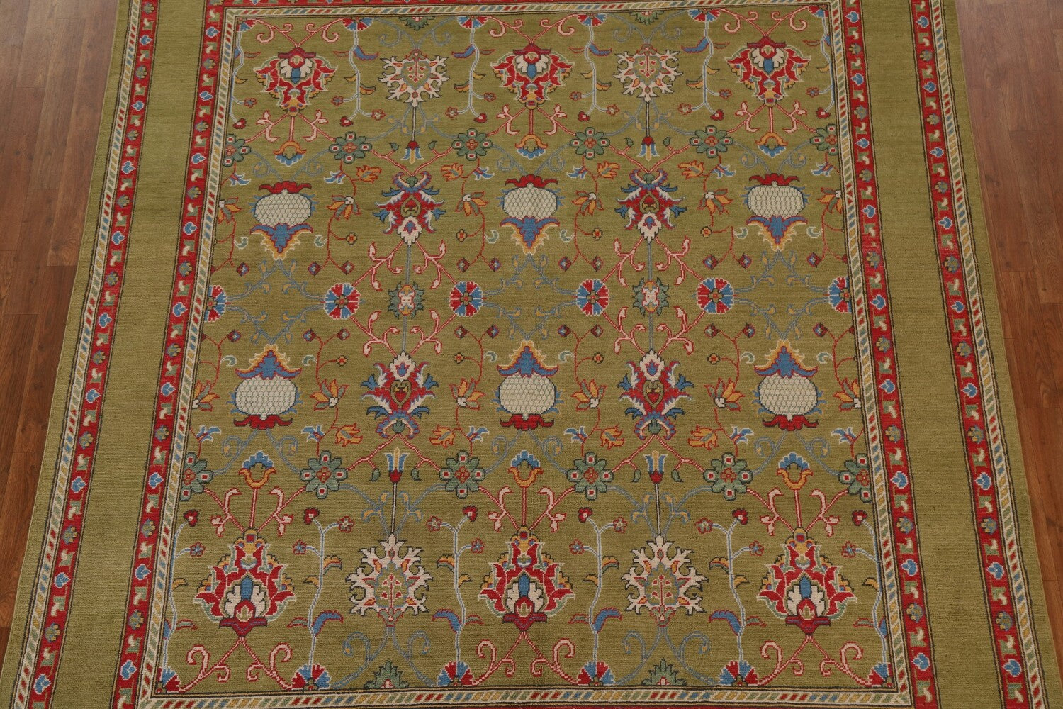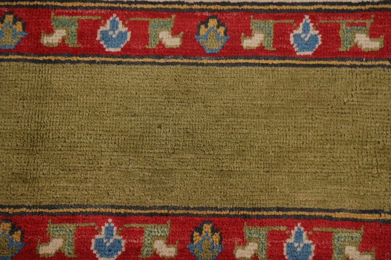 A Beautiful Genuine Pakistan Kazak rug is Hand Knotted by skillful weavers in Pakistan with 100% Wool Material. This rug is in condition. dimensions are 9' 3'' X 8' 1'' in foot and 282 X 246 in centimeter. the primary color is Green.