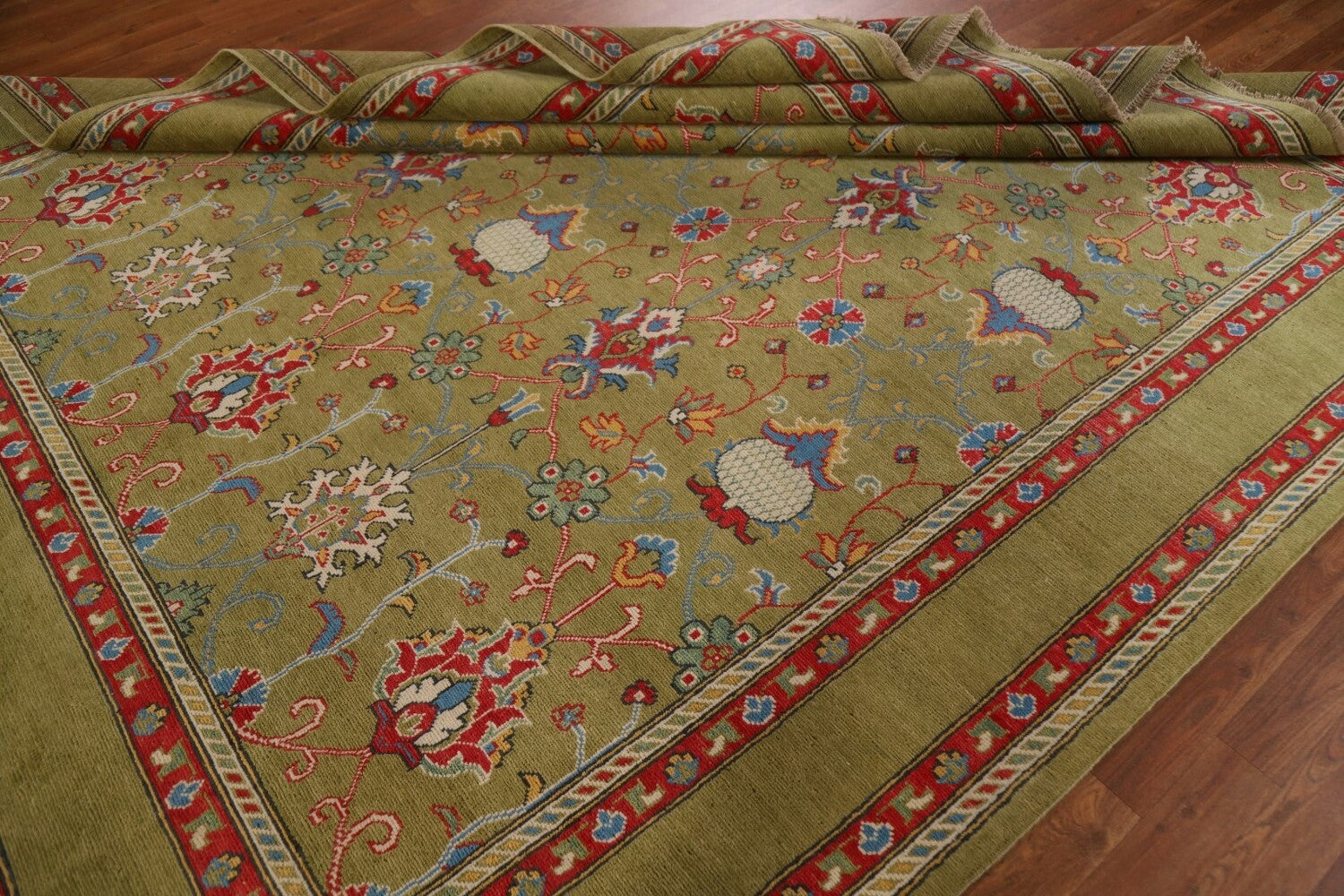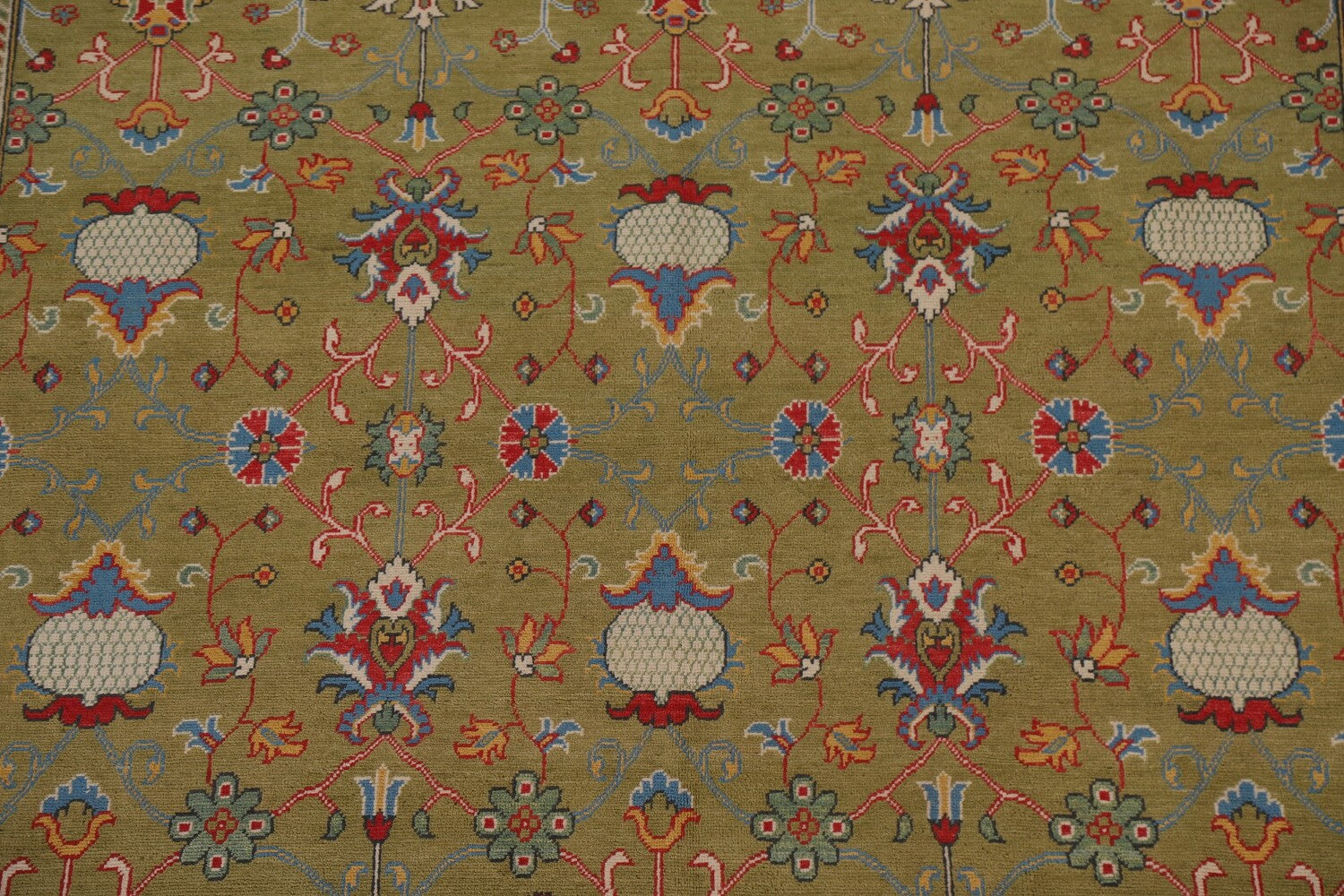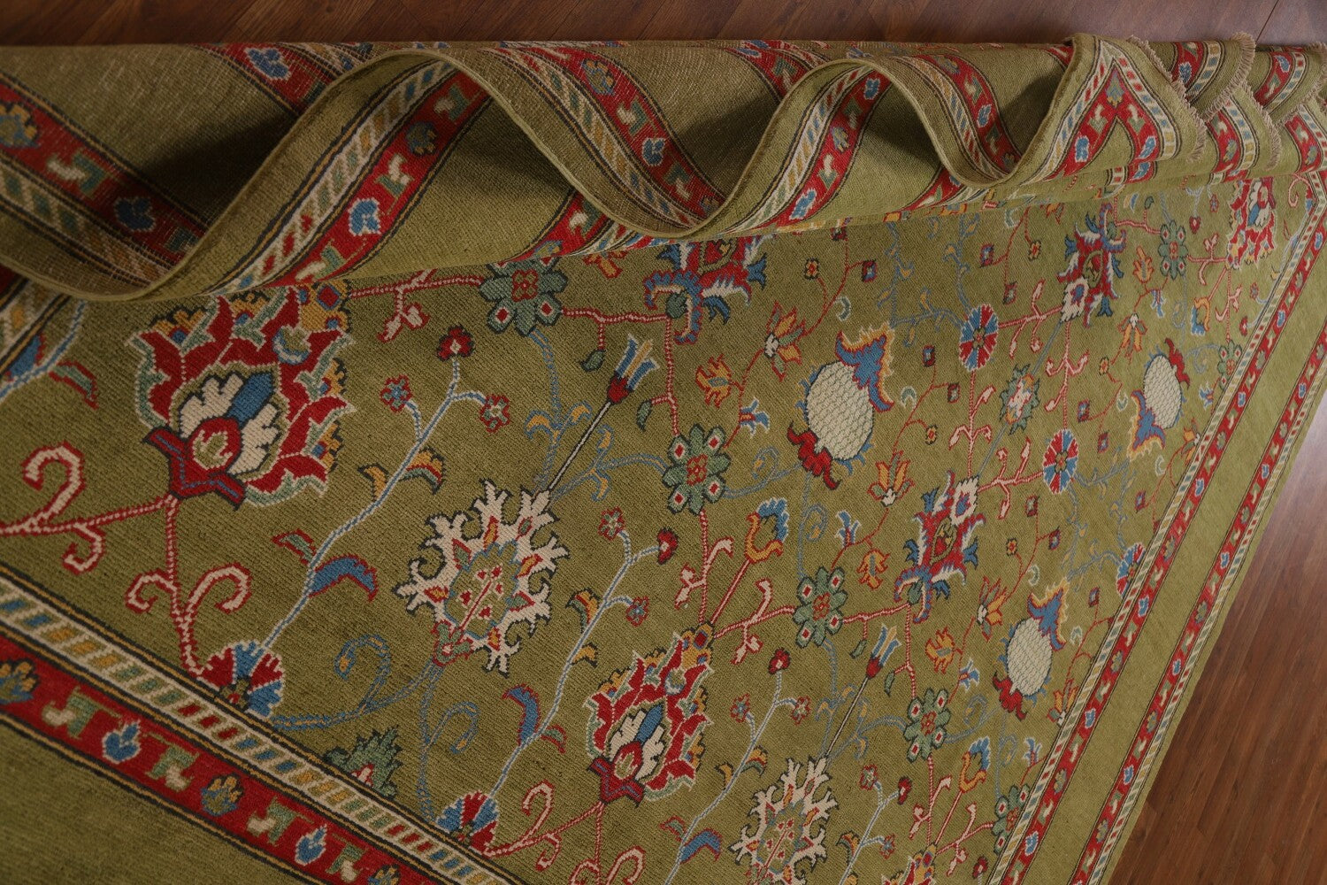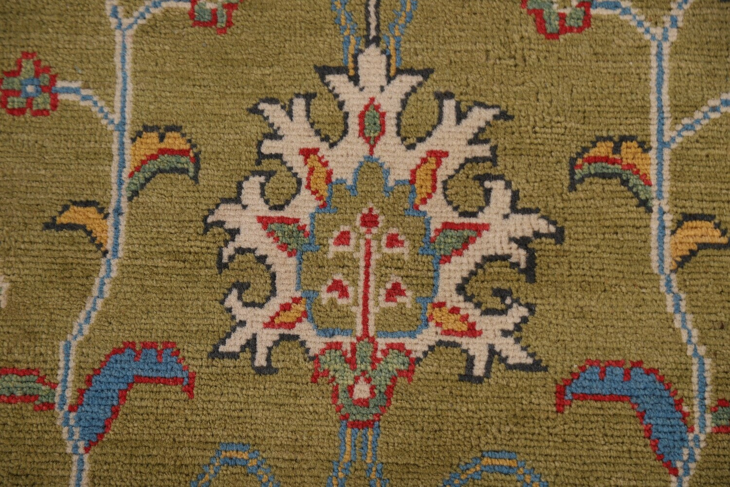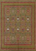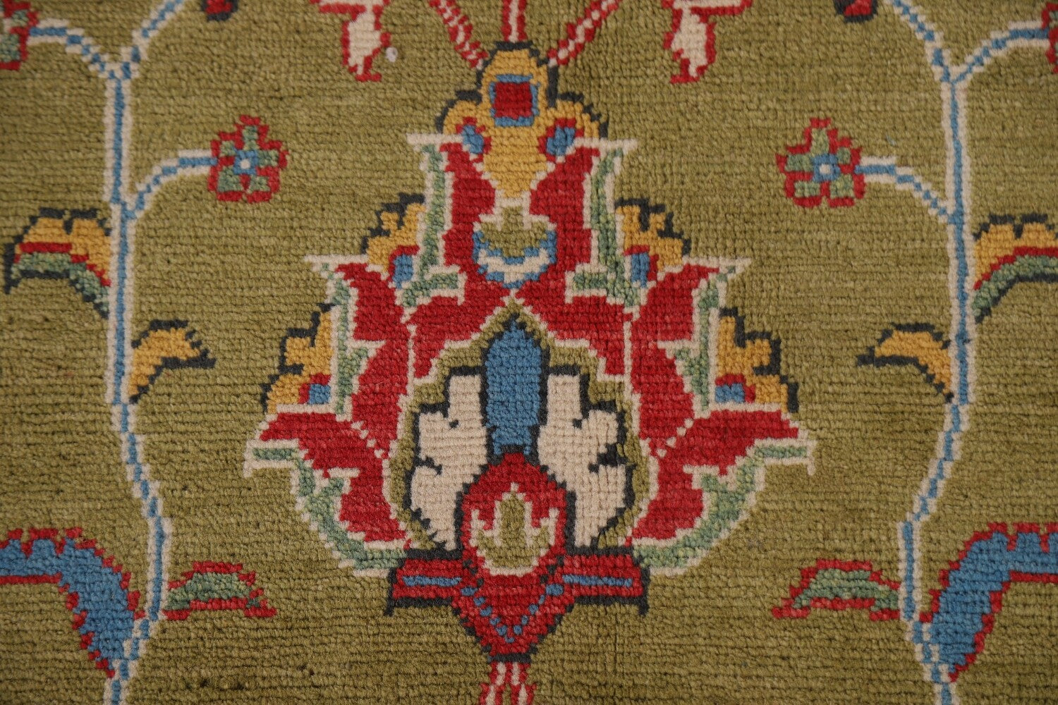 A Beautiful Genuine Pakistan Kazak rug is Hand Knotted by skillful weavers in Pakistan with 100% Wool Material. This rug is in condition. dimensions are 9' 3'' X 8' 1'' in foot and 282 X 246 in centimeter. the primary color is Green.