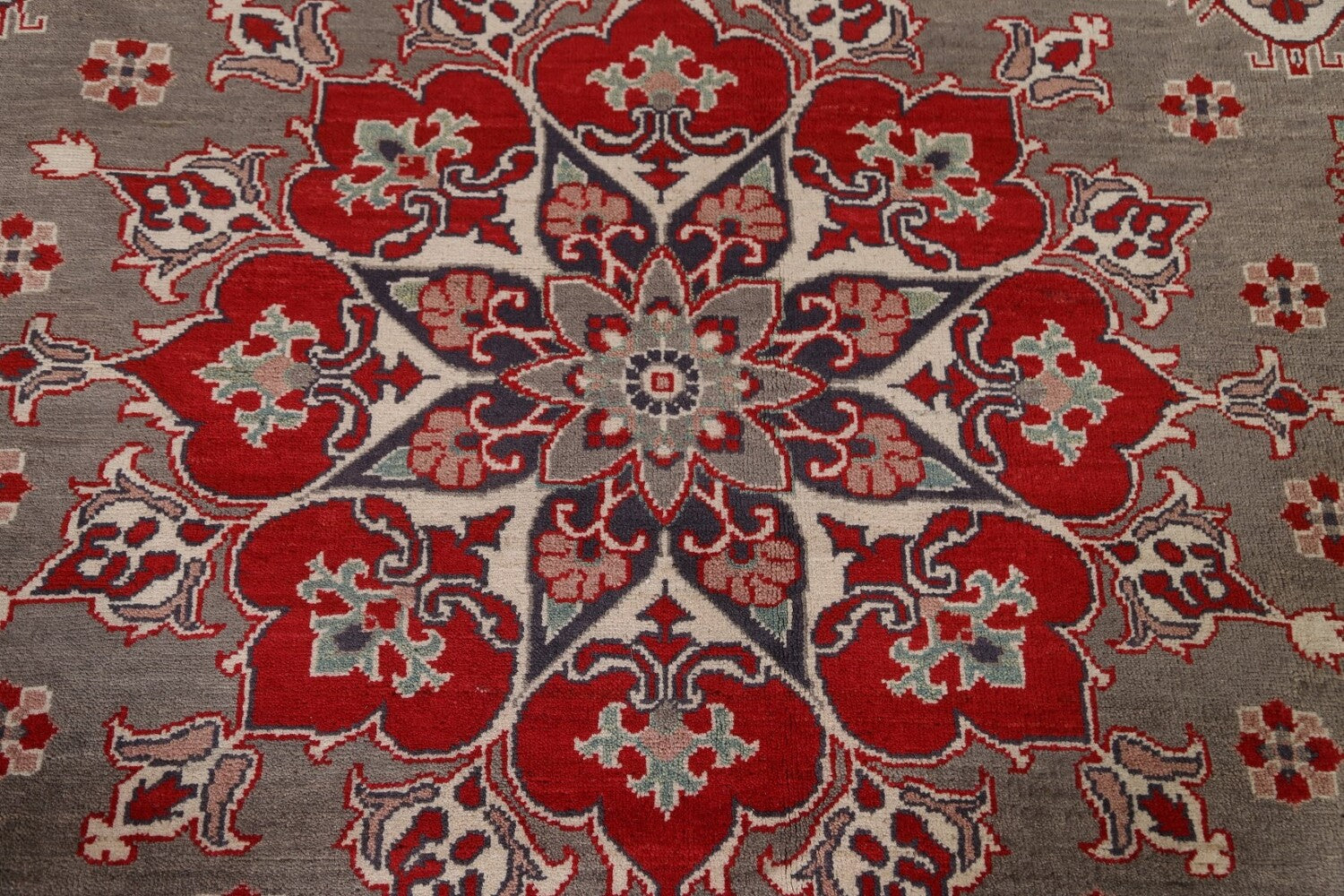 A Beautiful Genuine Pakistan Kazak rug is Hand Knotted by skillful weavers in Pakistan with 100% Wool Material. This rug is in New, First Quality condition. dimensions are 11' 7'' X 8' 7'' in foot and 353 X 262 in centimeter. the primary color is Brown.