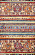 A Beautiful Genuine Pakistan Kazak rug is Hand Knotted by skillful weavers in Pakistan with 100% Wool Material. This rug is in New, First Quality condition. dimensions are 4' 9'' X 3' 5'' in foot and 145 X 104 in centimeter. the primary color is Multi-Colored.