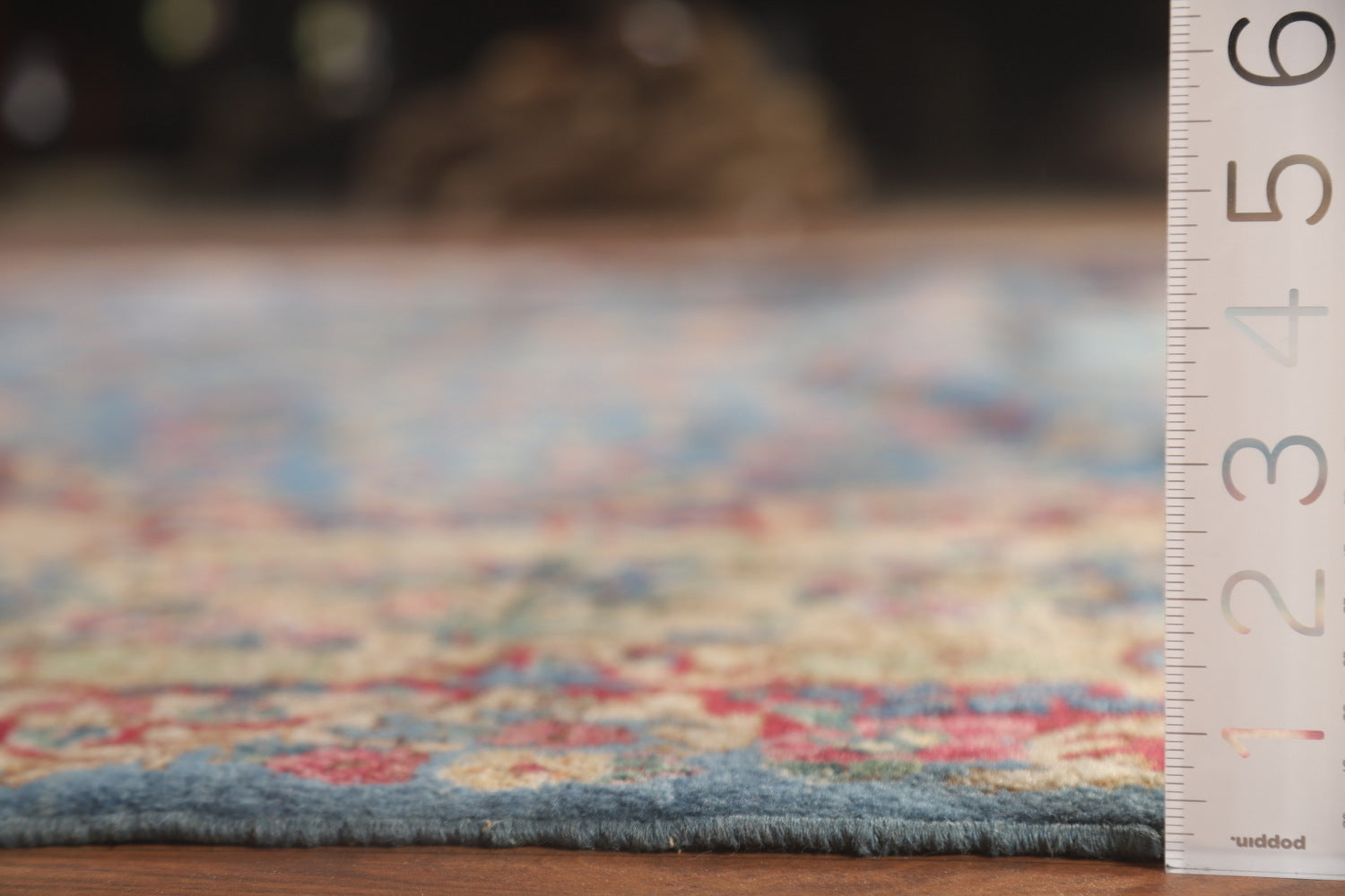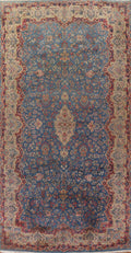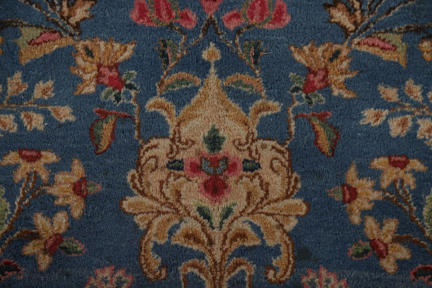 A Beautiful Genuine Persia ( Persia ) Kerman rug is Hand Knotted by skillful weavers in Persia ( Persia ) with 100% Wool Material. This rug is in Very Good condition. dimensions are 17' 6'' X 9' 8'' in foot and 533 X 295 in centimeter. the primary color is Navy Blue & Blues.