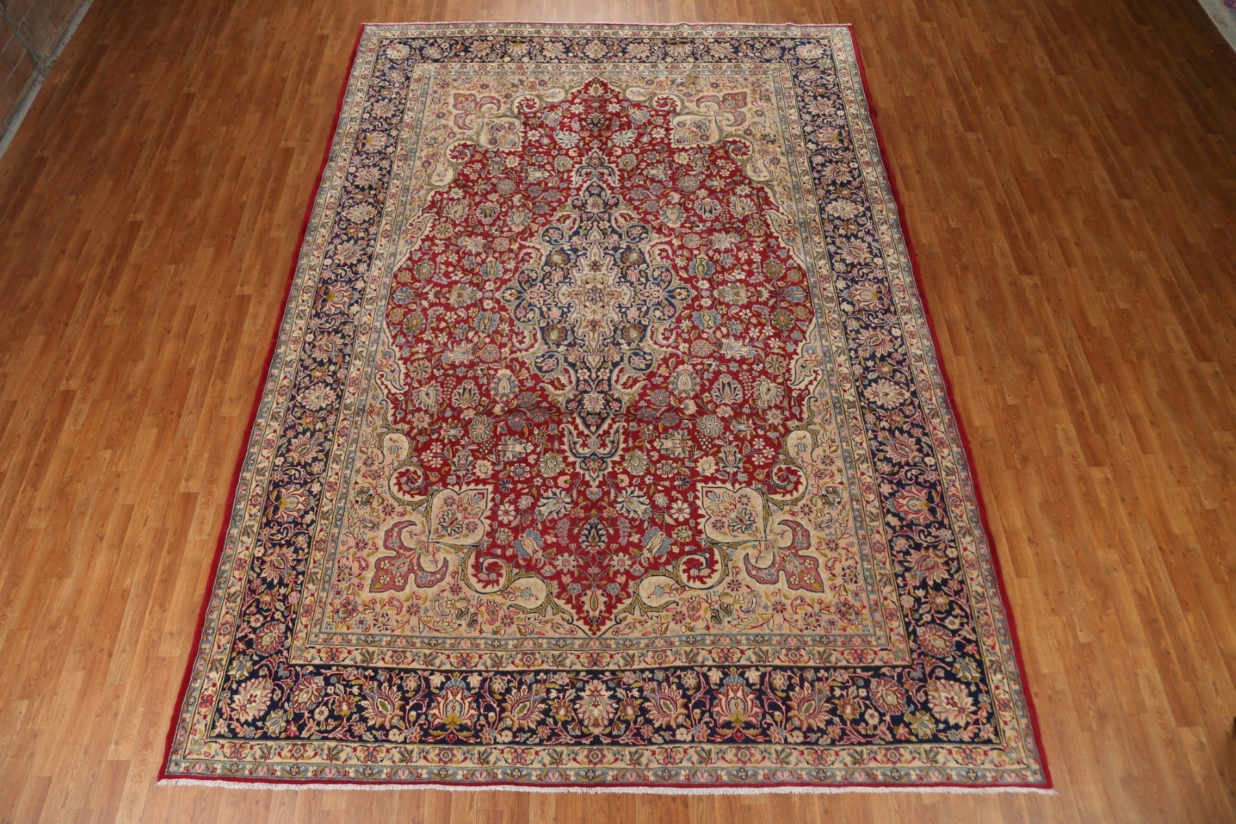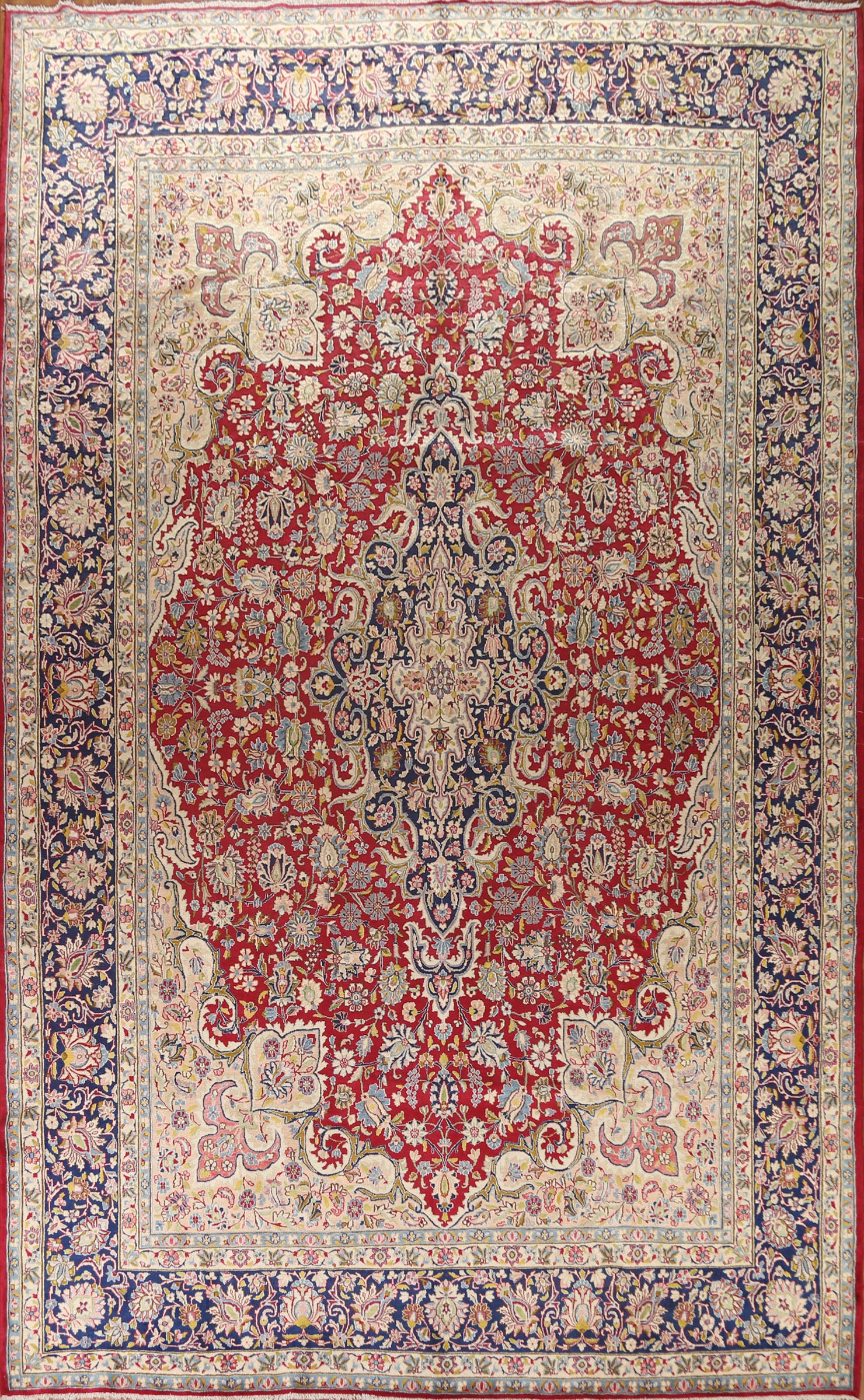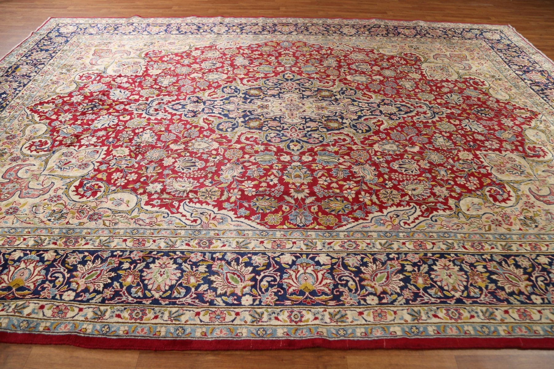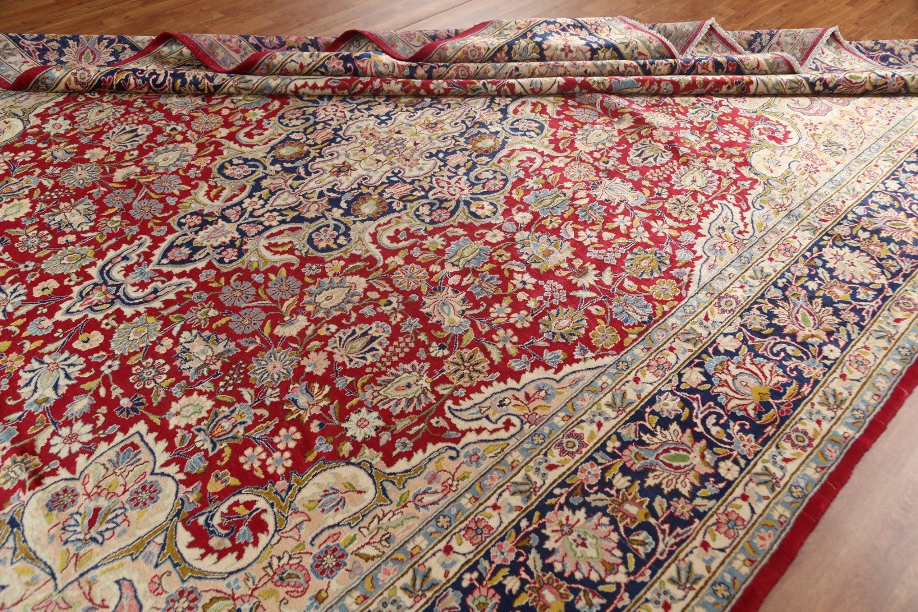 A Beautiful Genuine Persia ( Persia ) Kerman rug is Hand Knotted by skillful weavers in Persia ( Persia ) with 100% Wool Material. This rug is in Very Good condition. dimensions are 13' 6'' X 9' 6'' in foot and 411 X 290 in centimeter. the primary color is Red.