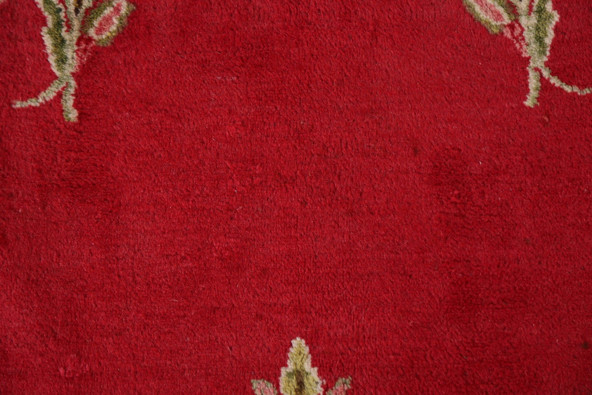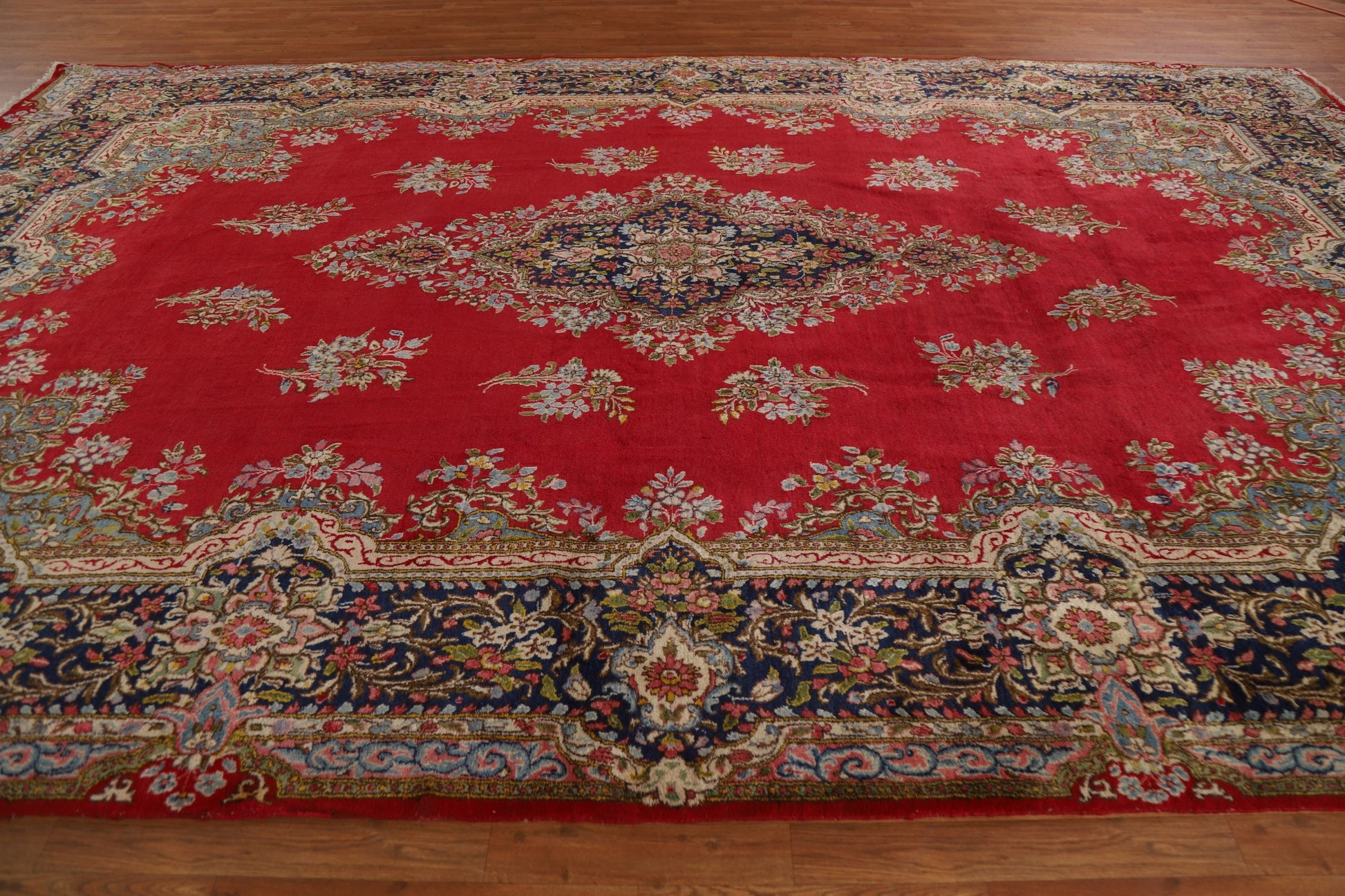 A Beautiful Genuine Persia ( Persia ) Kerman rug is Hand Knotted by skillful weavers in Persia ( Persia ) with 100% Wool Material. This rug is in Very Good condition. dimensions are 14' 11'' X 9' 7'' in foot and 455 X 292 in centimeter. the primary color is Red.
