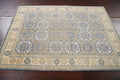 A Beautiful Genuine Pakistan Khotan rug is Hand Knotted by skillful weavers in Pakistan with 100% Wool Material. This rug is in New, First Quality condition. dimensions are 6' 11'' X 4' 5'' in foot and 211 X 135 in centimeter. the primary color is Navy Blue & Blues.