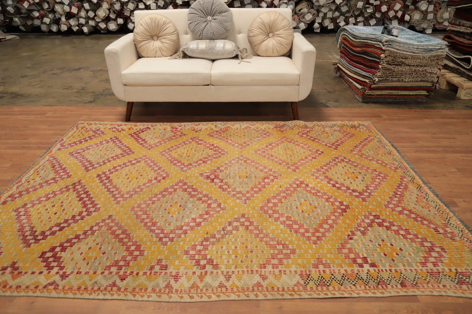 Vegetable Dye Kilim Geometric Area Rug 6x8