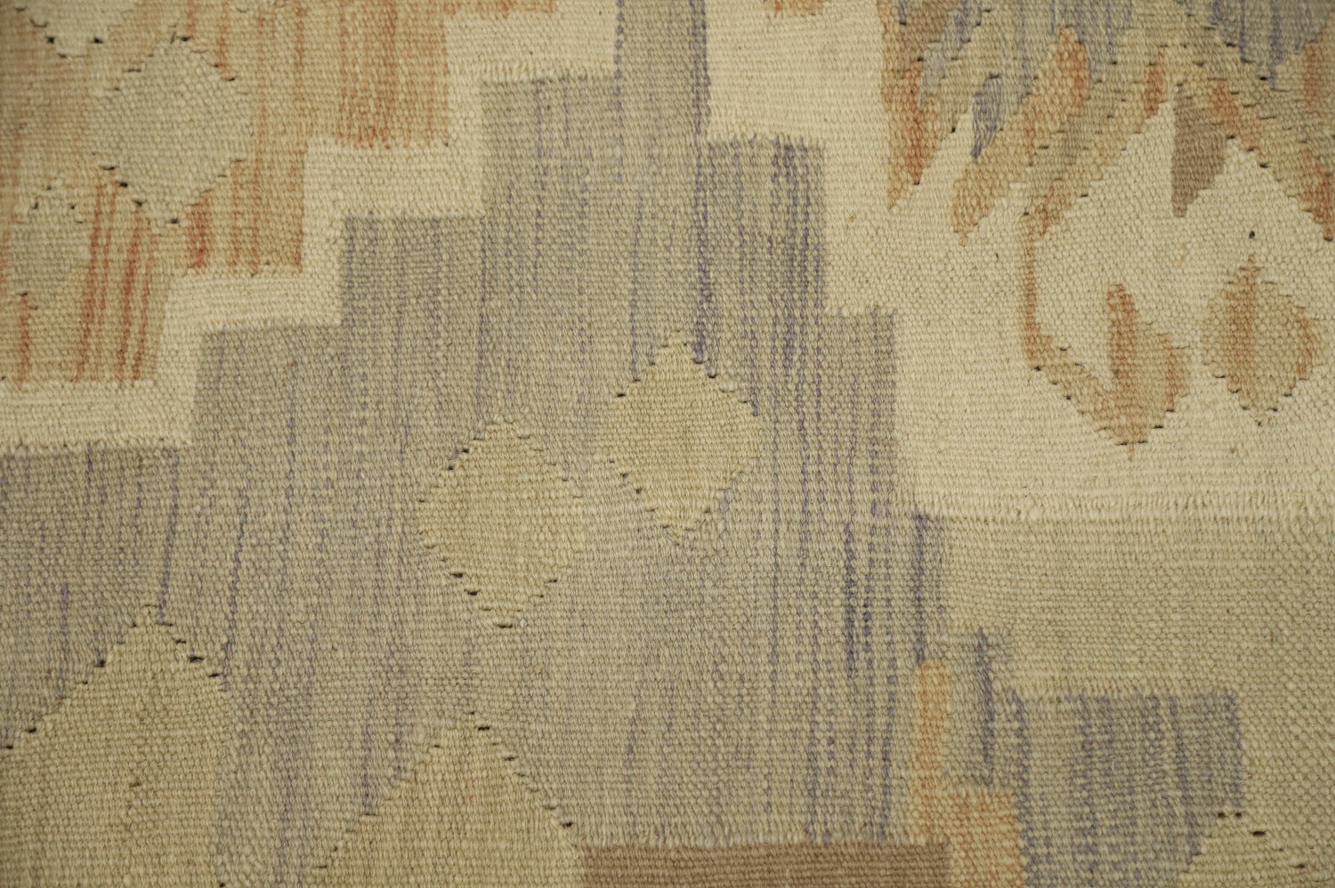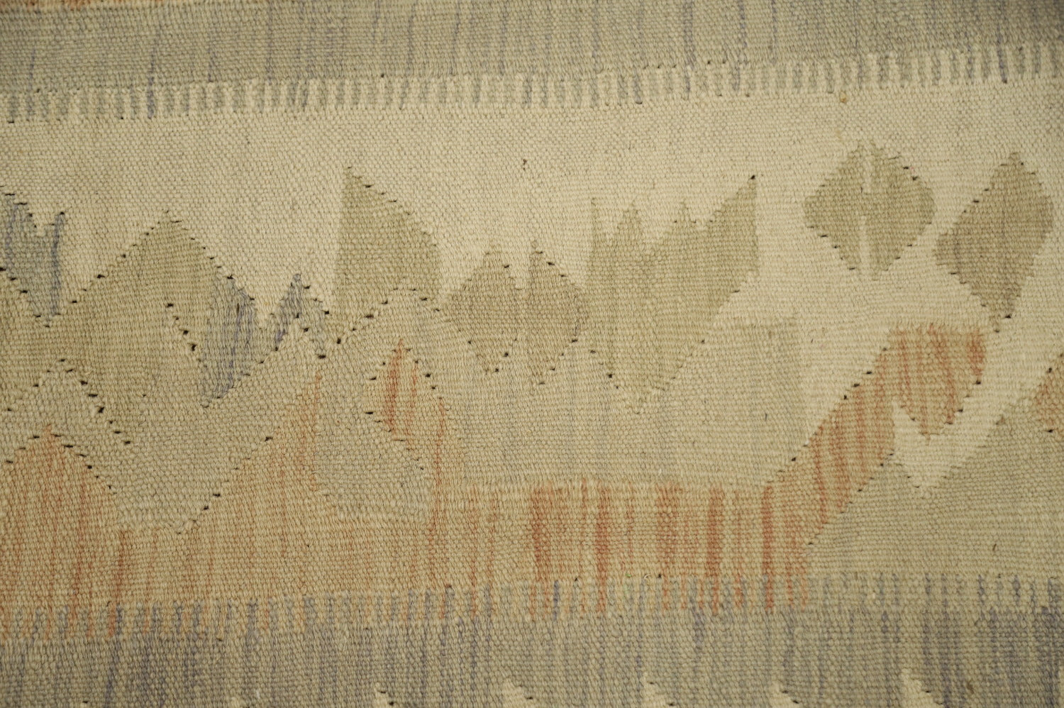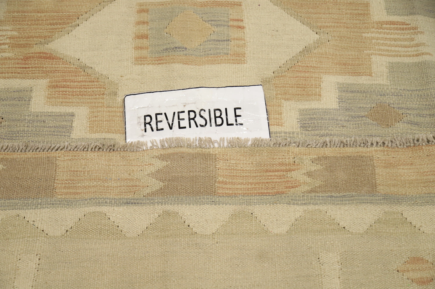 A Beautiful Genuine Pakistan Kilim rug is Hand Woven by skillful weavers in Pakistan with 100% Wool Material. This rug is in New, First Quality condition. dimensions are 9' 10'' X 6' 4'' in foot and 300 X 193 in centimeter. the primary color is Beige & Ivories.