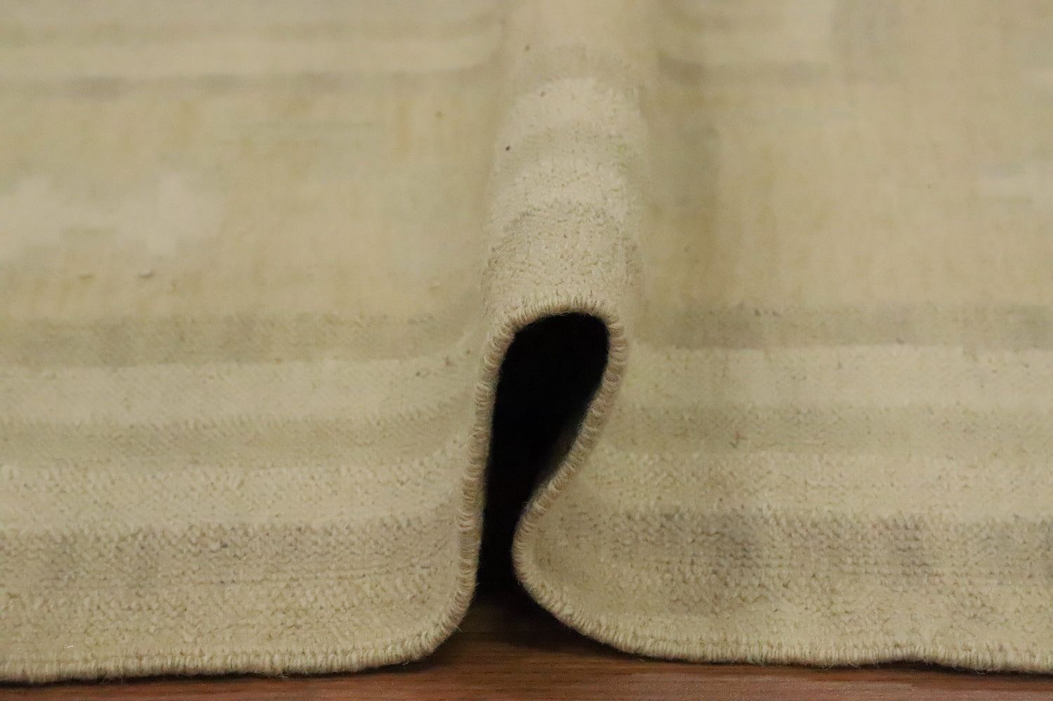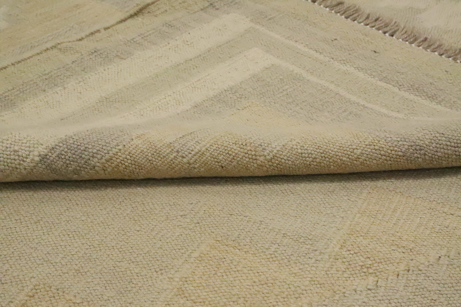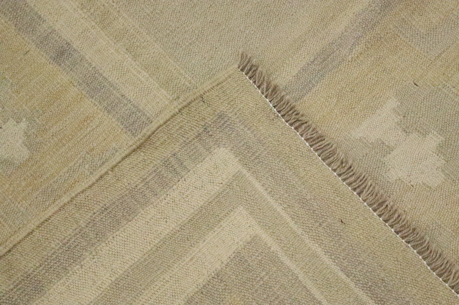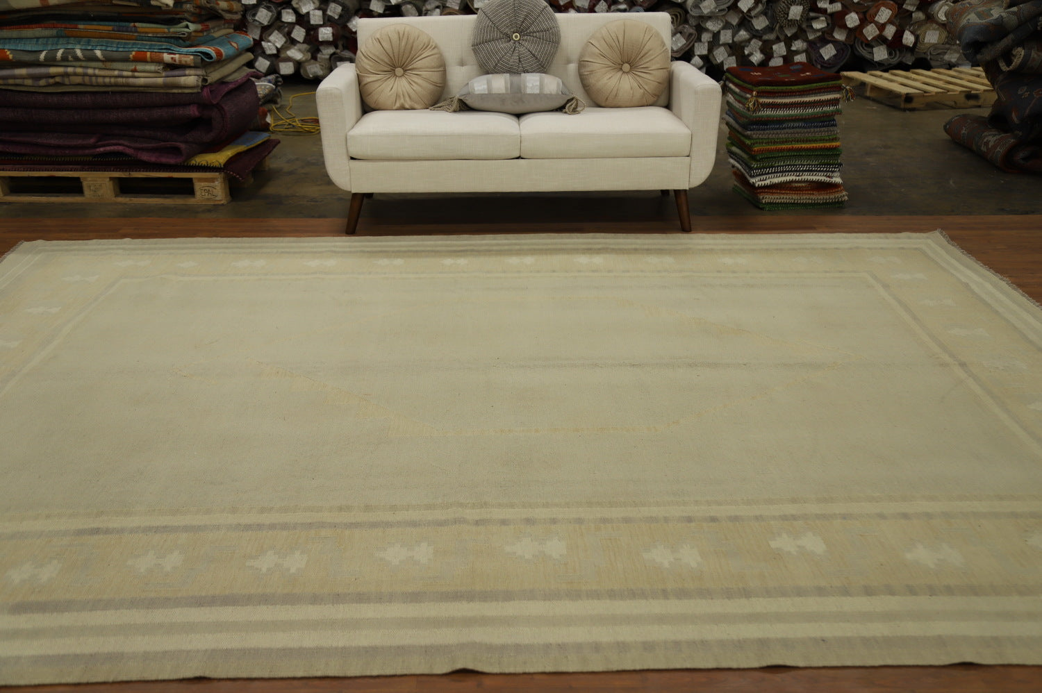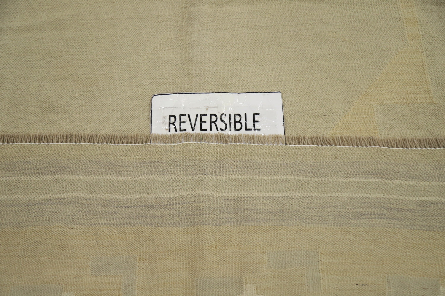 A Beautiful Genuine Pakistan Kilim rug is Hand Woven by skillful weavers in Pakistan with 100% Wool Material. This rug is in New, First Quality condition. dimensions are 12' 2'' X 9' 1'' in foot and 371 X 277 in centimeter. the primary color is Beige & Ivories.