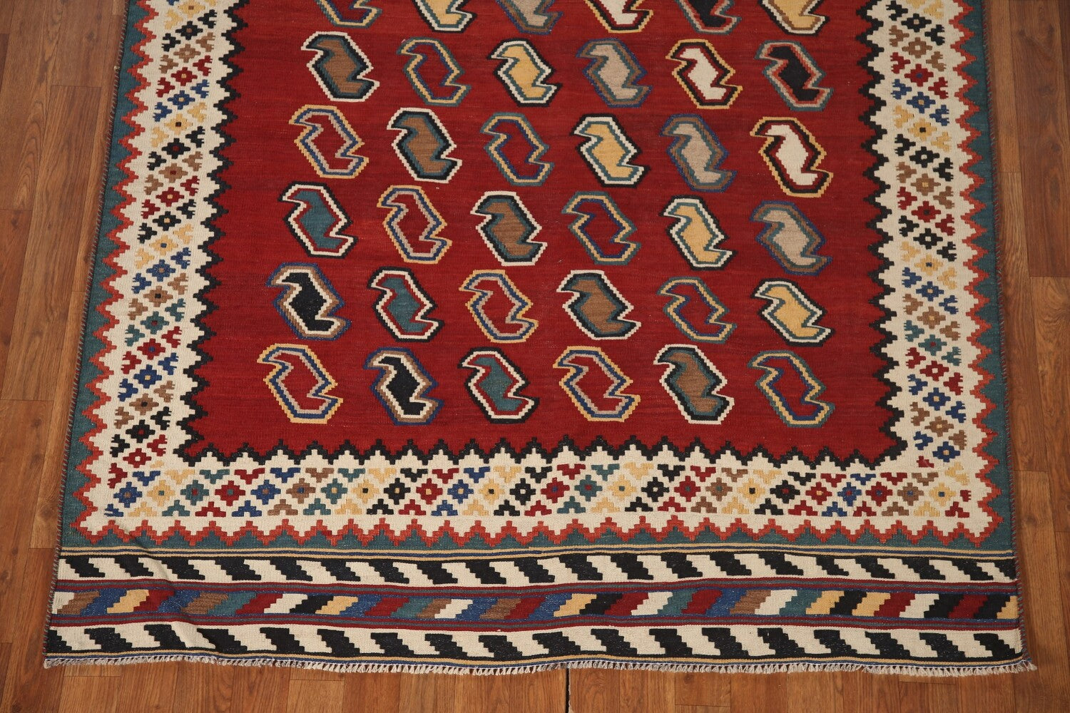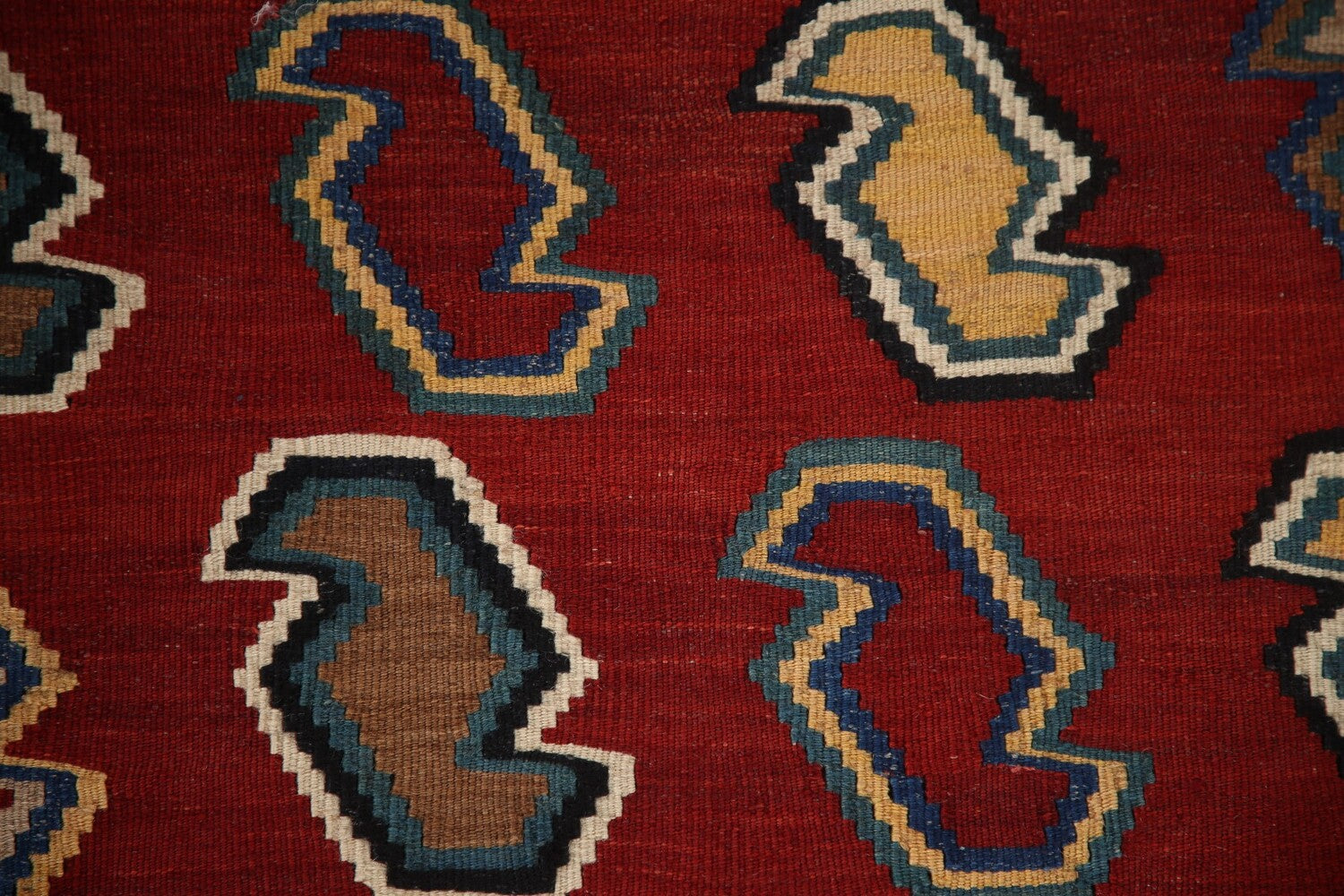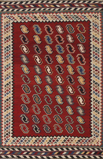 A Beautiful Genuine Persia ( Persia ) Kilim rug is Hand Woven by skillful weavers in Persia ( Persia ) with 100% Wool Material. This rug is in Excellent condition. dimensions are 8' 2'' X 5' 0'' in foot and 249 X 152 in centimeter. the primary color is Red.