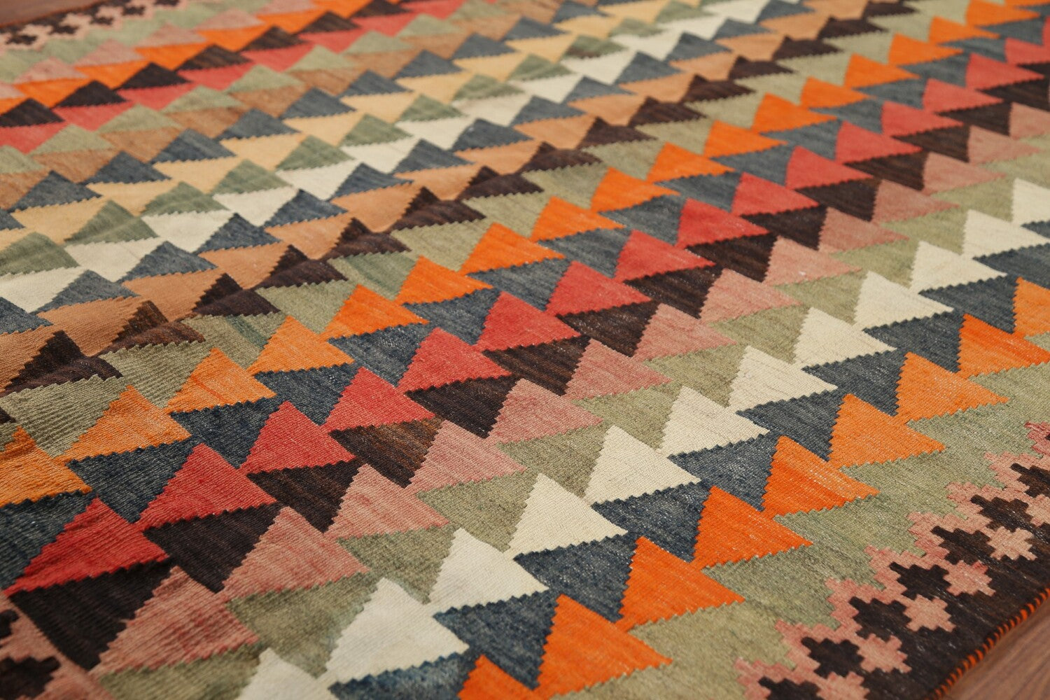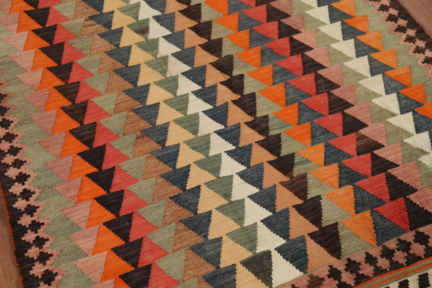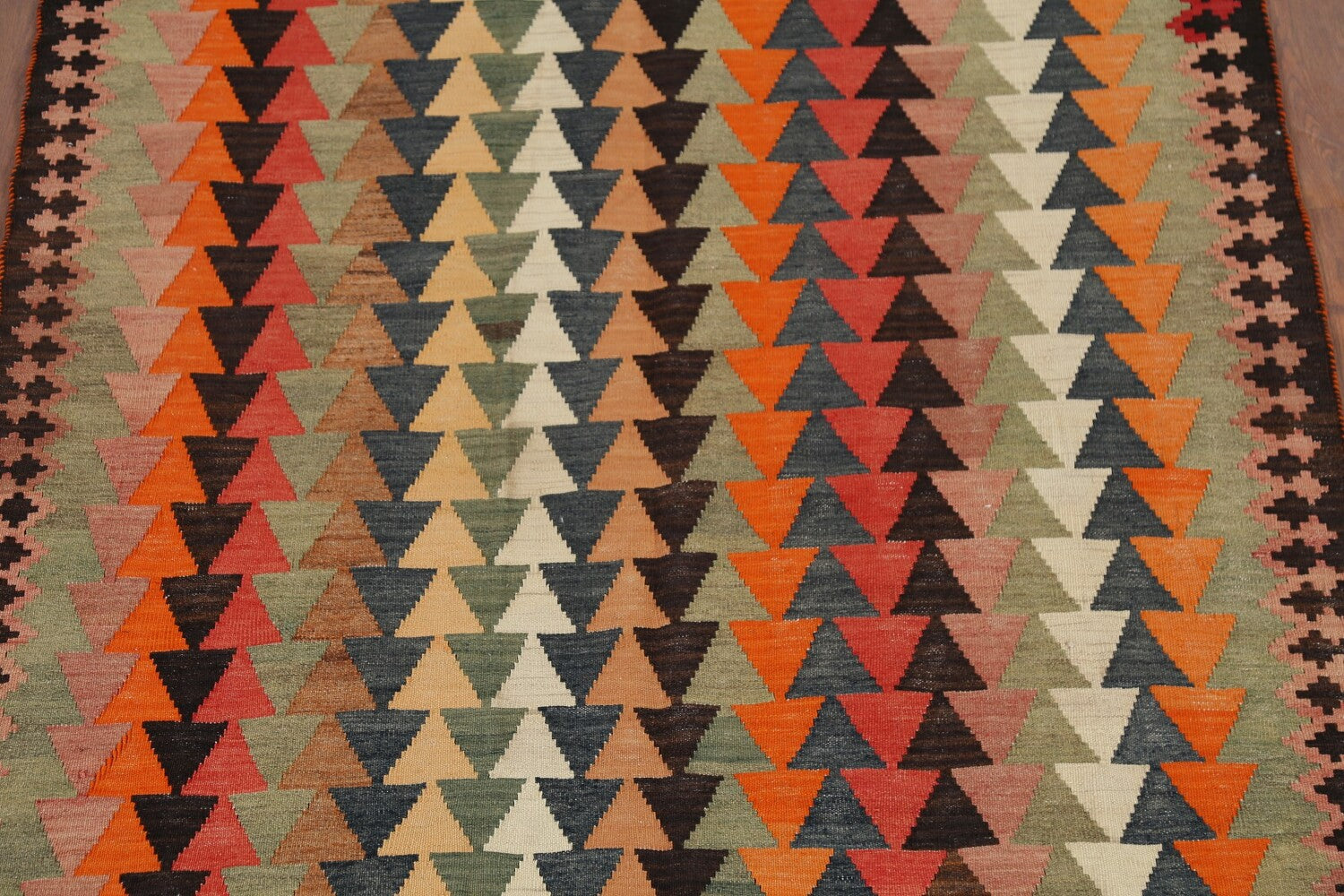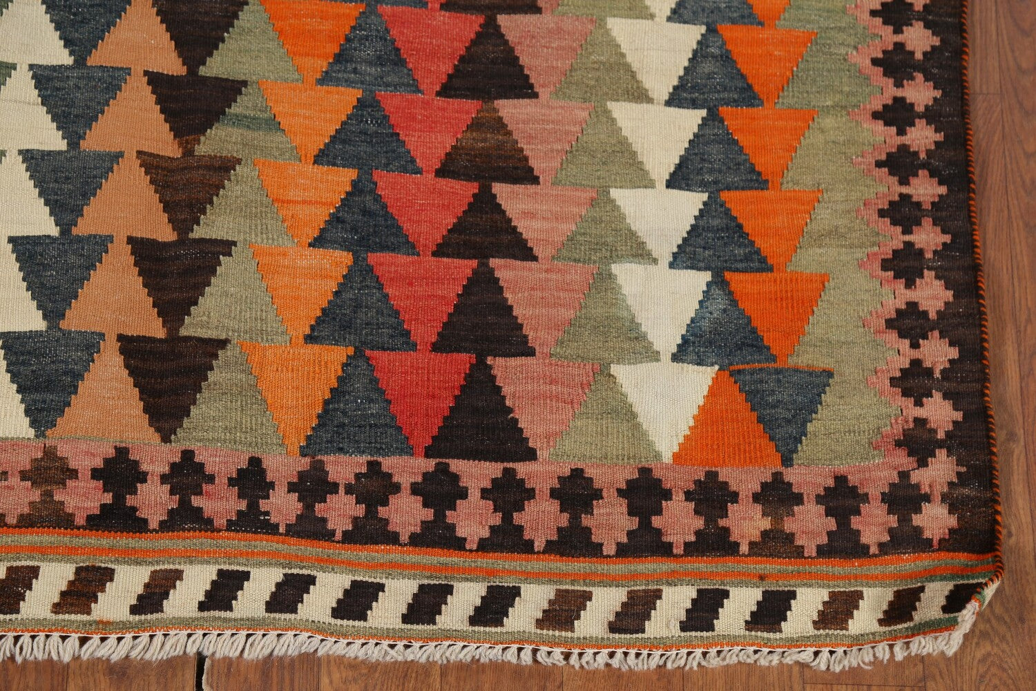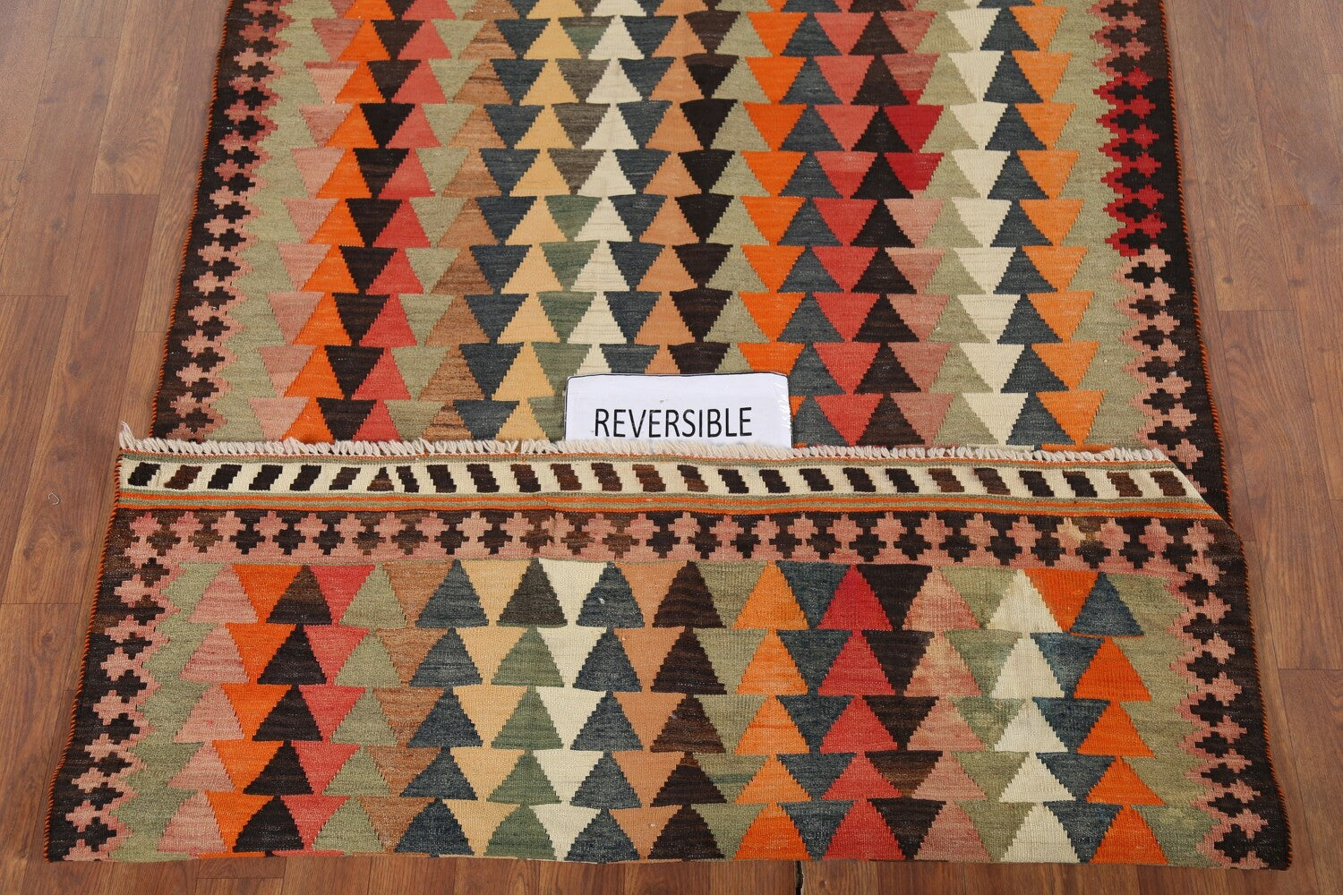 A Beautiful Genuine Persia ( Persia ) Kilim (Qashqai) rug is Hand Woven by skillful weavers in Persia ( Persia ) with 100% Wool Material. This rug is in Very Good condition. dimensions are 6' 8'' X 3' 10'' in foot and 203 X 117 in centimeter. the primary color is Multi-Colored.