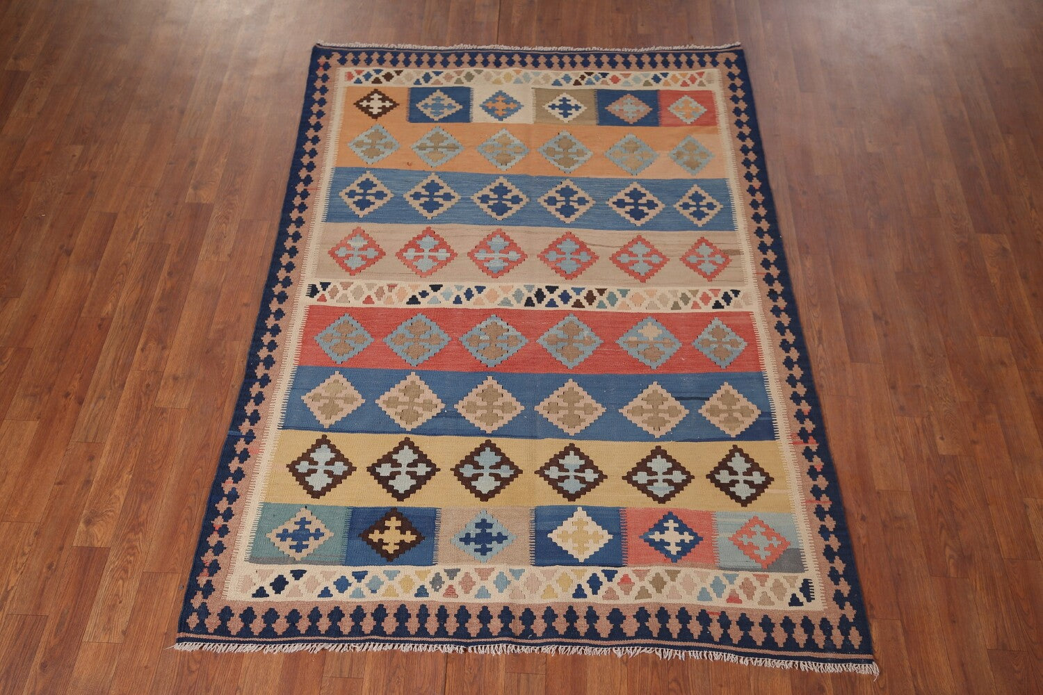 Vegetable Dye Kilim Qashqai Flat Pile Persian Rug 5x6
