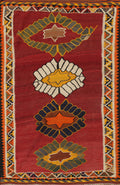 A Beautiful Genuine Persia ( Persia ) Kilim (Qashqai) rug is Hand Woven by skillful weavers in Persia ( Persia ) with 100% Wool Material. This rug is in Very Good (Abrash-Uneven) condition. dimensions are 7' 5'' X 4' 11'' in foot and 226 X 150 in centimeter. the primary color is Red.