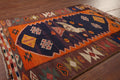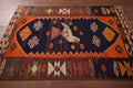 A Beautiful Genuine Persia ( Persia ) Kilim (Qashqai) rug is Hand Woven by skillful weavers in Persia ( Persia ) with 100% Wool Material. This rug is in Very Good (Abrash) condition. dimensions are 6' 3'' X 4' 6'' in foot and 191 X 137 in centimeter. the primary color is Navy Blue & Blues.