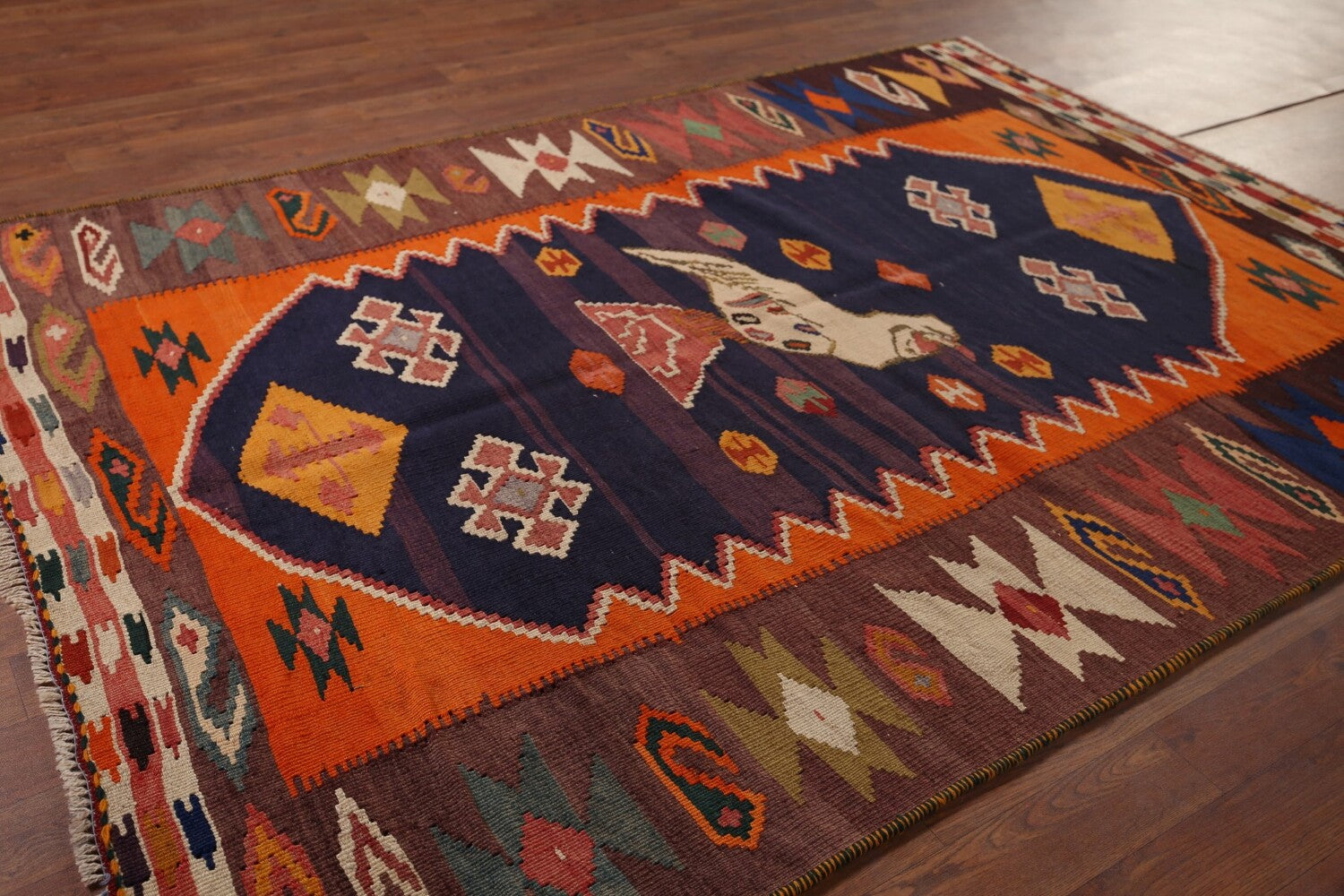 Vegetable Dye Kilim Qashqai Nomadic Persian Rug 5x6